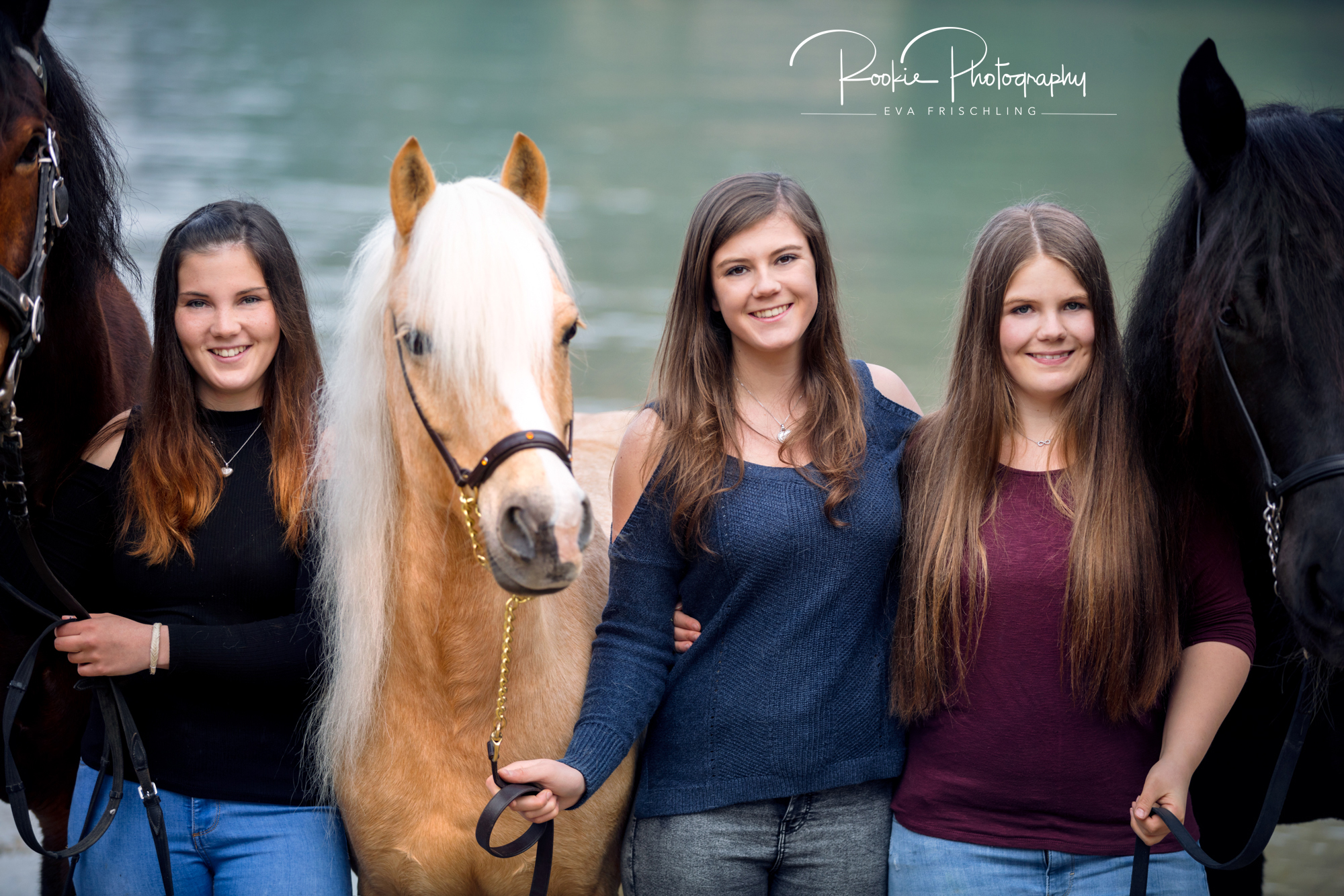 Am Anfang ging ich mit den drei Schwestern Lisa, Melanie und Tamara zum Wolfgangsee und fotografierte sie dort mit den Norikern Lorentino und Simone und mit der Stute Akira. Sind sie nicht alle bezaubernd?