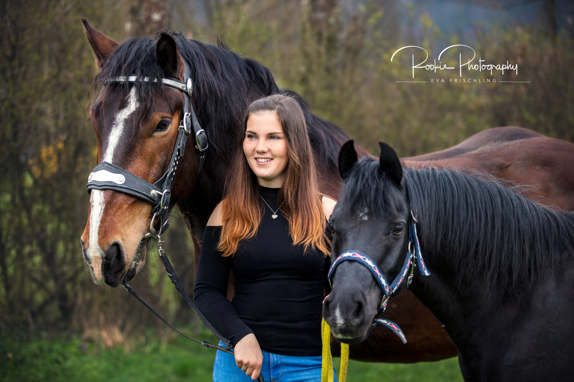 Zum Schluss durfte ich noch Tamara mit ihrem Freund Patrick und der Stute Eccomi fotografieren. Und zu guter letzt machte ich noch ein Bild von Lisa mit ihren beiden Wallachen Lorentino und Herkules.