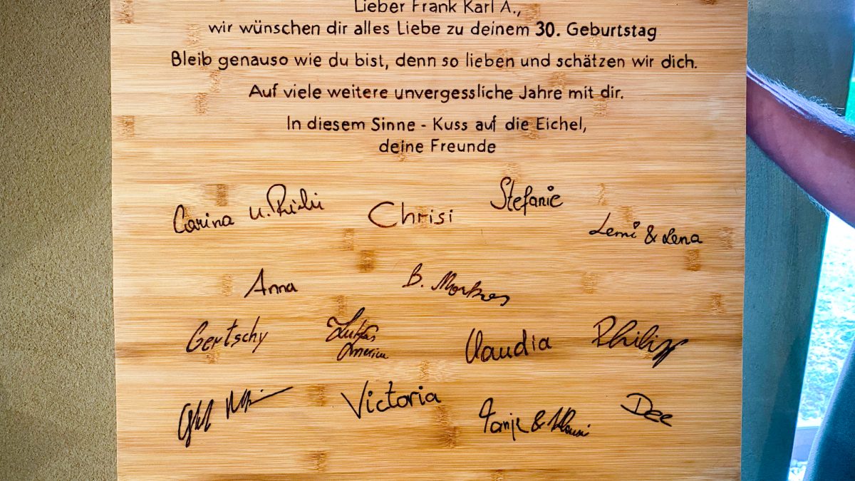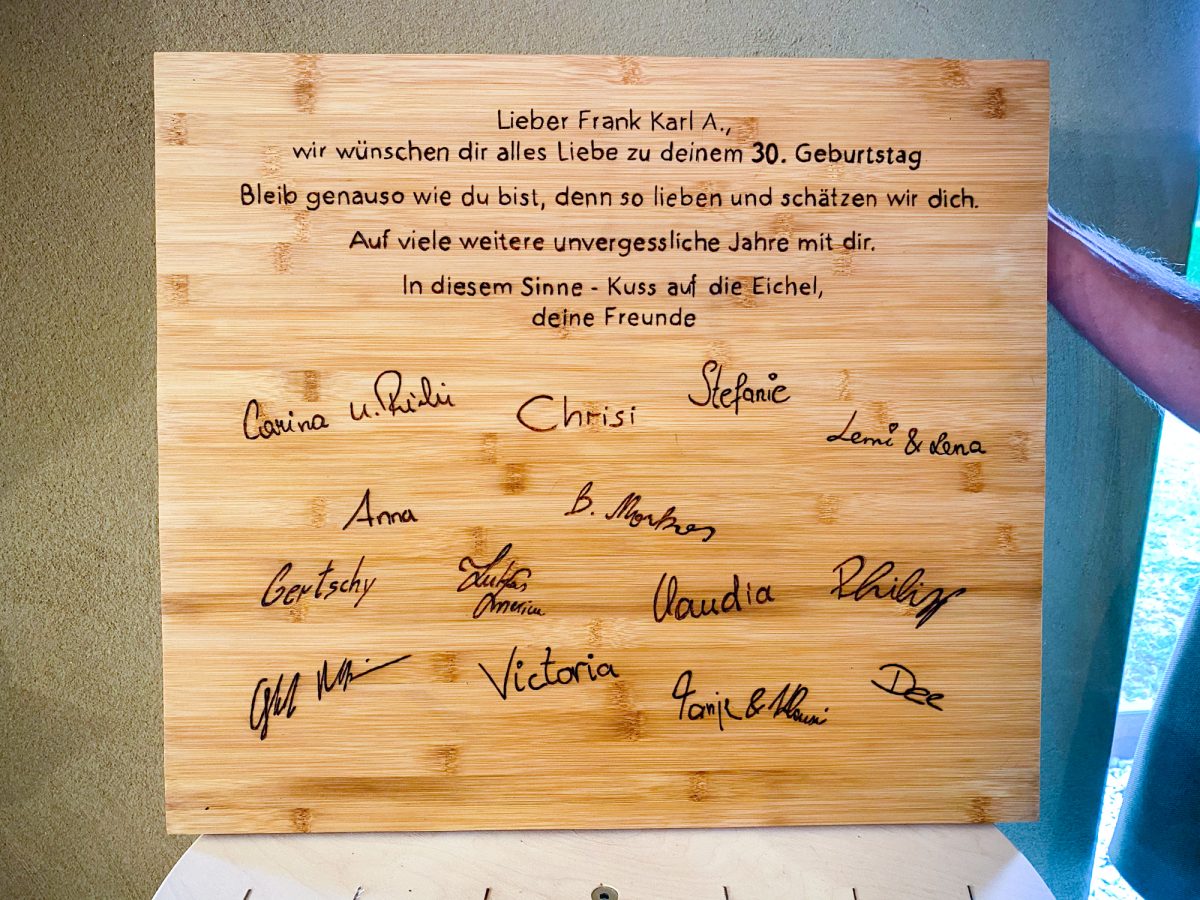 Den Auftrag für ein kleines und feines Geburtstagsgeschenk erhielten wir von einem guten Freund. Sie schenkten dem Geburtstagskind ein hochwertiges Schneidebrett, und auf der Rückseite durfte […]