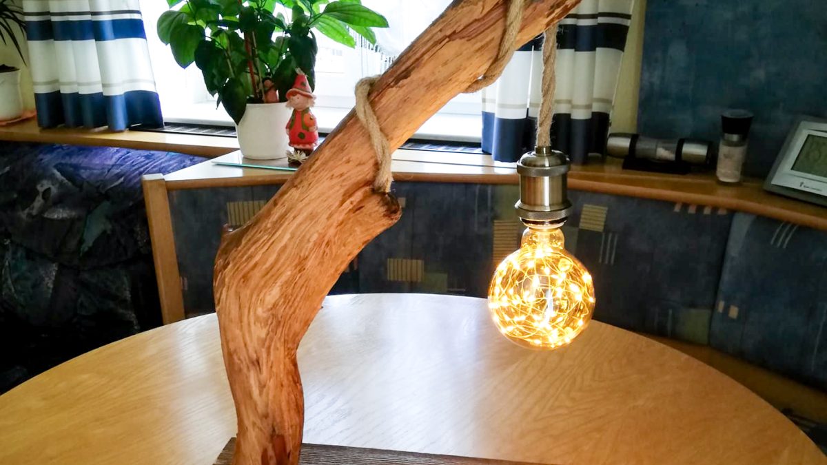 Eine weitere Spielerei und gleichzeitiges Geburtstagsgeschenk war diese wunderschöne Tischlampe, ebenfalls aus Schwemmholz, sehr stilvoll mit einer Seil-Fassung