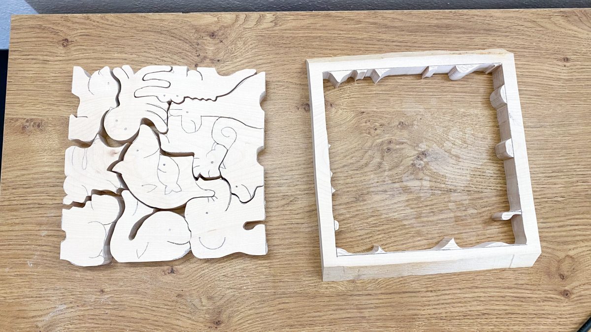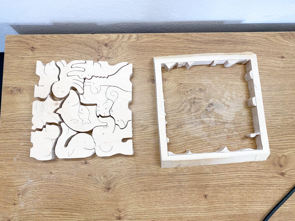Tier-Puzzle und Bären aus der Dekupiersäge