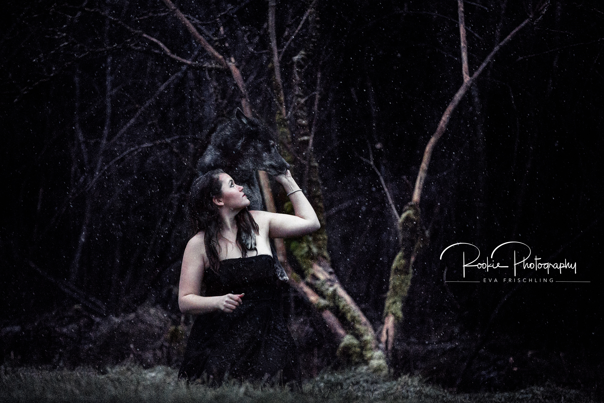 Wie ich euch demnächst in dem Blogbeitrag von den beiden Models genauer erzählen werde, hatten wir absolut Glück mit dem Wetter. Wobei „Glück“ immer relativ ist. Eigentlich war es am Anfang ganz okay – es war etwas bewölkt, und dunkel, aber ganz gut zum Fotografieren. Bei den Bildern mit Wolfi kam auf einmal ein absolut eiskalter und grauenhafter Schneeschauer auf uns zu. Es war nass, kalt und ungemütlich. Aber genau dieses Wetter war perfekt für die Bilder und hat diesen eine wunderschöne Atmosphäre verliehen.