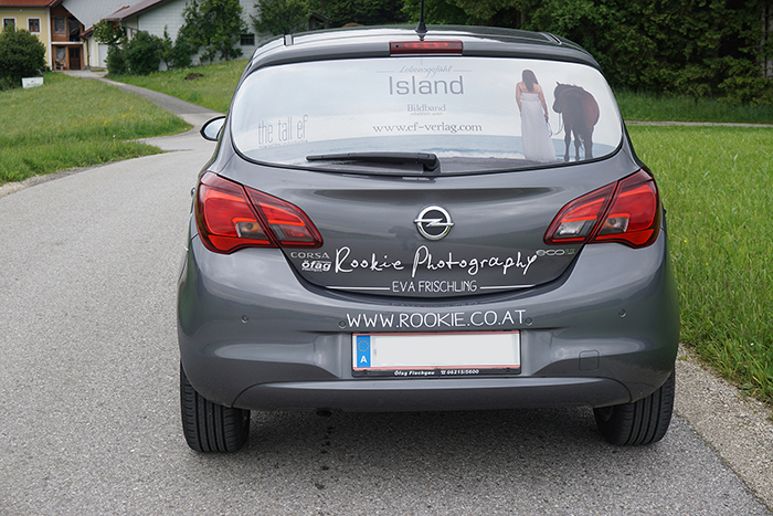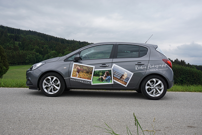 Seit gestern glänzt mein Corsa im neuen Aussehen: denn wir haben ihn gestern bedrucken lassen. Sieht es nicht toll aus? ..jetzt bin ich endlich auch auf der Straße mit super Werbung vertreten. 😀