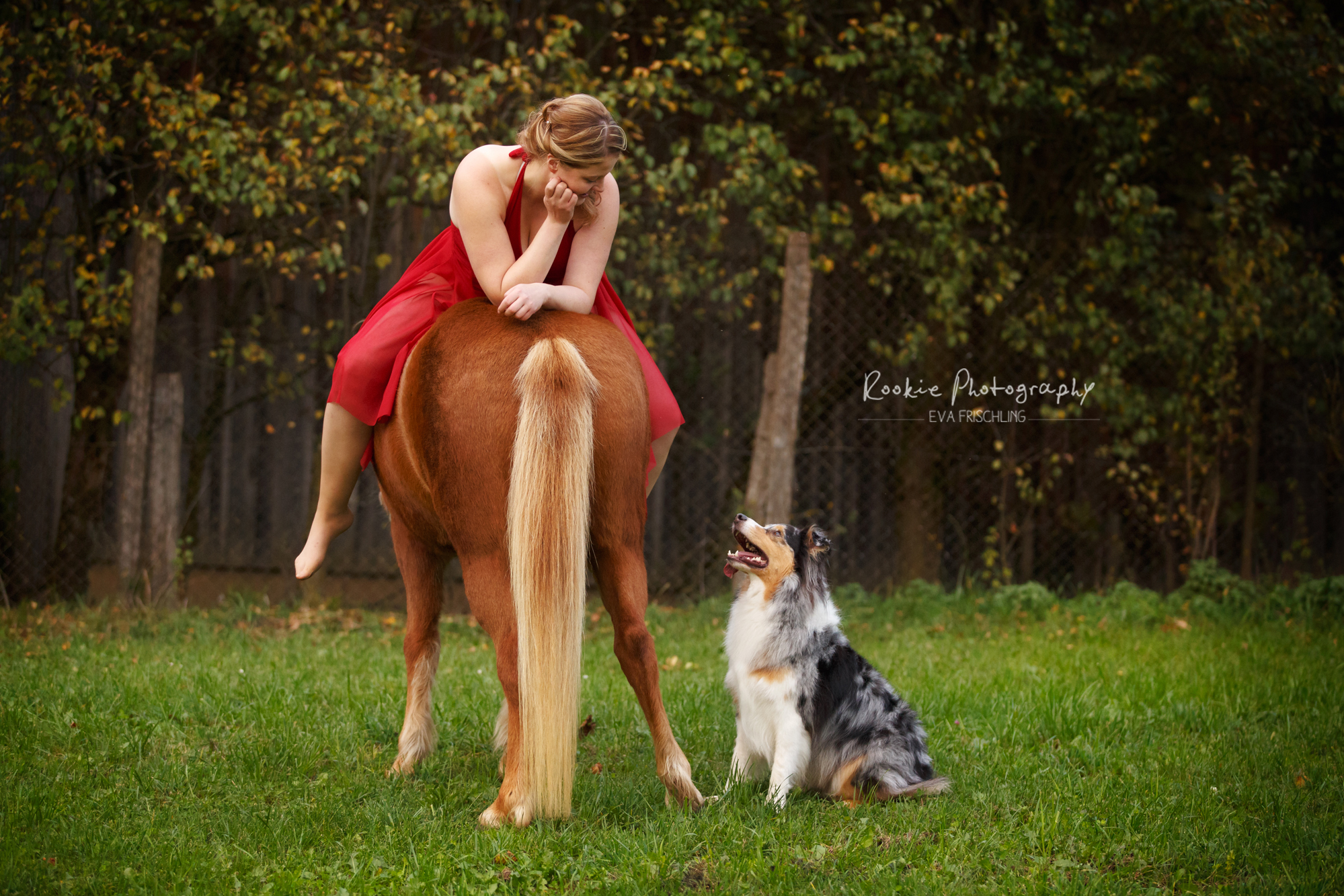 Drei Pferde hatte ich vor einigen Wochen vor meiner Kamera, eine weiße Araber-Stute eine fuchsfarbene Isi-Stute und einen braunen Mix-Wallach – sowie die drei dazugehörigen Besitzerinnen und einen Hund.