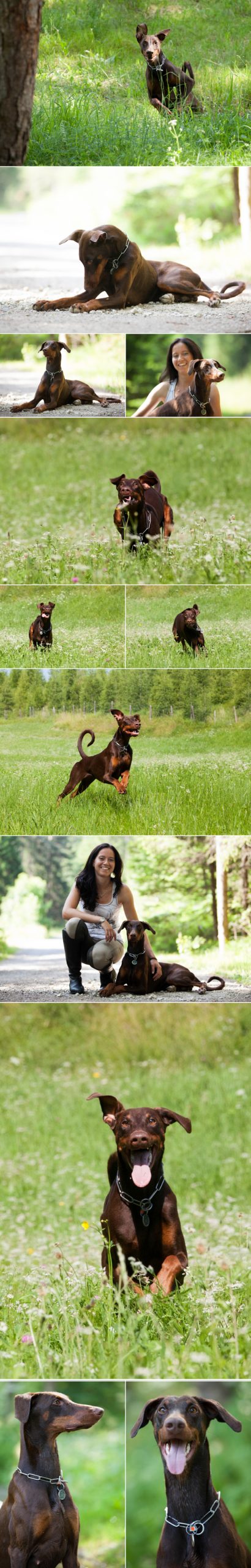 Die Dobermann Hündin Elli. Sie stand schon letztes Jahr mit ein paar Monaten vor der Kamera. Bei meinem Besuch in Tirol wurde sie wieder abgelichtet. Aber wirklich viel erwachsener wurde sie nicht. Immer noch so überdreht wie letztes Mal. 😉