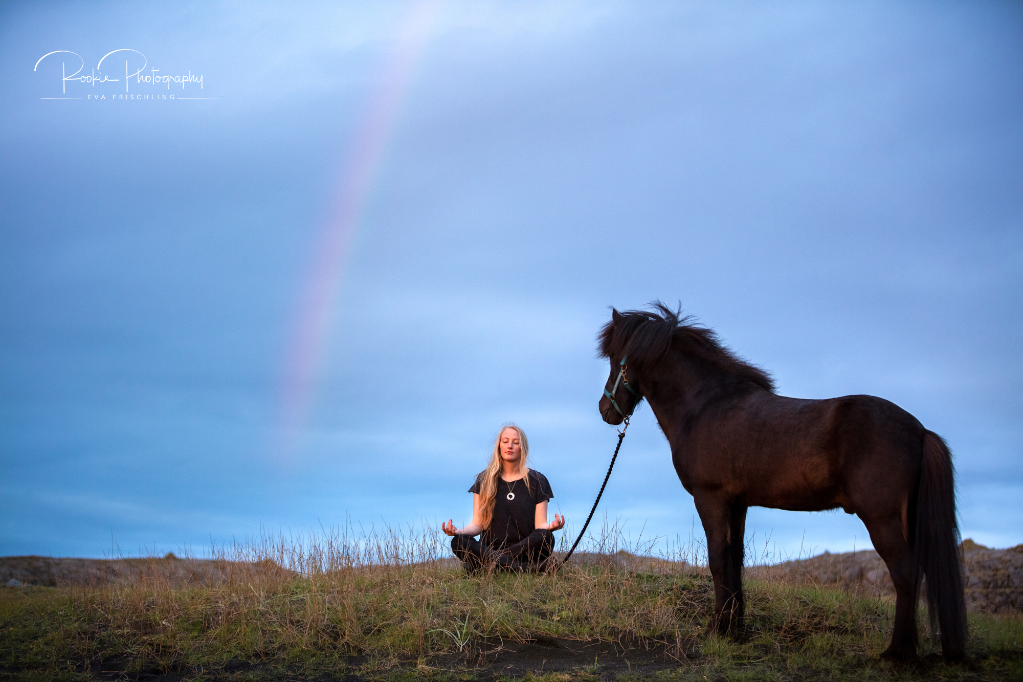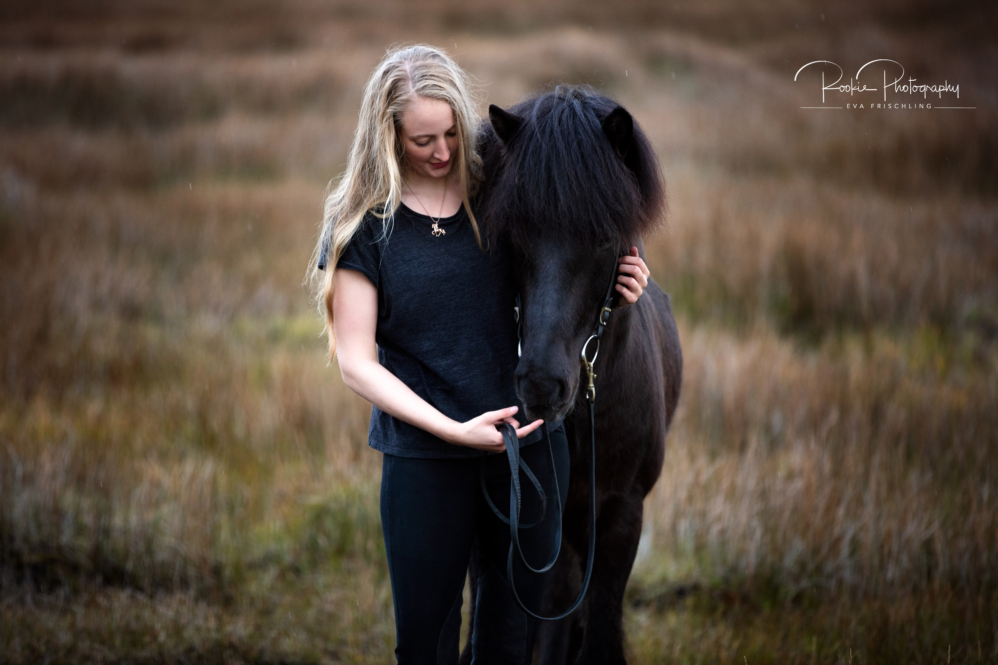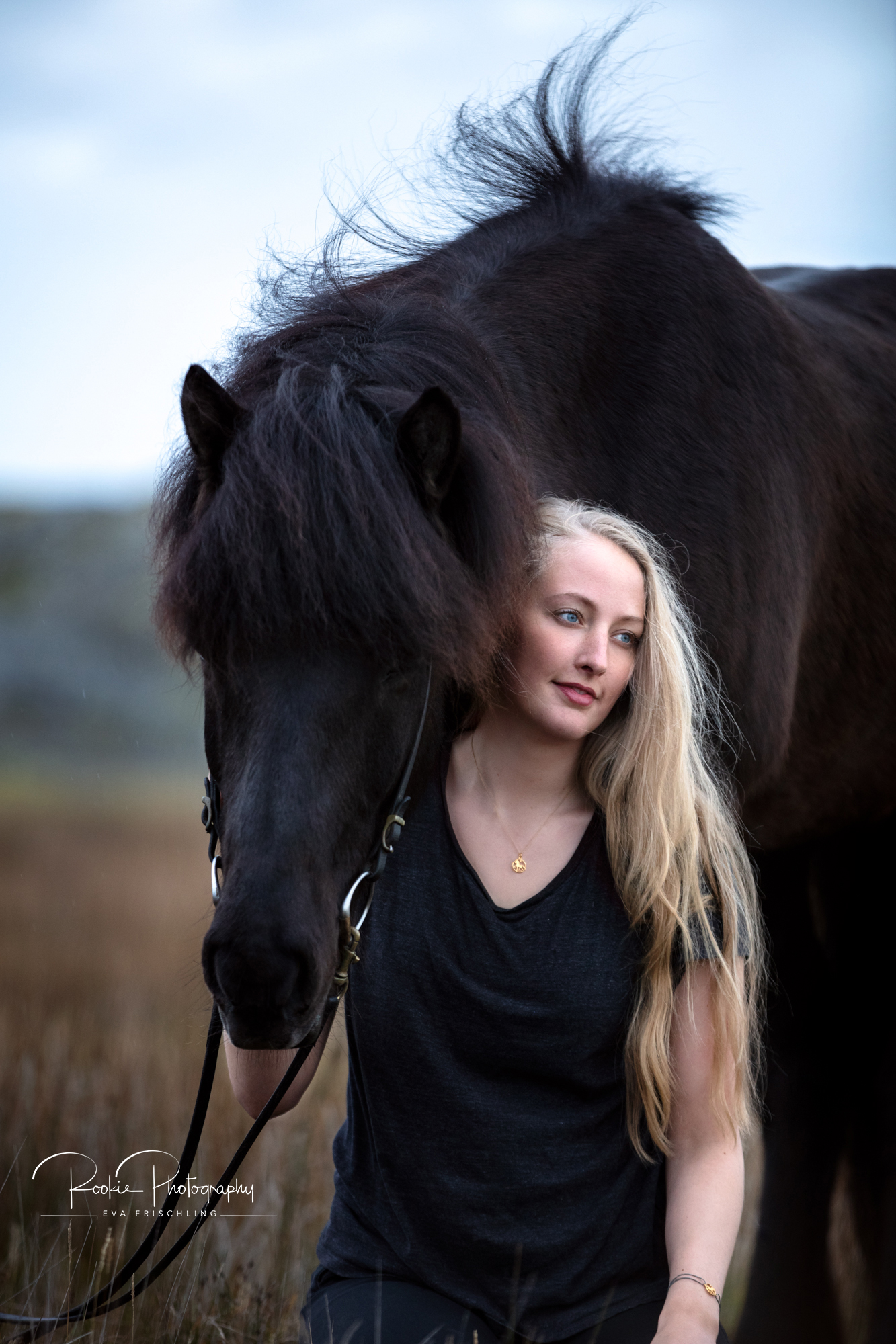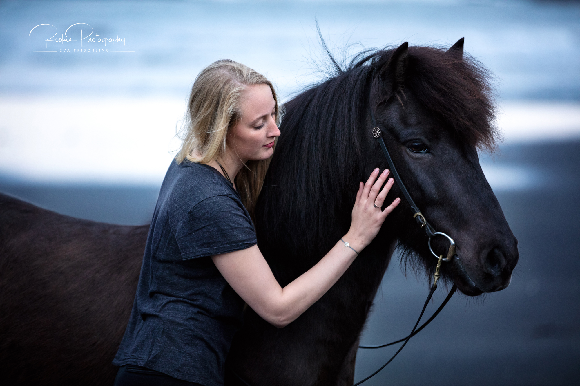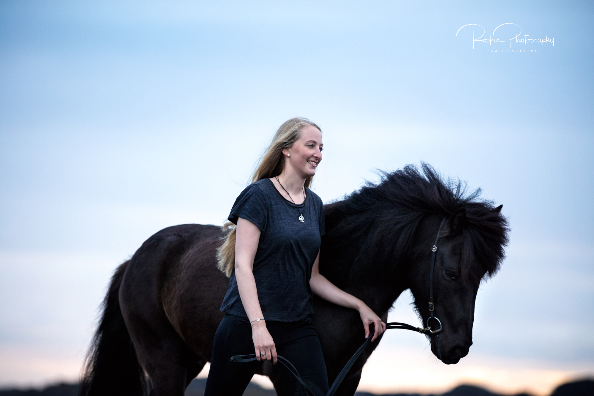 Die Shootings wurden in zwei Teile aufgeteilt: an einem Abend war ich mit Jasmina und dem wunderschönen Rappen Steinálfur frá Horni I bei einer einzigartigen Location mit schwarzem Strand, schwarzen Steinen, und dem Meer. Am darauf folgenden Tag gingen wir dann noch für die letzten Bilder in die nahe stehende Pferdeherde.