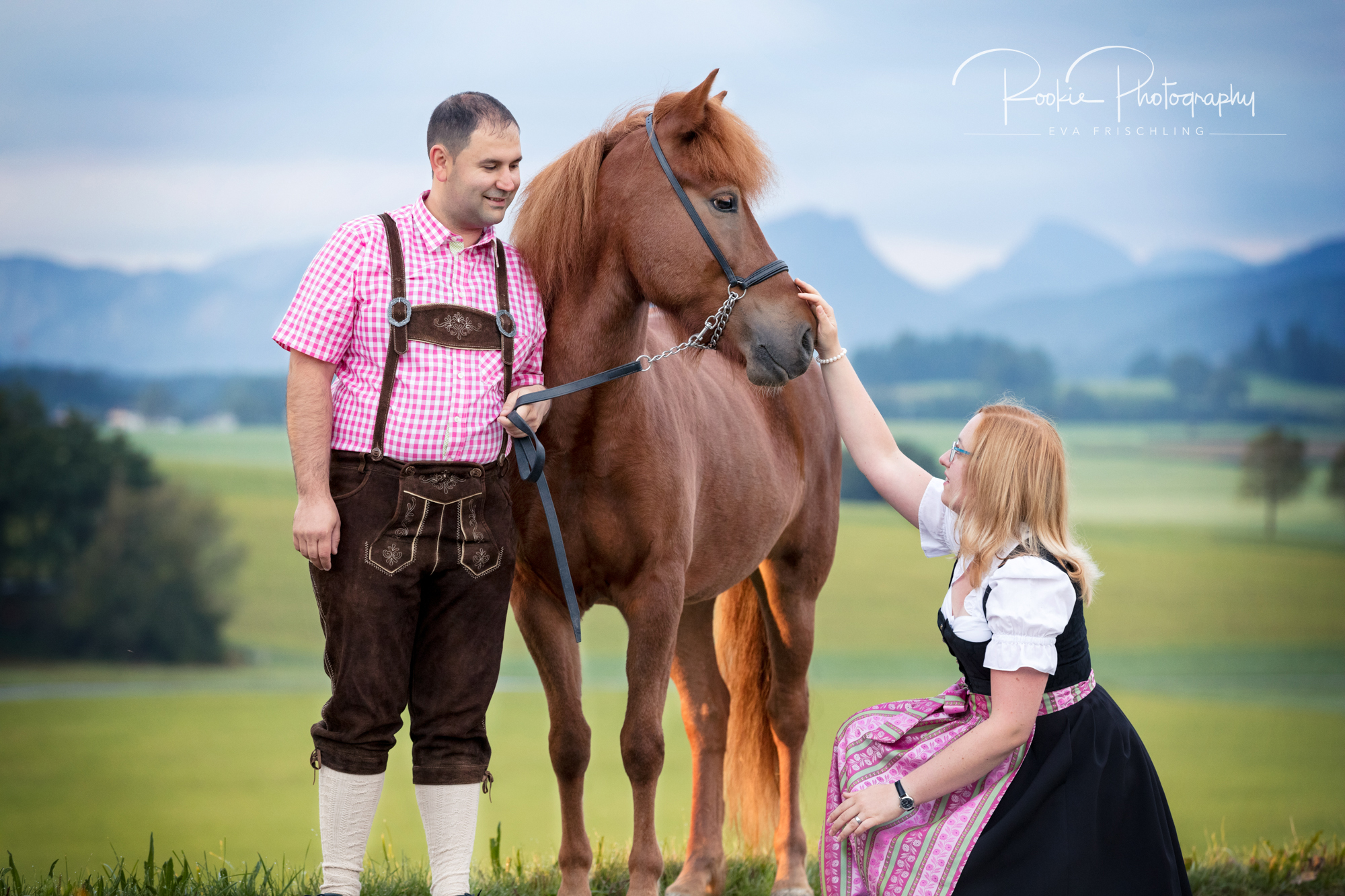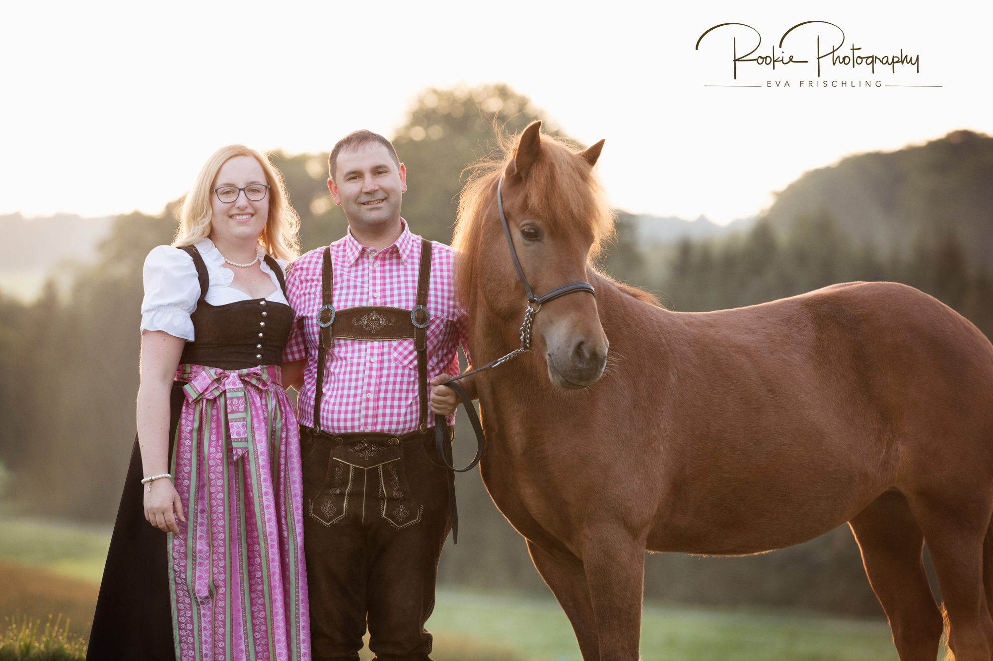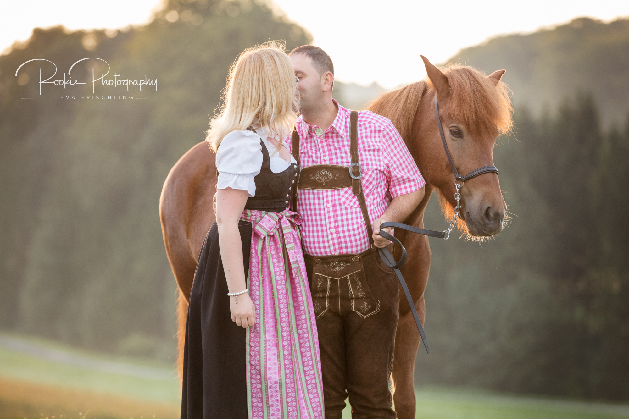 Wir gingen zu einer nahe gelegenen Stelle, wo der Sonnenaufgang besonders schön ist. Was soll man noch großartig sagen, ausser: besser kann’s fast nicht sein. Wunderschönes Licht, schöne Motive und viel Spaß. Und dann noch das Ganze in Tracht – das finde ich immer besonders schön.