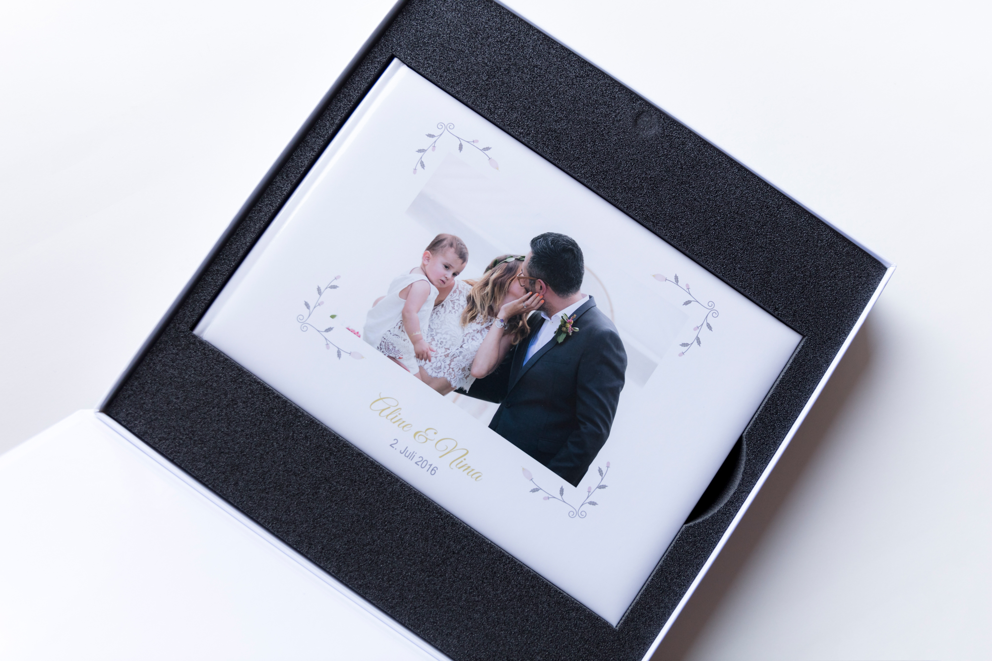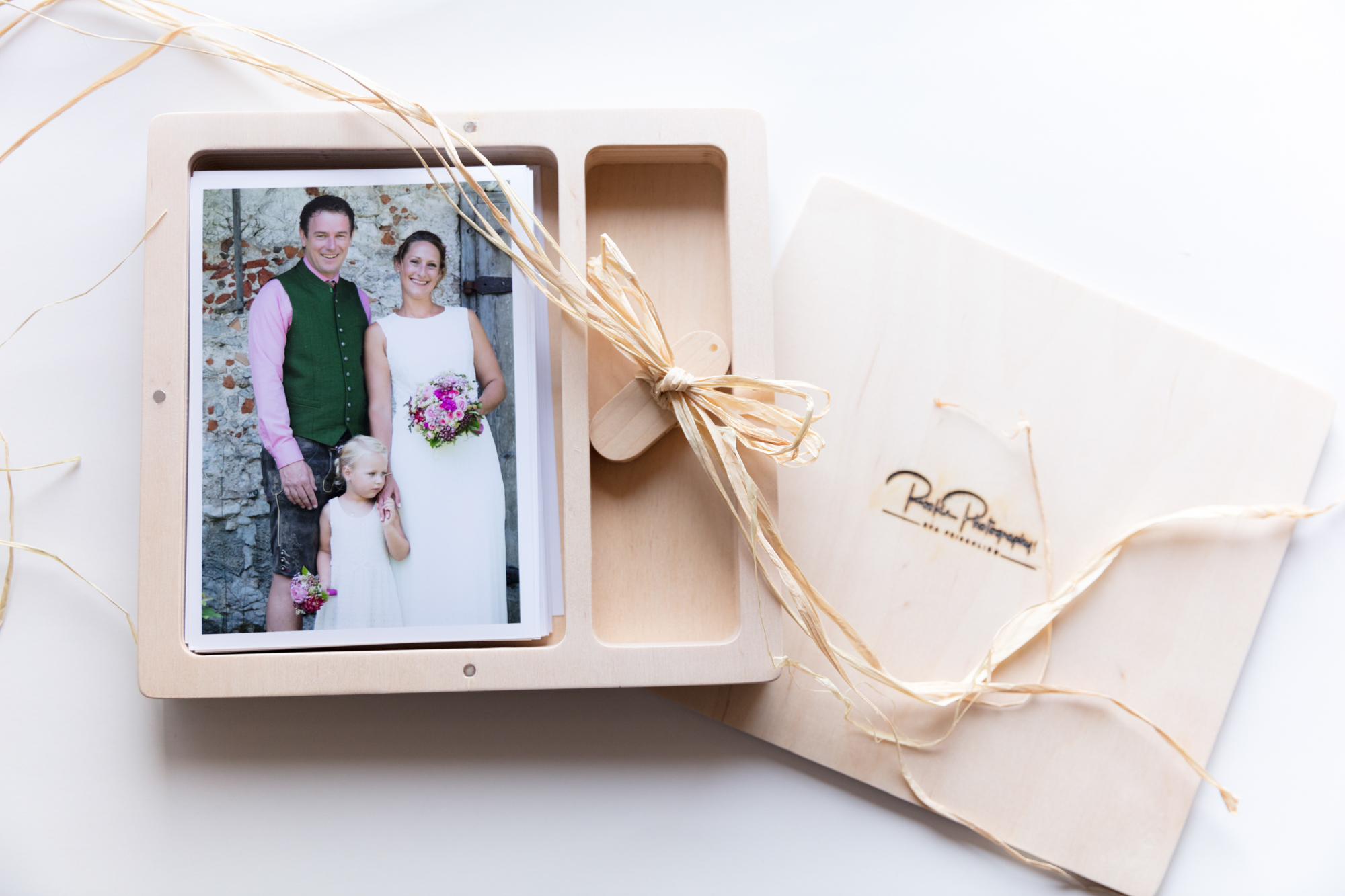 • Holzbox: verschiedene hochwertige Holzboxen stehen zur Auswahl. Diese werden mit ca. 50 ausgedruckten Bildern vom Fotolabor und allen Bildern auf Holz-USB Stick bestückt