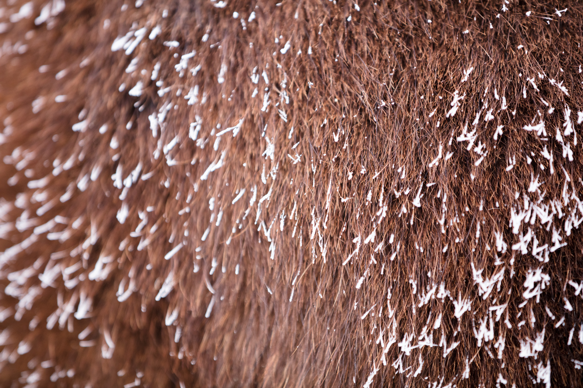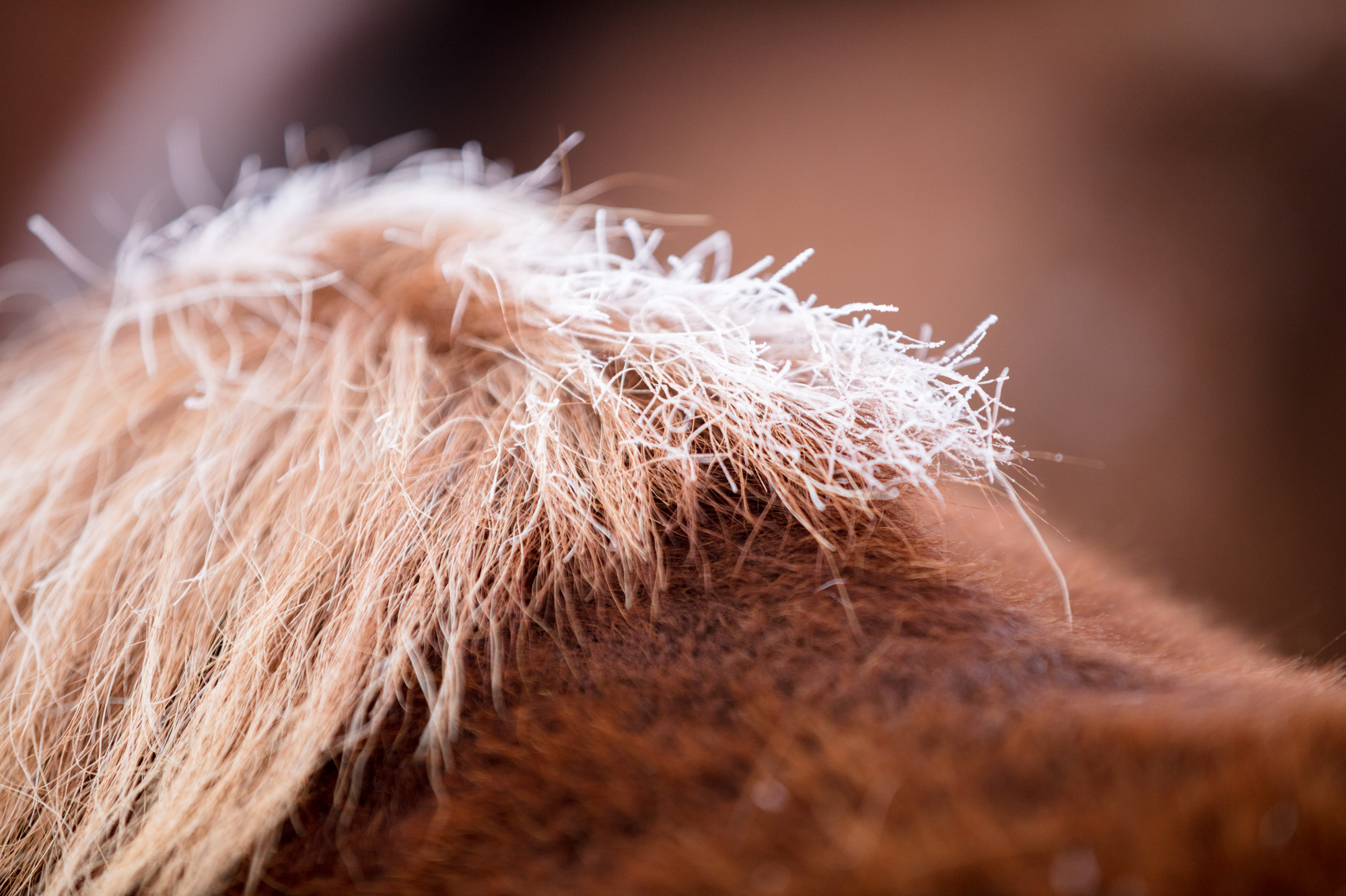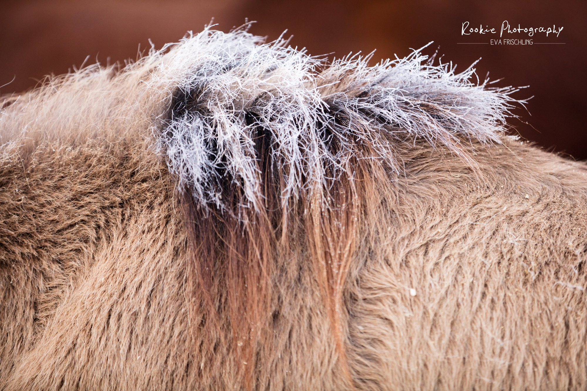Am Sonntag gingen wir gleich in der Früh zur Stutenherde, damit wir ein paar Details fotografieren konnten – wie zum Beispiel den Tau auf dem Fell.