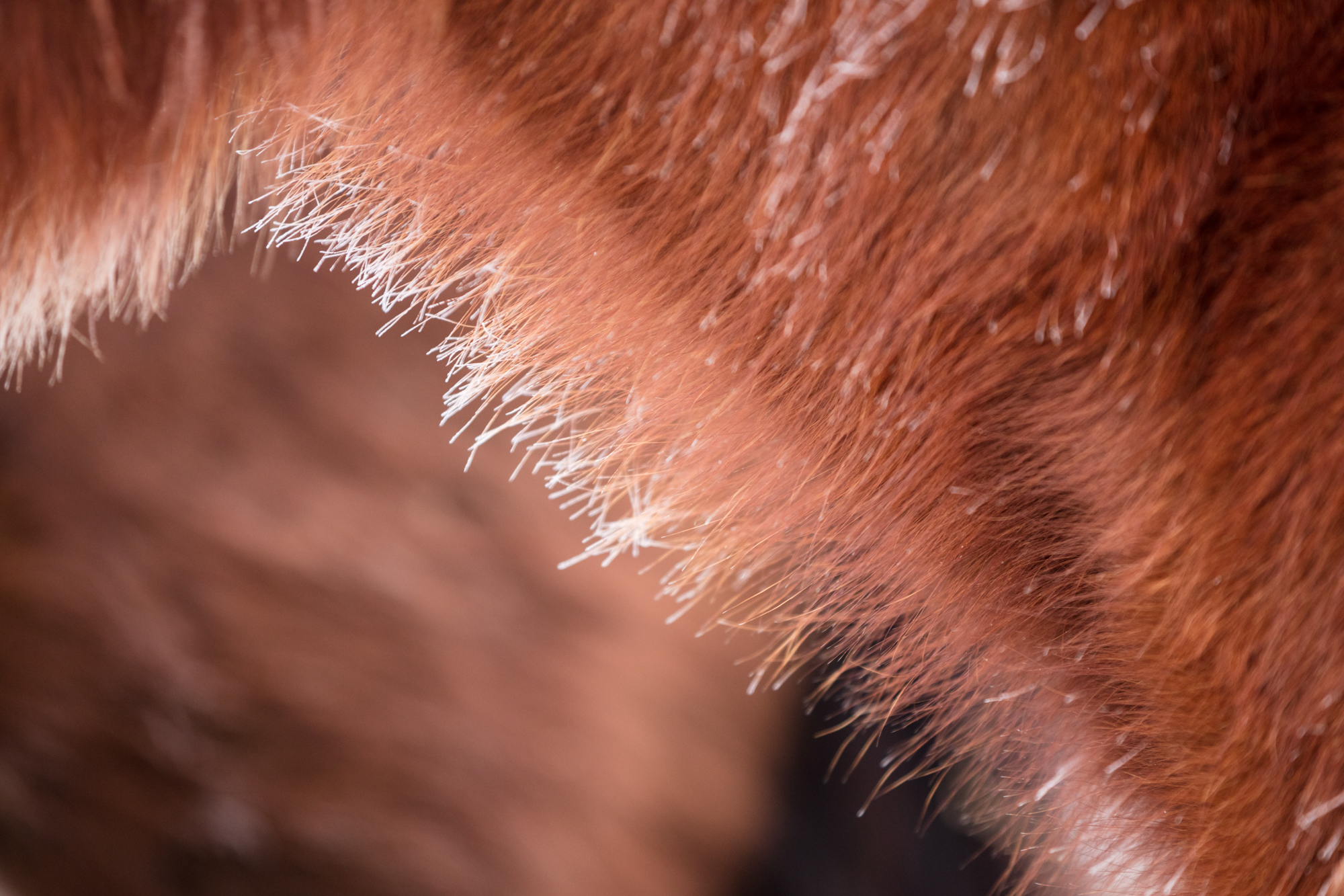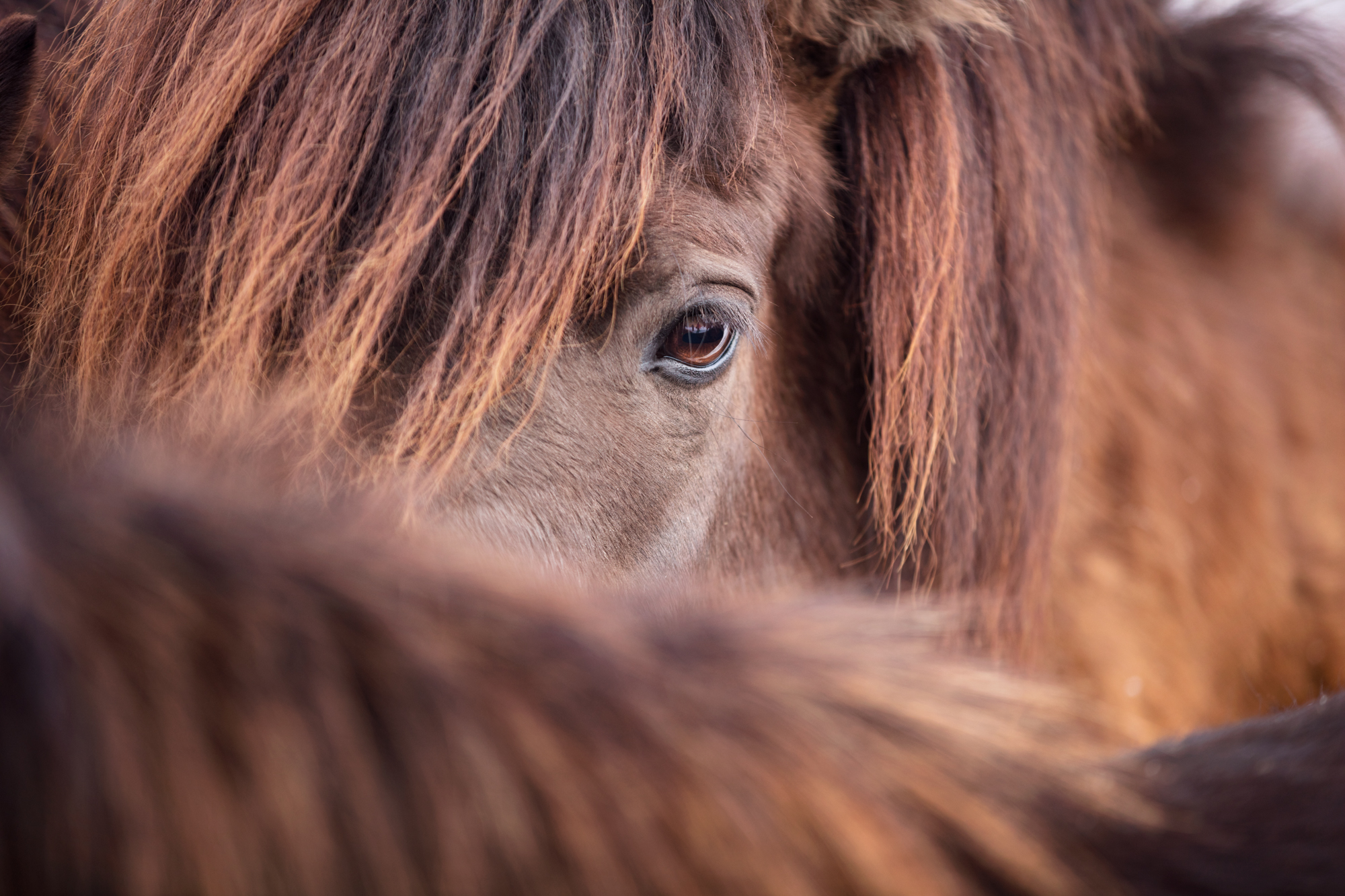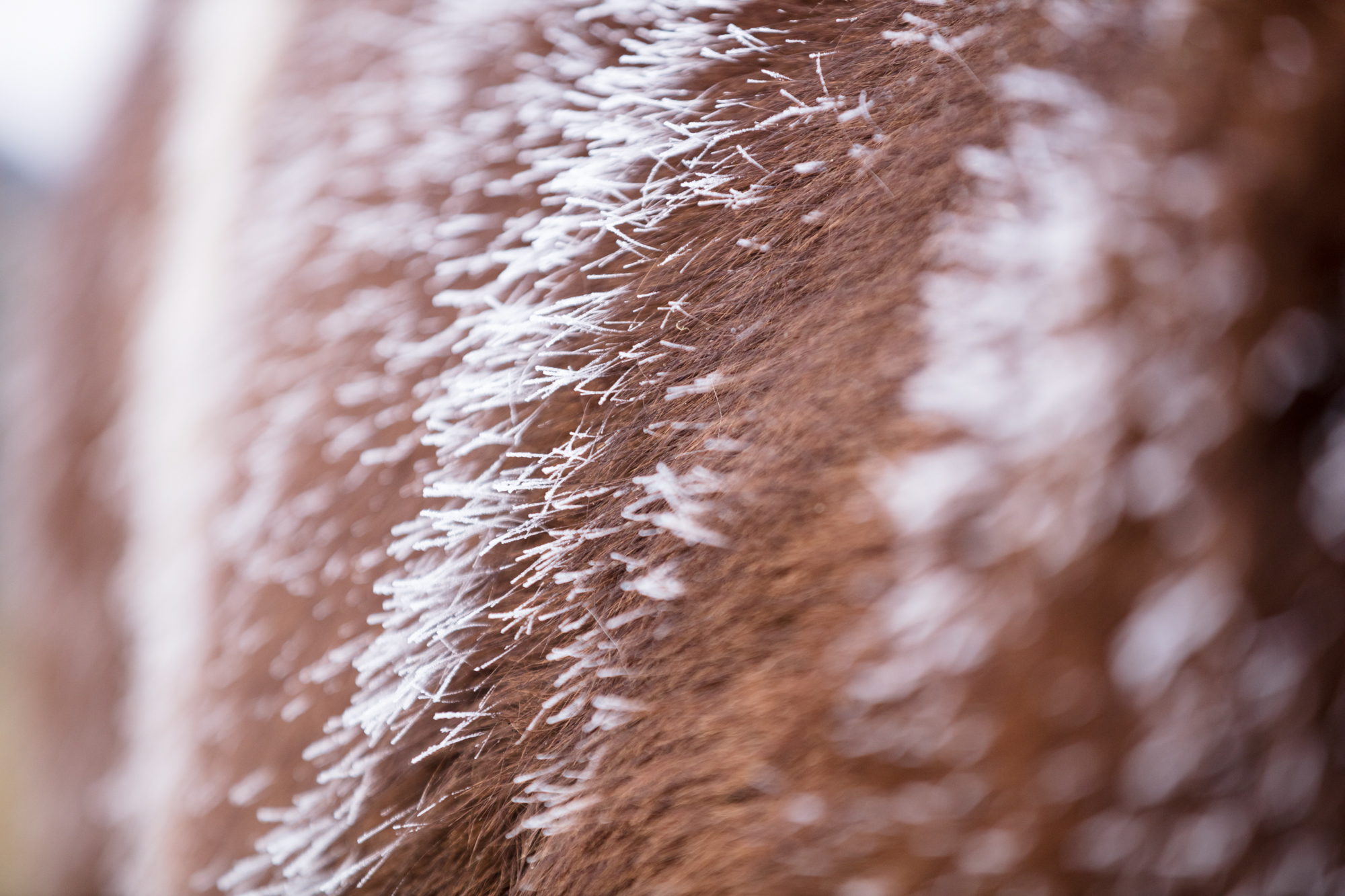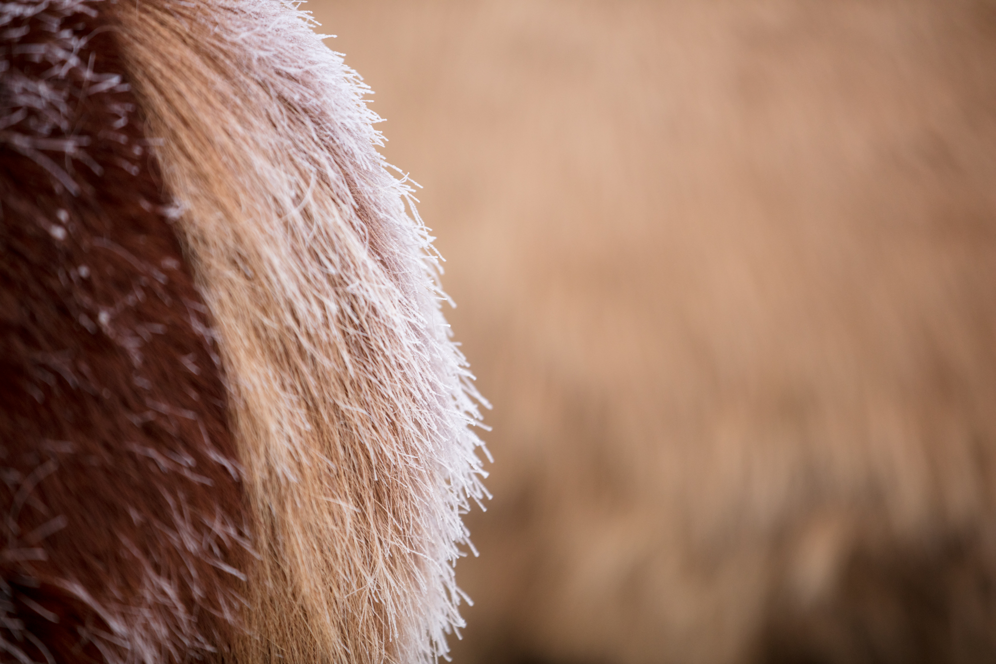 Am Sonntag gingen wir gleich in der Früh zur Stutenherde, damit wir ein paar Details fotografieren konnten – wie zum Beispiel den Tau auf dem Fell.