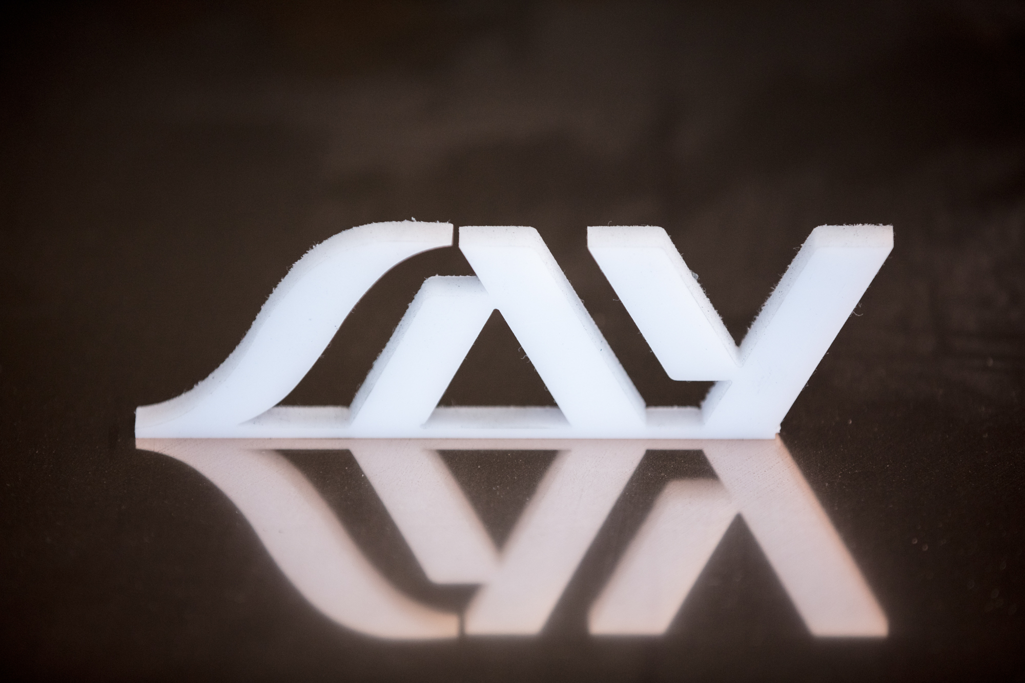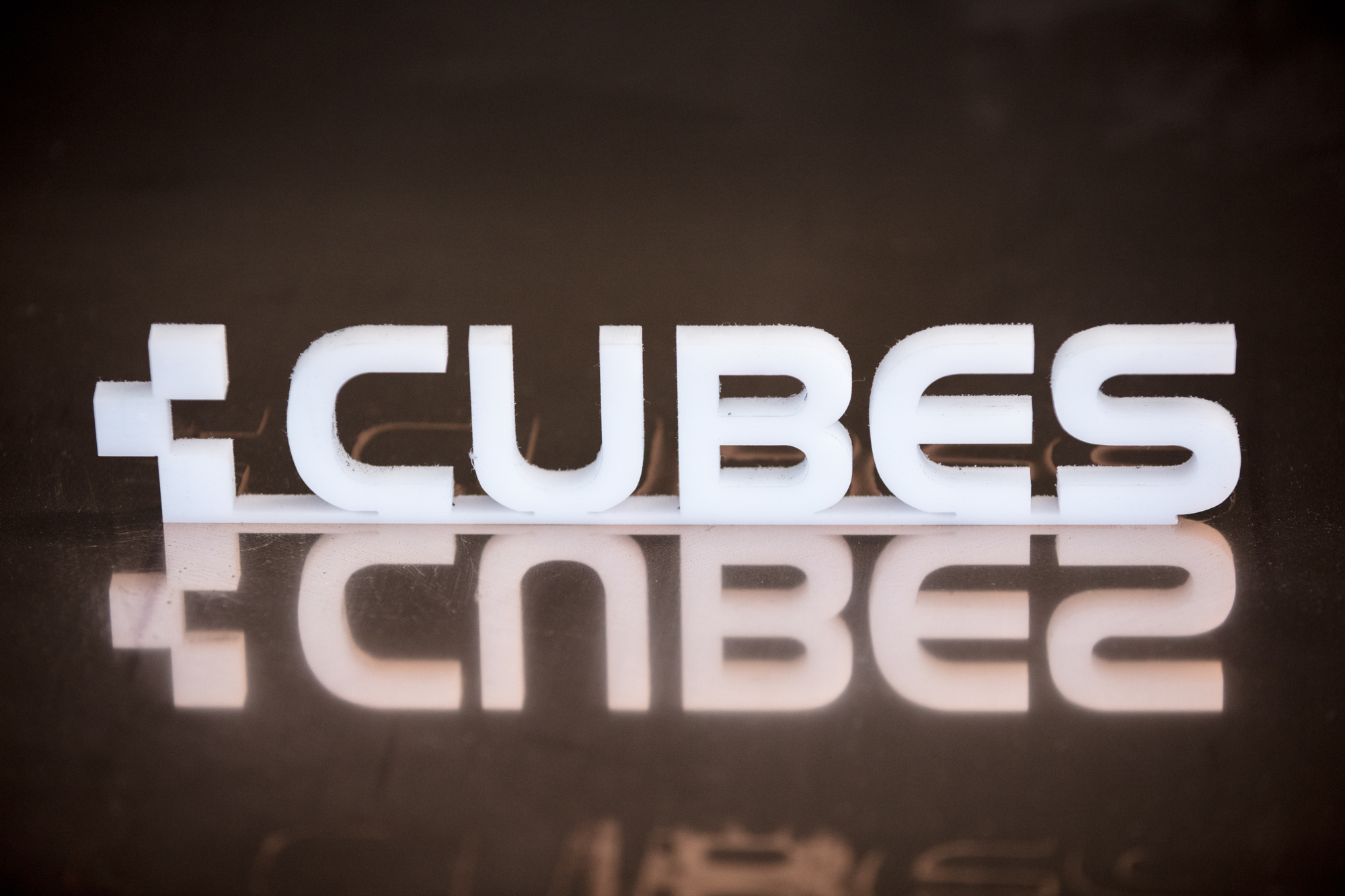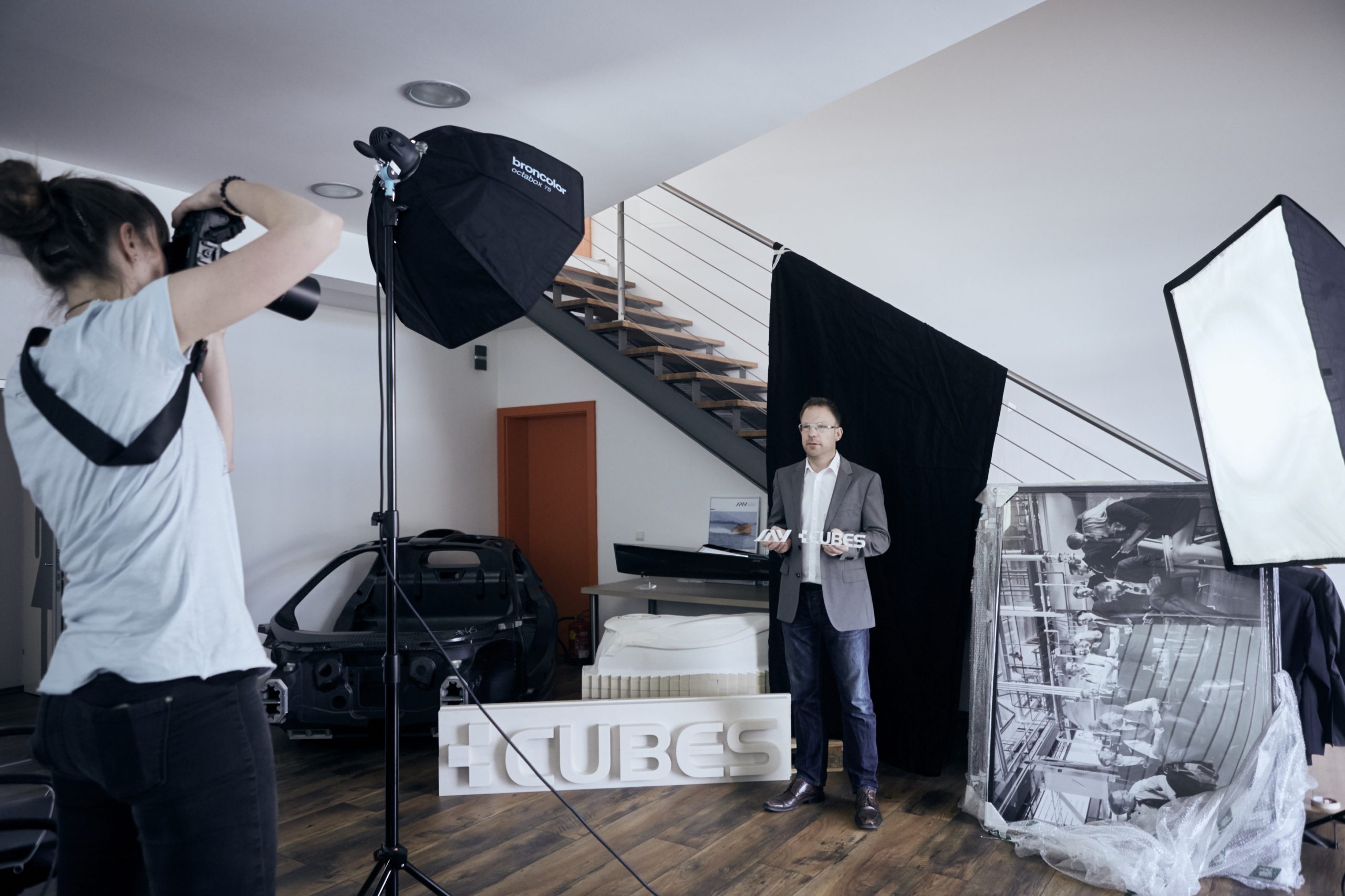 Ich ließ mir die Logo-Züge bei der Firma Wasserstrahlschnitt in Steindorf b. Straßwalchen ausarbeiten, lud Jasmin Walter ein für Making-Of Fotos und innerhalb kürzester Zeit stand ich auch schon im Büro der Firma „Cubes“.
