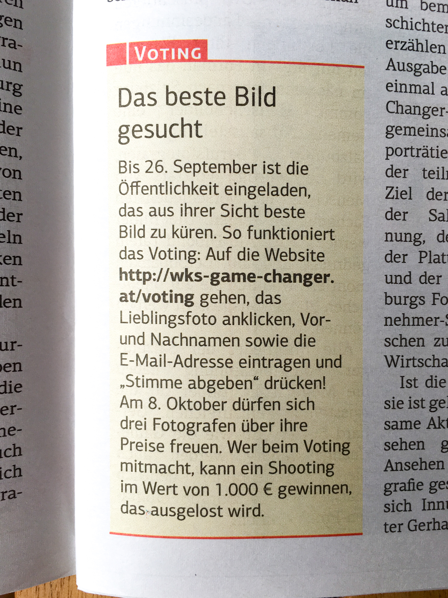 Anfang des Jahres wurde von der Innung der Berufsfotografen Salzburgs zur Game Changer #3 Aktion gerufen.