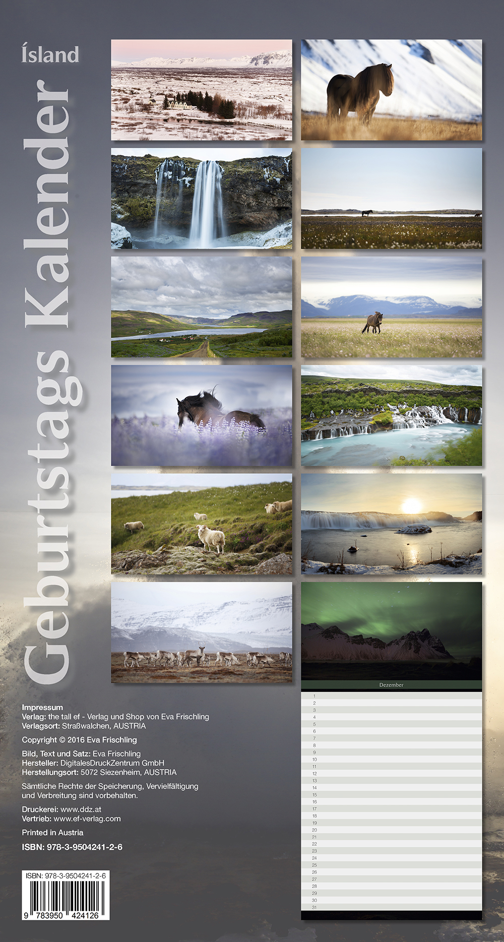 Der Geburtstagskalender ist ein monatlicher Kalender mit den besten Islandmotiven aus drei Jahren! (Natur- und Tiermotive).