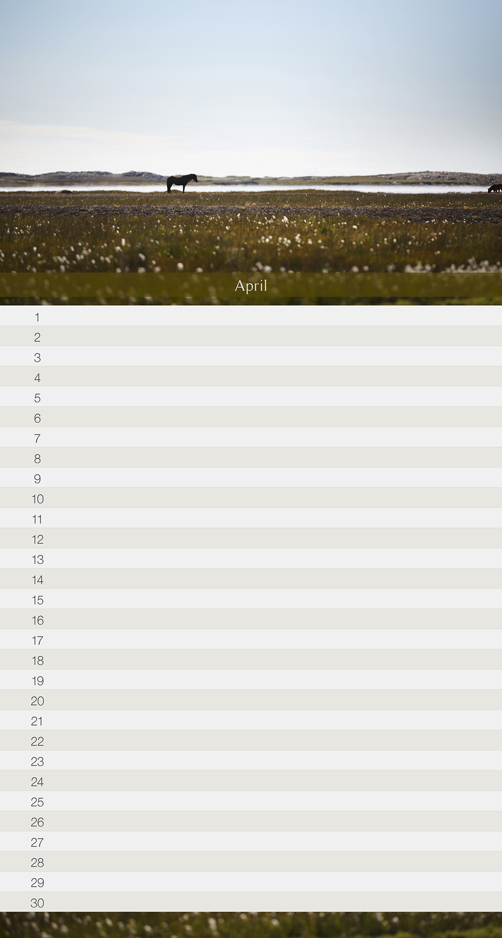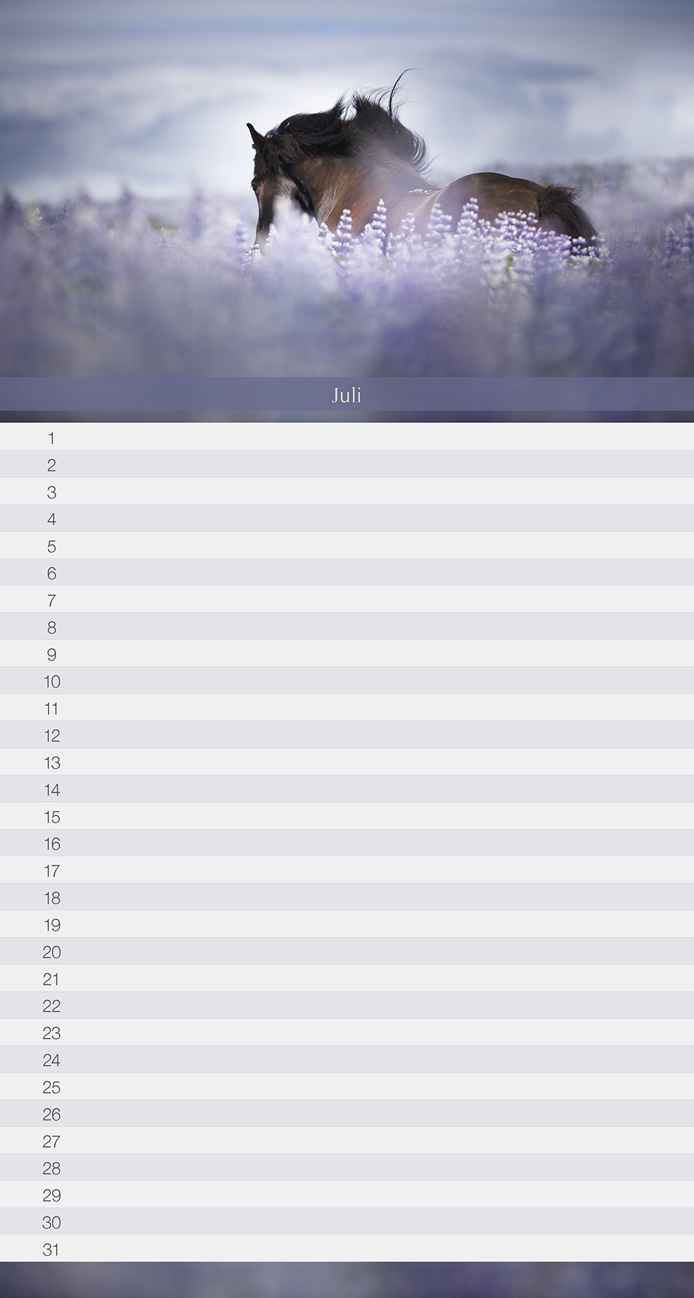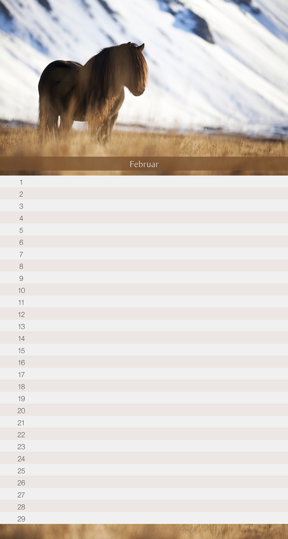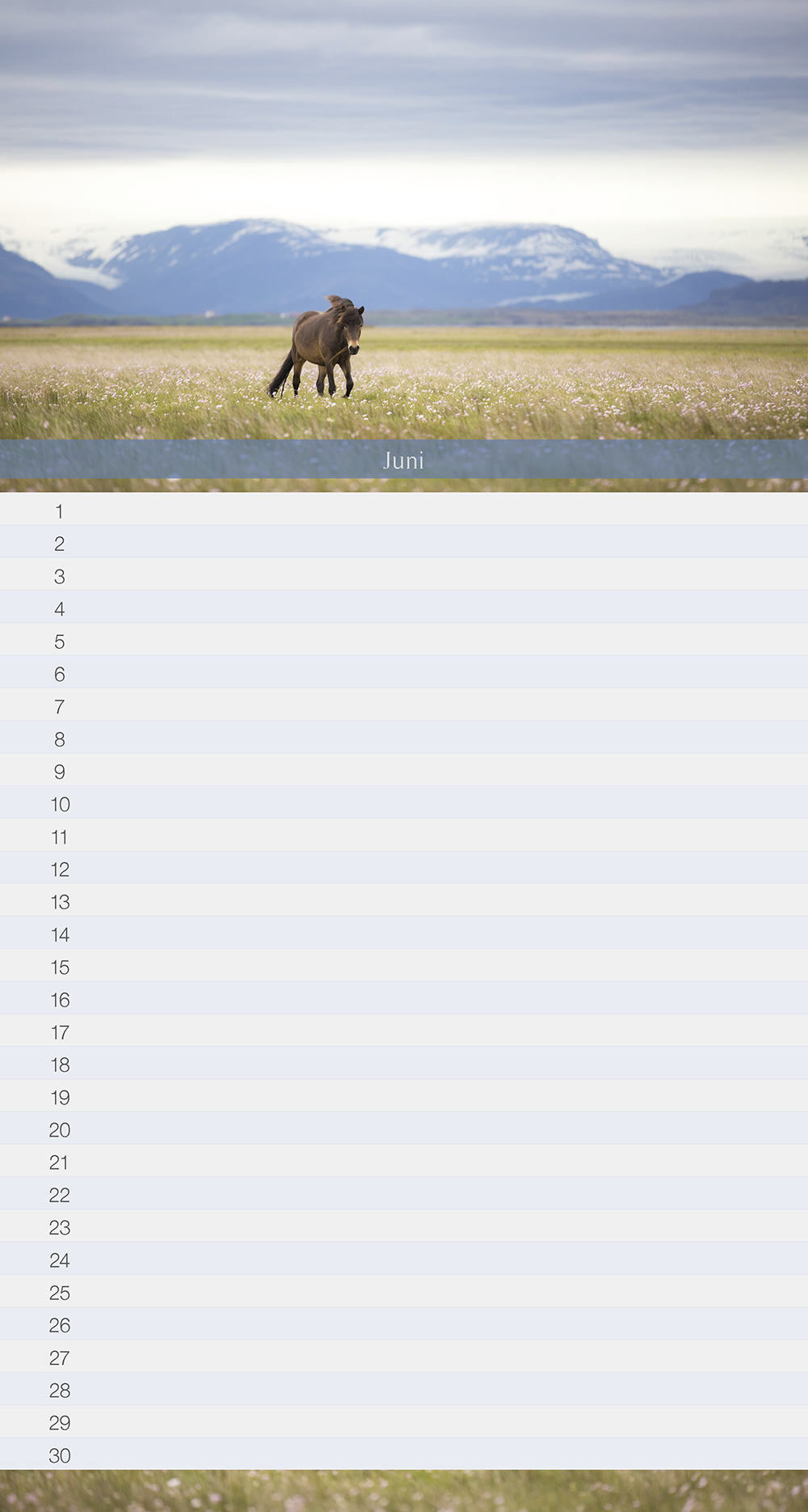 Monatskalender mit Islandpferdemotiven frisch aus Island für das Jahr 2017.