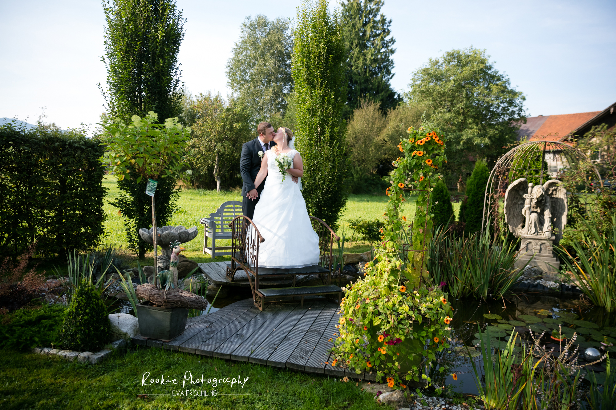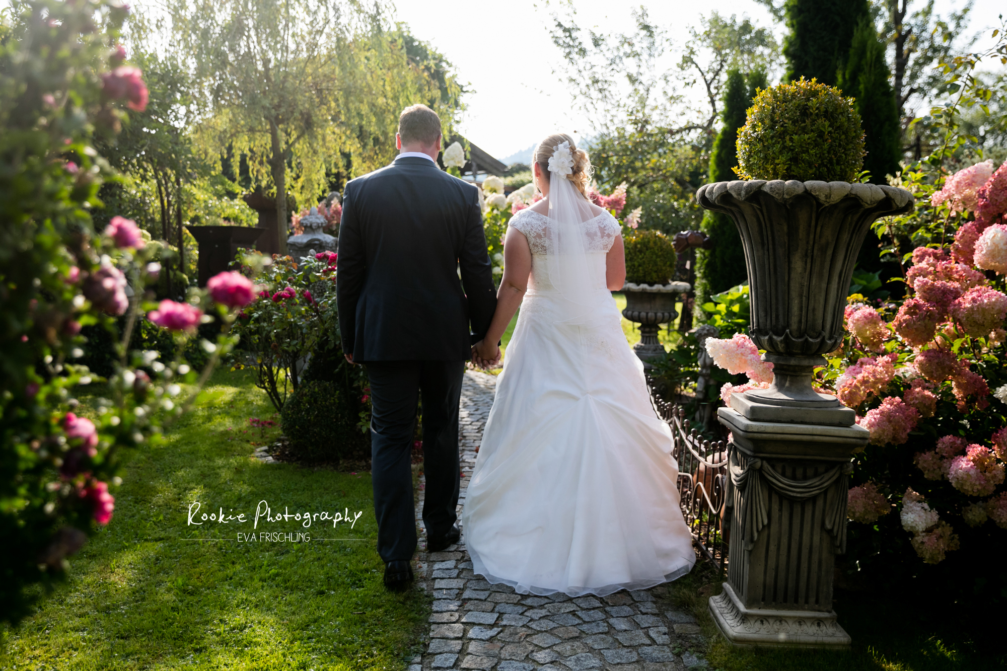 Für die Paarfotos waren wir in Neumarkt in Schalkham in einem tollen Schaugarten, und die kirchliche Trauung fand danach in Oberhofen am Irrsee statt.