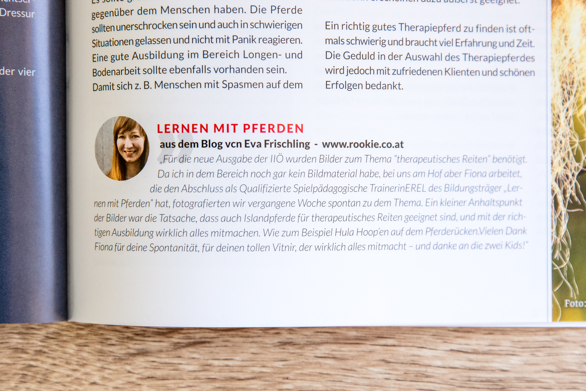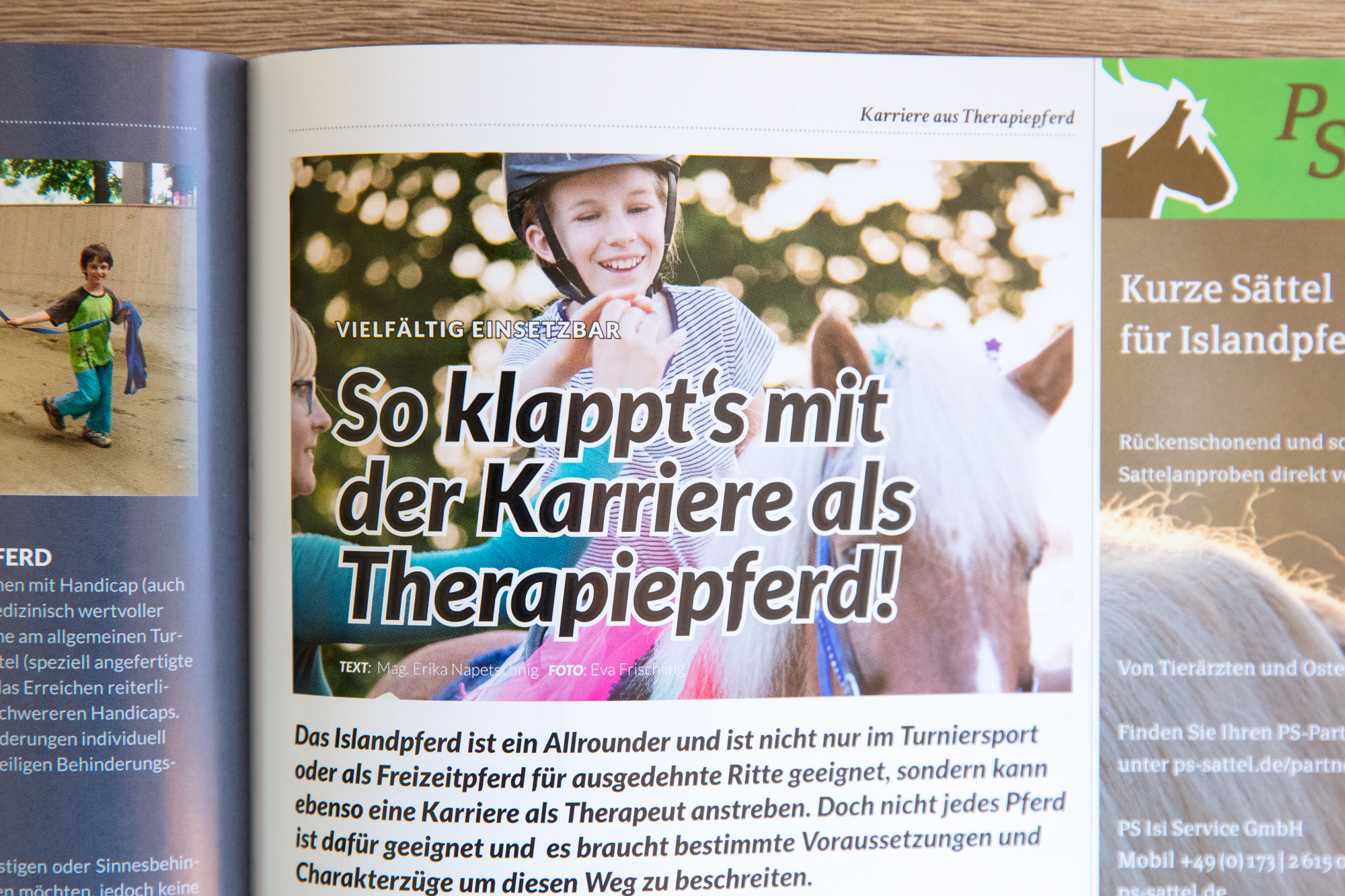 Viele schöne Bilder von mir schmücken die ein oder andere Seite. Wir haben extra für die Ausgabe das therapeutische Reiten fotografiert.