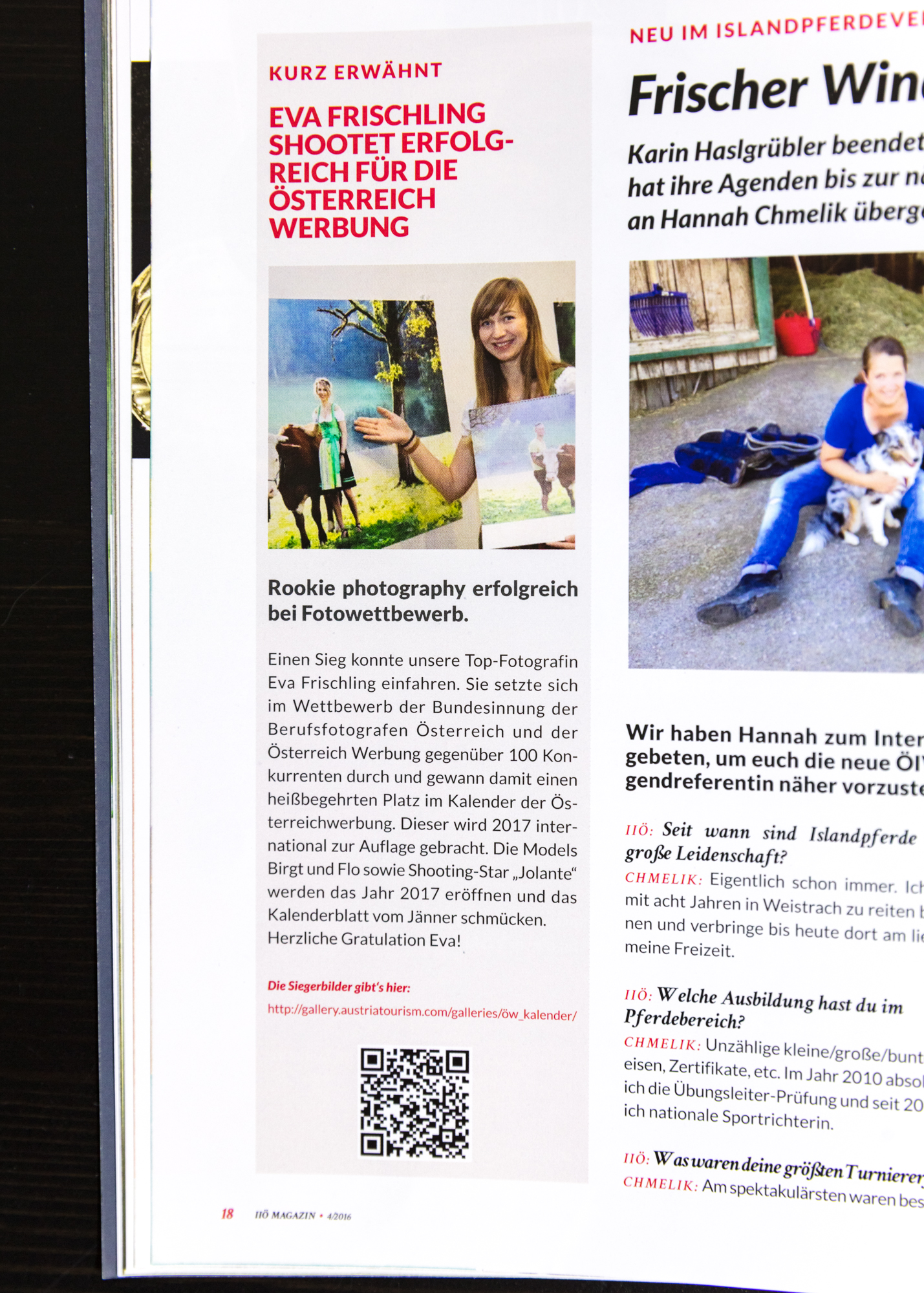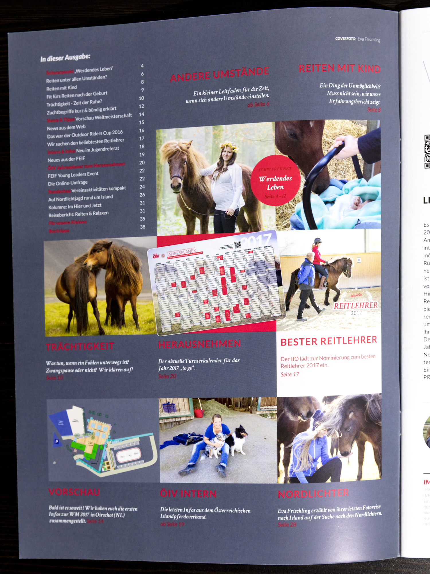 In der letzten Ausgabe für 2016 des Magazins der ÖIV – der Islandpferde in Österreich, kurz IIÖ – bin ich auch wieder stark vertreten.