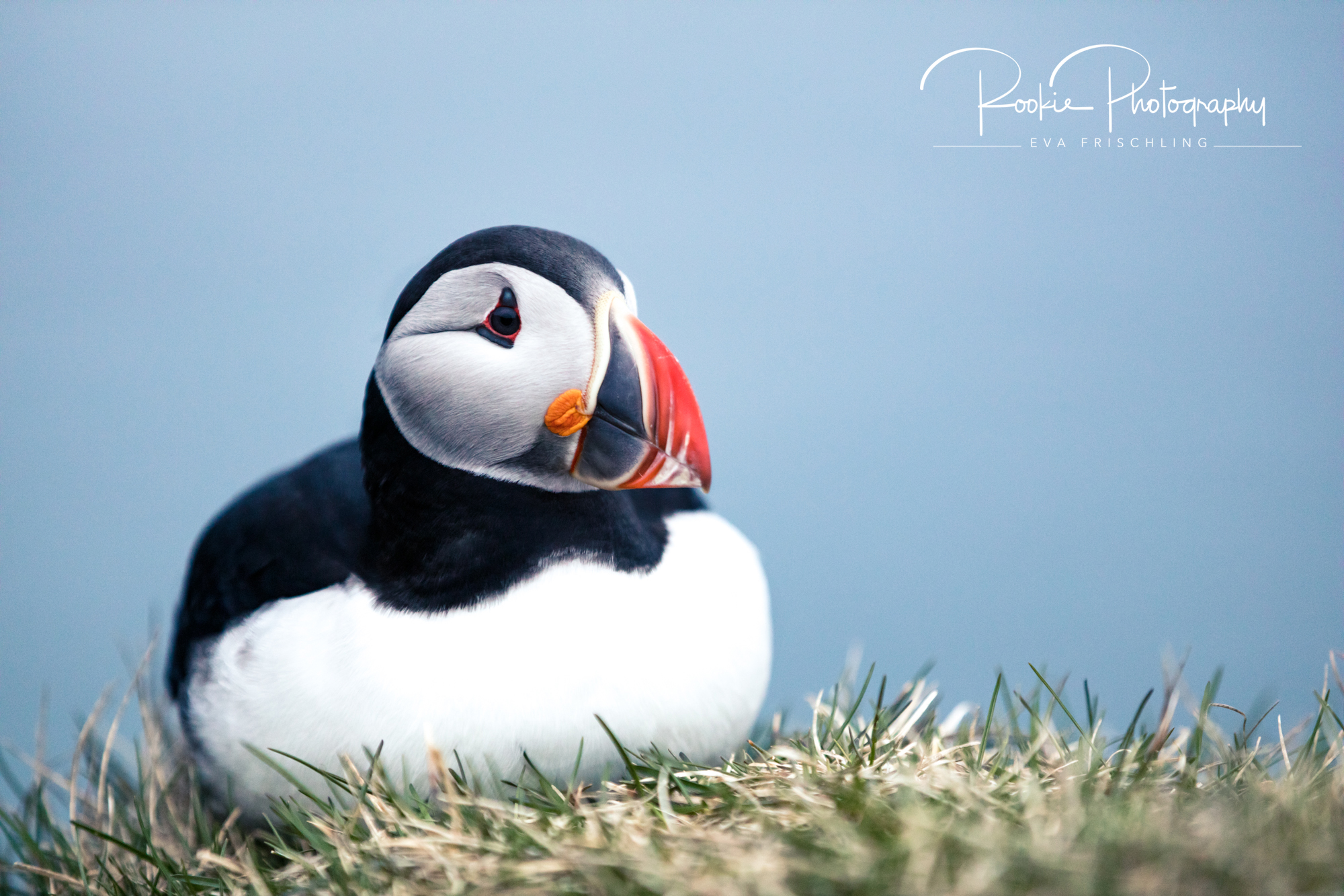 Ich näherte mich also – wie beschrieben – auf meinem Bauch liegend und ganz vorsichtig krabbelnd dem Papageitaucher. Irgendwann traute ich mich dann aber nicht mehr weiter, aber dank meines Teleobjektivs war ich hautnah am Vogel. Einfach wunderbar!