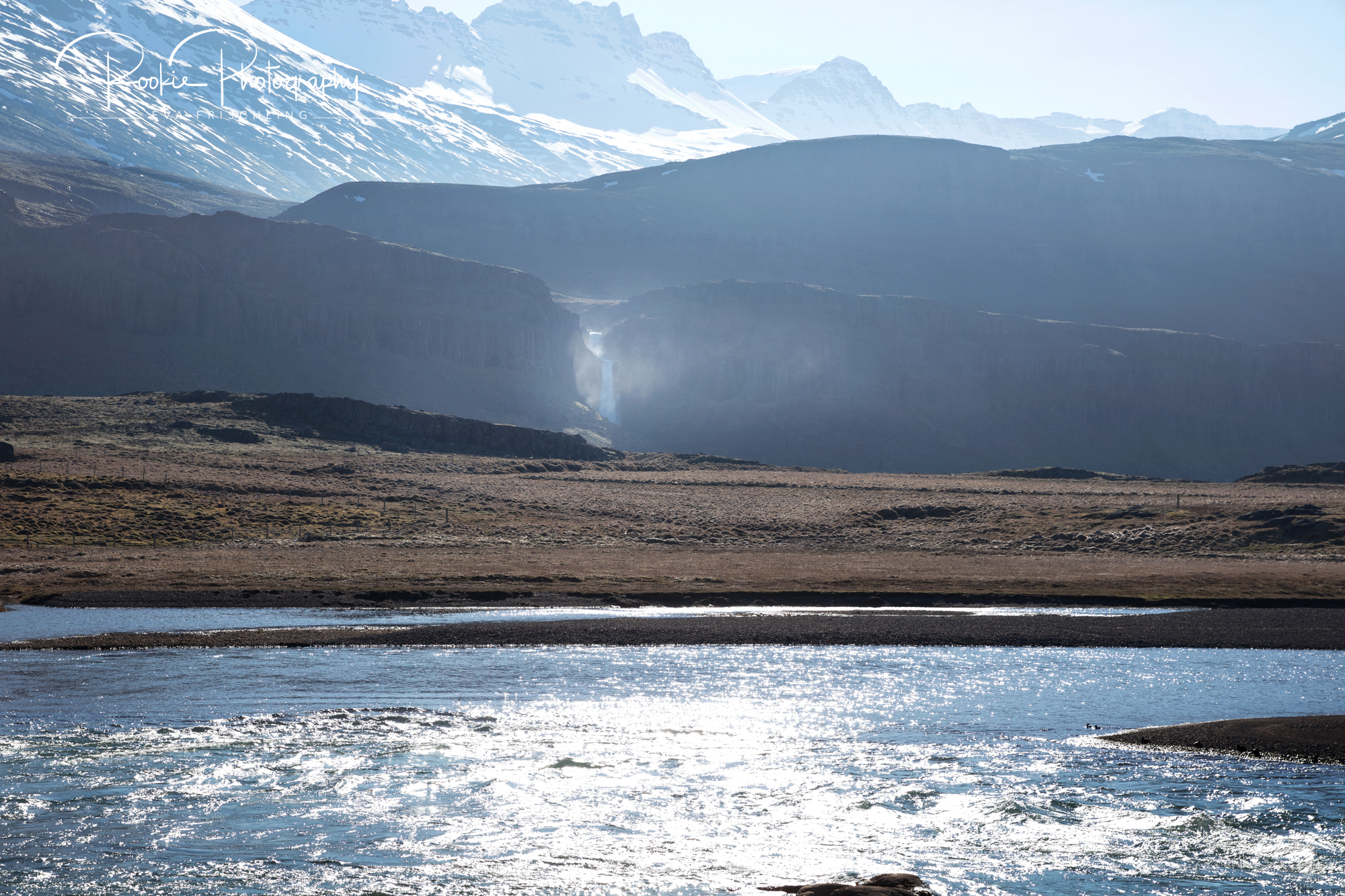 Im Osten fährt man einige große, und auch kleine Fjorde aus. Uns wurde gesagt, dass kurz vor der Abzweigung über den Pass namens Öxi ein unglaublich schöner Wasserfall ist. Nachdem ich nicht genau im Kopf hatte wie lange es bis zur besagten Abzweigung war, hielten wir nach jedem Wasserfall Ausschau. Irgendwann fanden wir dann einen, fuhren eine Straße entlang in Richtung Wasserfall und stellten dann fest, dass wir auf der Straße nicht zu dem Wasserfall kommen.