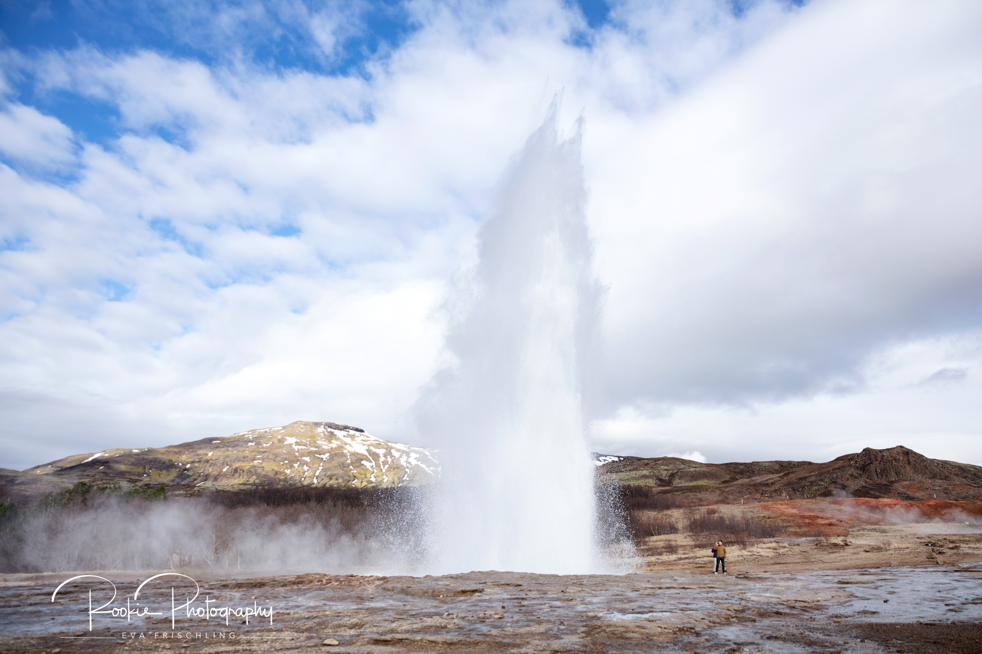 Auch hier hatten wir großes Glück: denn ich war schon in Geysir, wo es vor Menschen nur so wimmelte. Da wir ja so früh unterwegs waren, hatten wir sehr großes Glück und lediglich ein paar andere Frühaufsteher waren vor Ort.