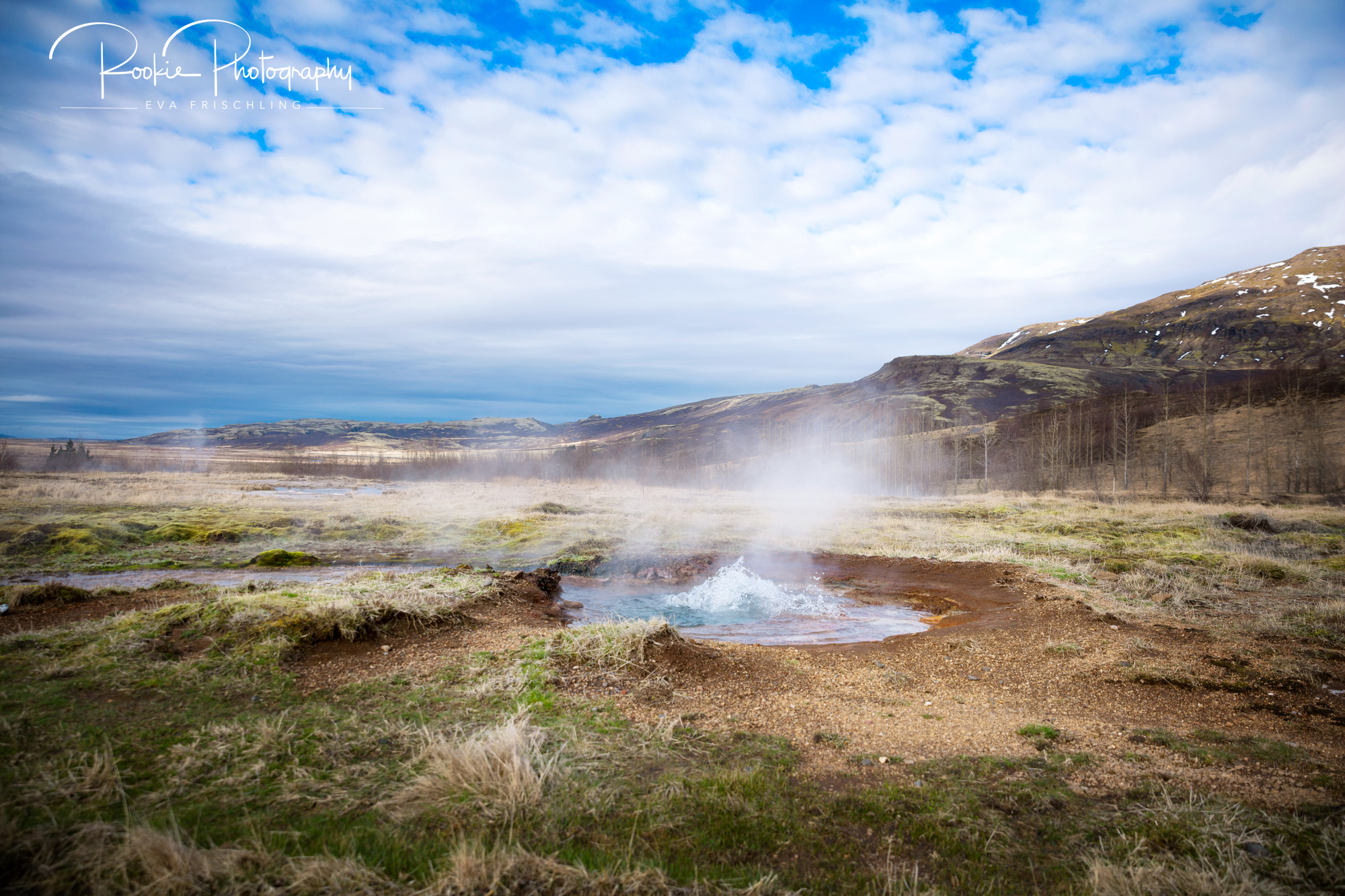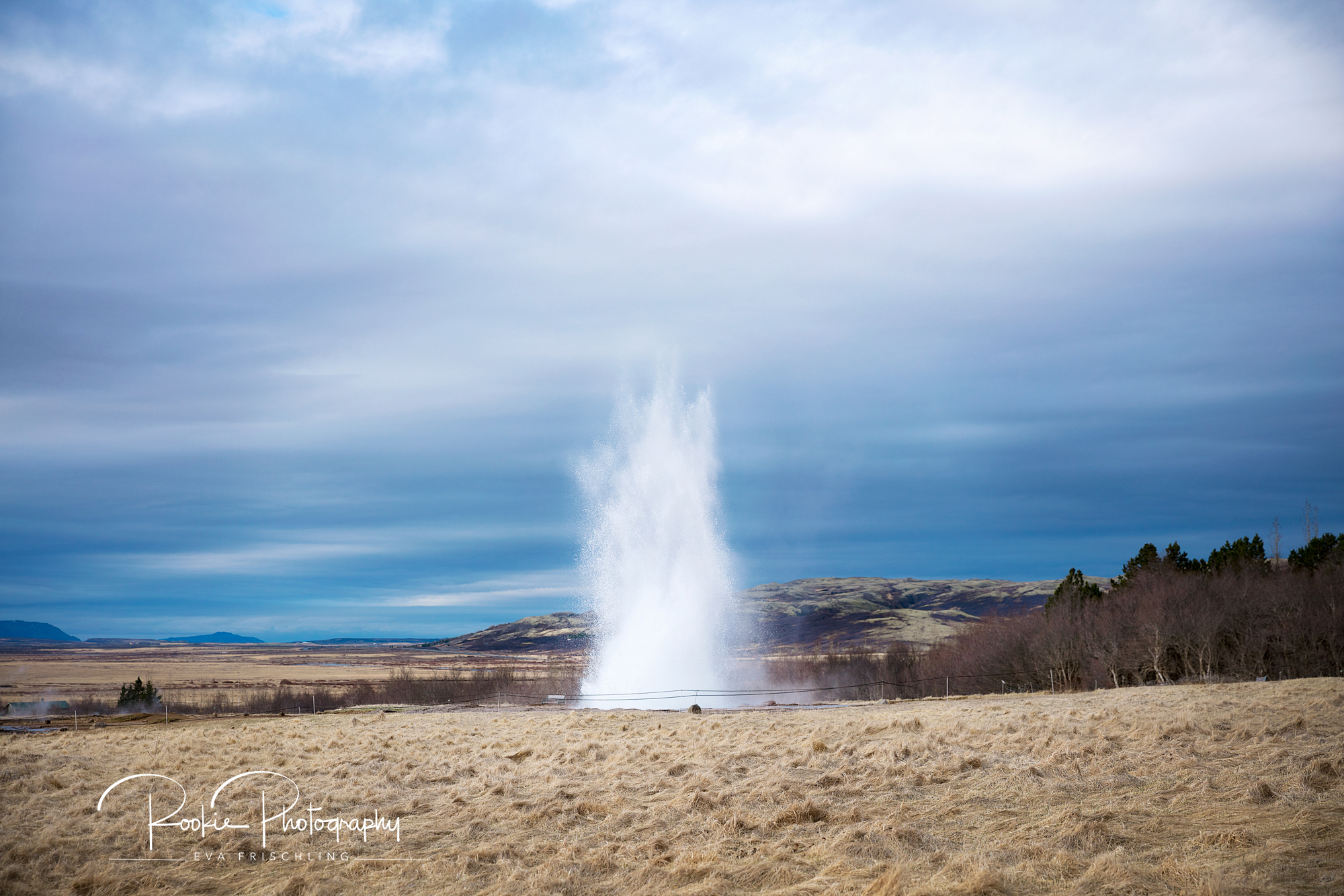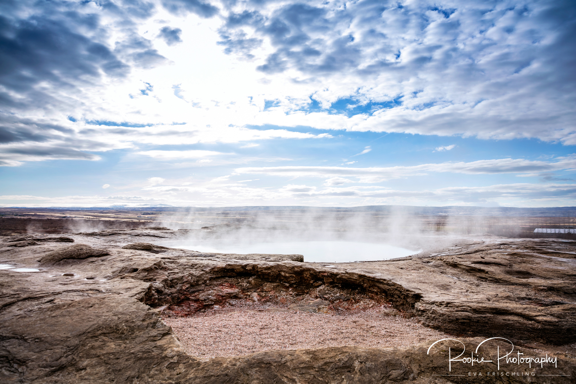 Wer sich jetzt erhofft dass ich euch einen Geysir-Ausbruch vom großen Geysir zeige, der irrt sich, denn der große Geysir bricht so gut wie gar nicht mehr aus. Aus dem Jahr 2000 sind die letzten großen Ausbrüche aufgezeichnet. Ich hab bis heute noch keinen einzigen Ausbruch des großen Geysires mitbekommen.