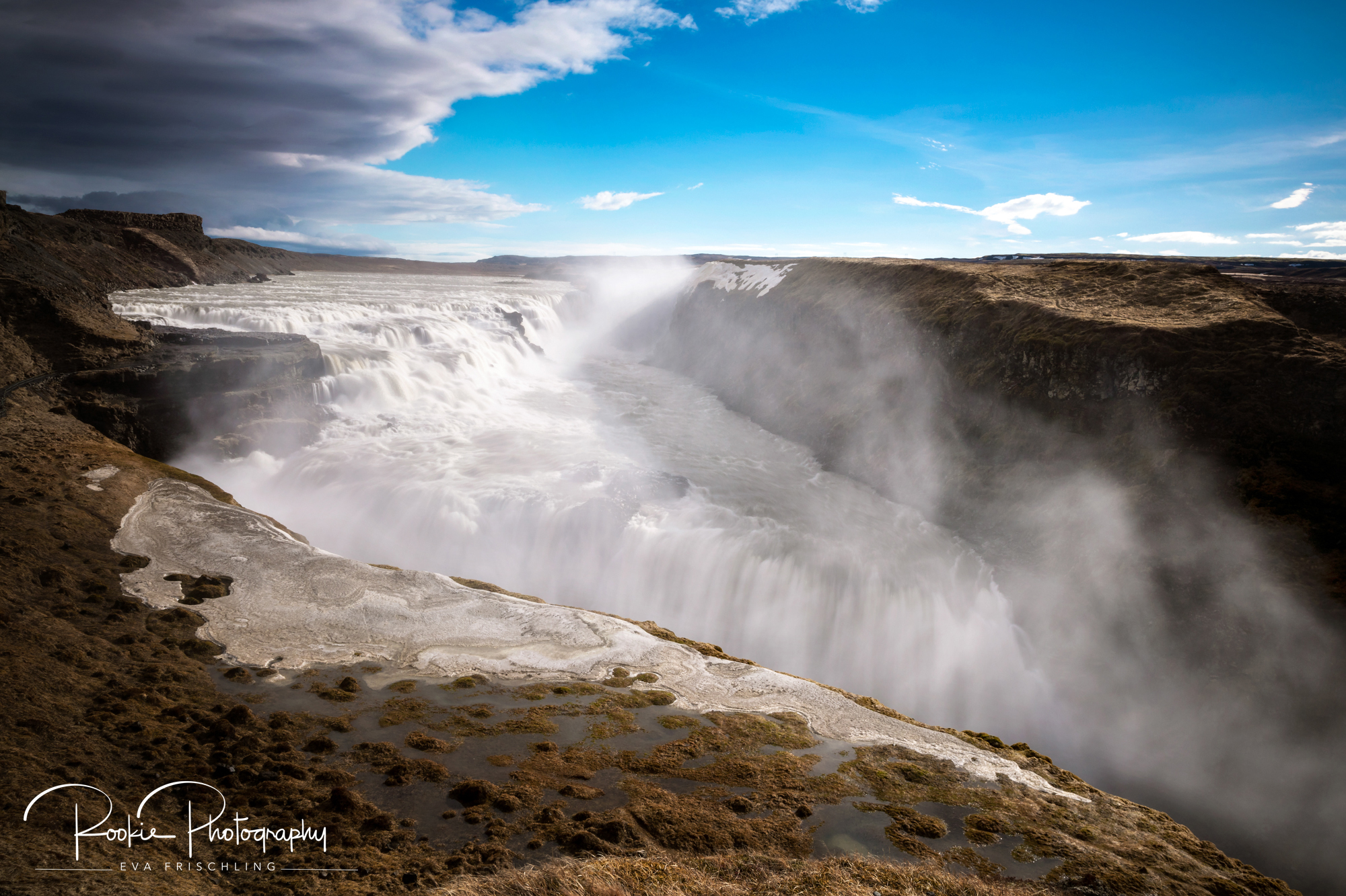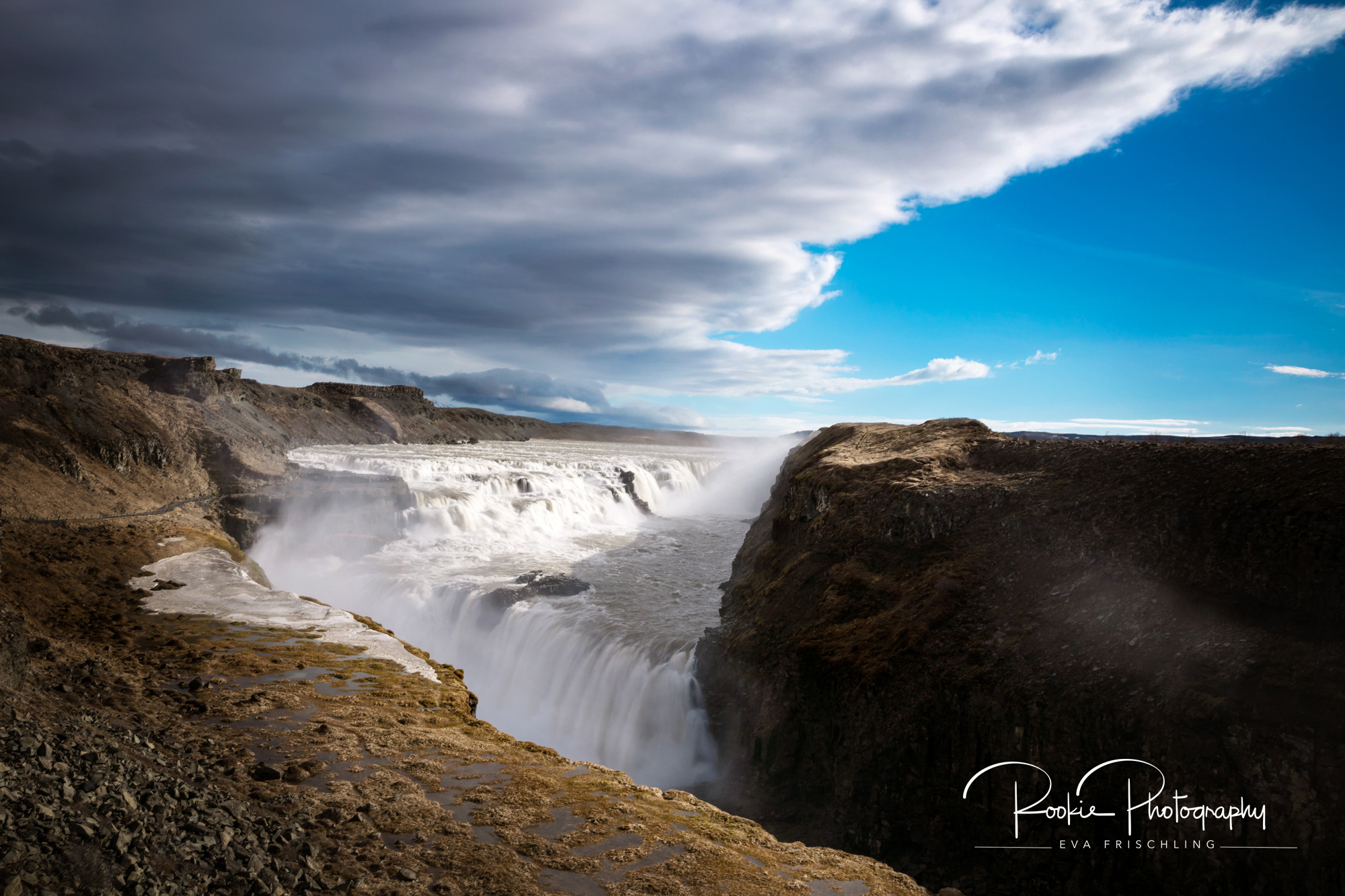 Als drittes stand der Fixpunkt „Gullfoss“ auf unserer „to-see-list“. Der goldene Wasserfall, wie er wörtlich übersetzt heißt, ist einer der bekanntesten Wasserfälle in Island. Er ist mächtig, stürzt über zwei Stufen in die Tiefen und nahezu jeder Tourist in Island sieht ihn sich an. Ich werde mit dem Wasserfall bis jetzt aber irgendwie noch nicht so warm. Klar: er ist mega schön, aber: es gibt noch so viele andere, wunderschöne Wasserfälle in Island. Trotzdem fahre ich bei nahezu jeder Süd-Tour beim Gullfoss vorbei.