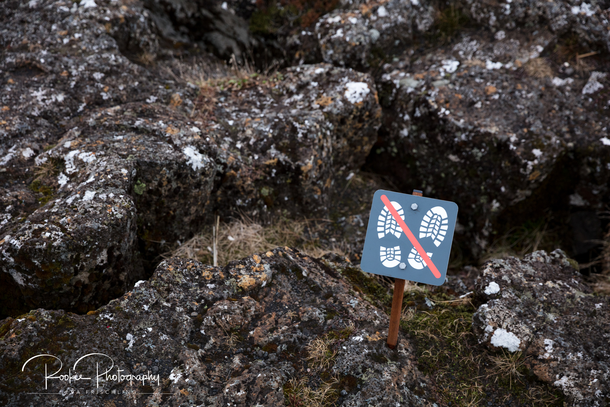 Eines der meist bekannten Verbotsschilder in Island, in der Nähe der Schlucht. Kacken verboten. Wer sich jetzt denkt: die Isländer sind aber Spaßvögel, der erkennt den Erst der Sache nicht. Denn das Schild wurde aus gutem Grund hier aufgehängt, ich vermute mal, dass nicht nur ein einziger Mensch hier sein großes Geschäft verrichtet hat. Ich gebe selber zu: es ist auf einer Islandreise nicht immer leicht eine Toilette zu finden, vor allem in abgelegenen Teilen. Aber: muss man wirklich sein Geschäft hinter der nächstbesten Steinmauer verrichten? Manches kann man sich ja auch verkneifen. 😉 Naja, auf jeden Fall hat die Sache einen Witz-Faktor.