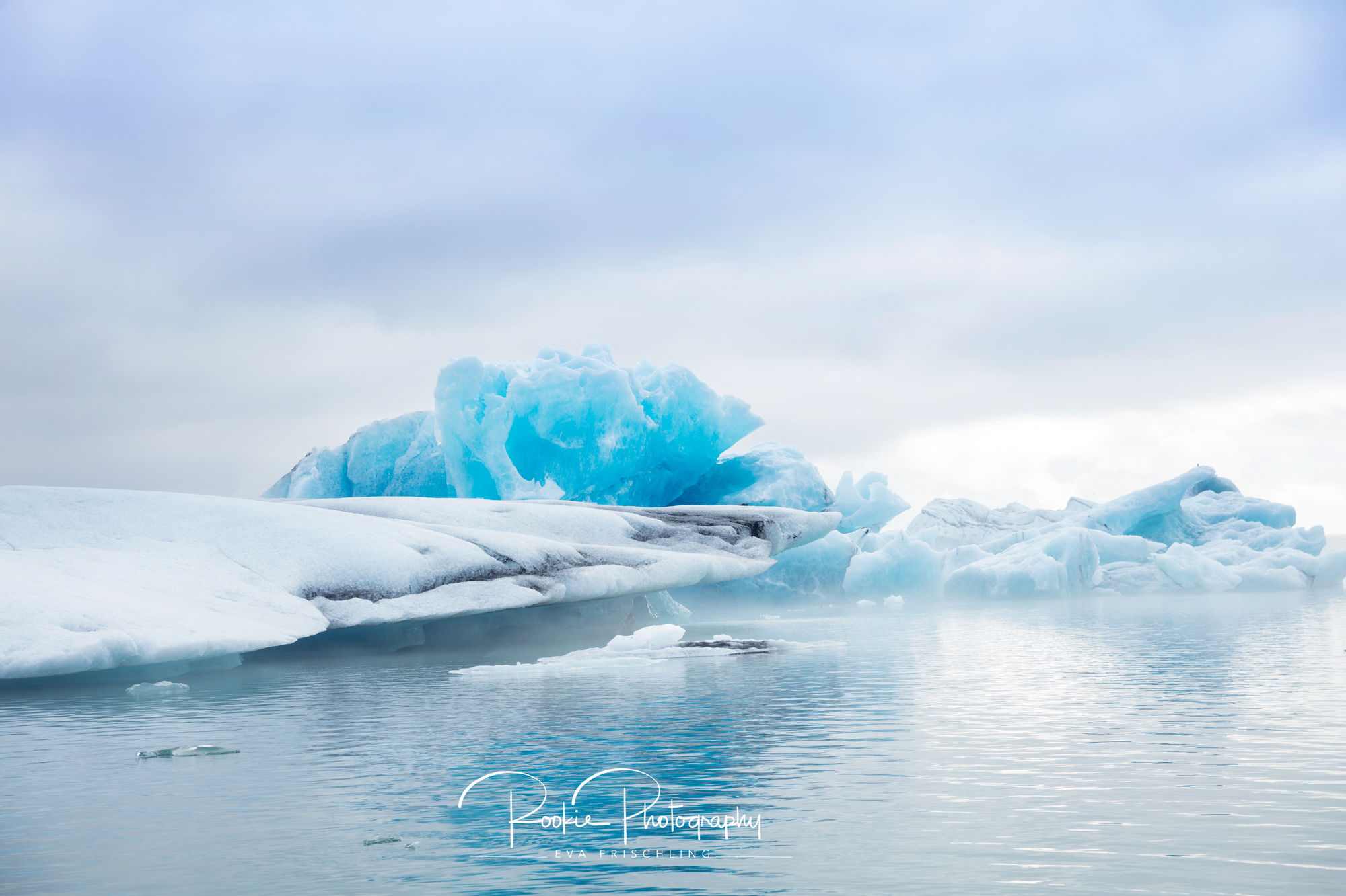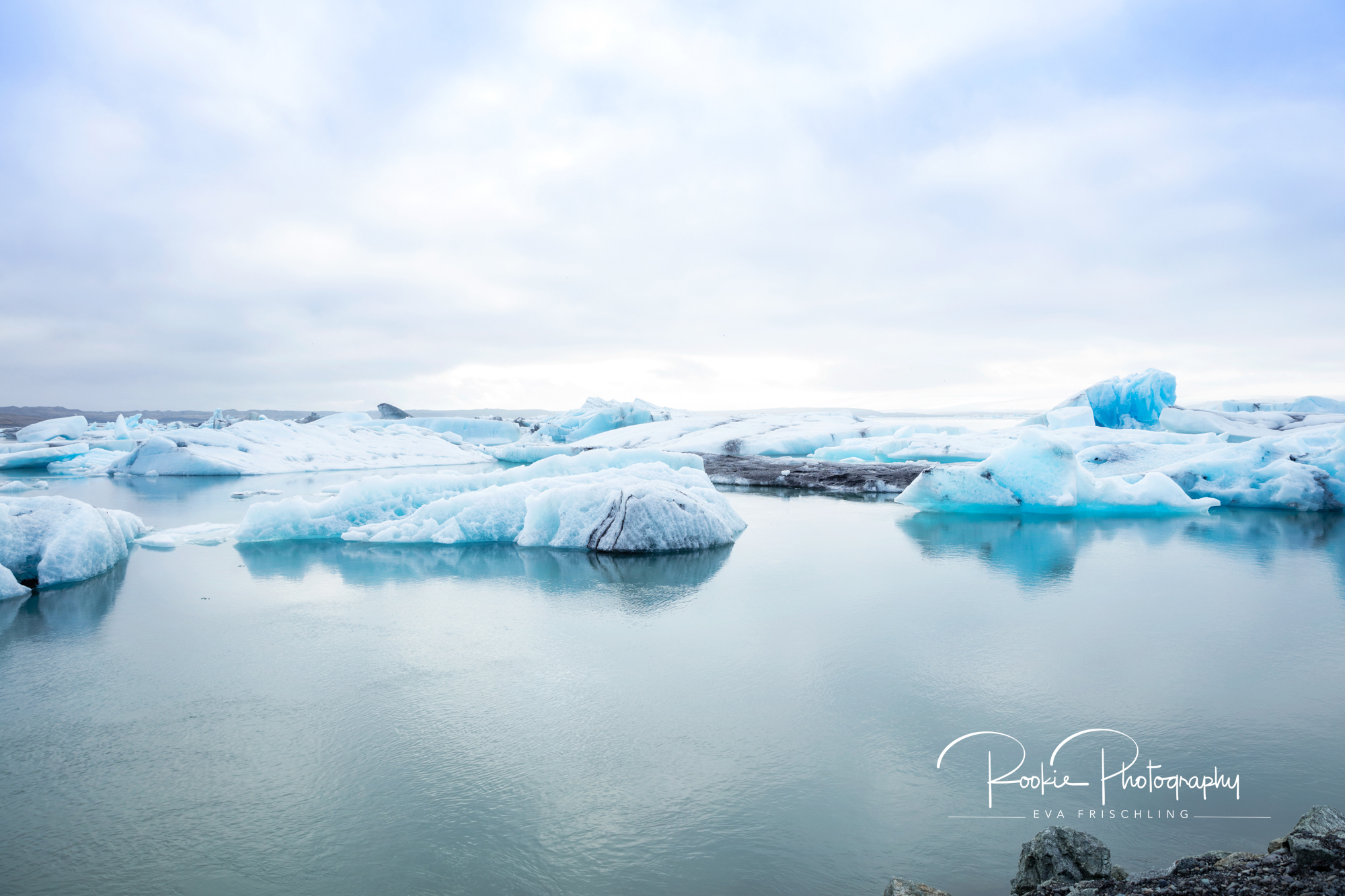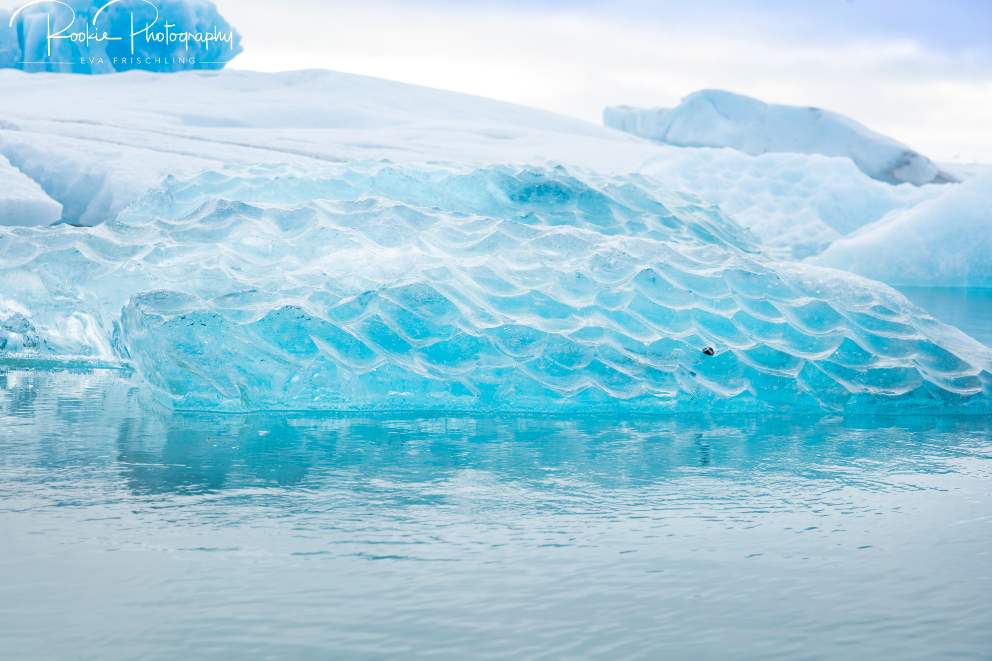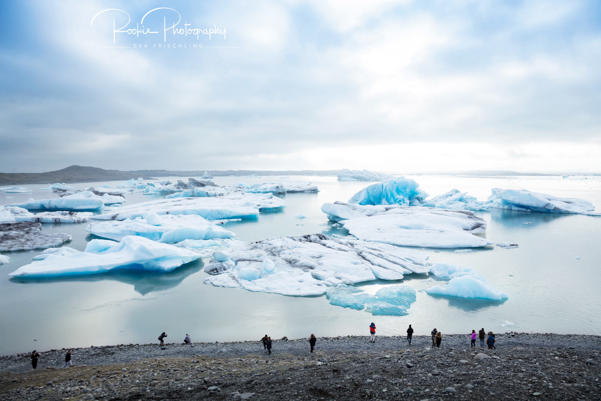 Unser nächster Halt war dann auch schon beim Gletschersee Jökulsárlón. Dieses mal waren unglaublich viele und vor allem große Eisblöcke direkt vor „der Schleuse in das Meer“. Deshalb bin ich noch extra auf eine Anhöhe geklettert um den Größenunterschied zwischen Mensch und Eis zu zeigen.