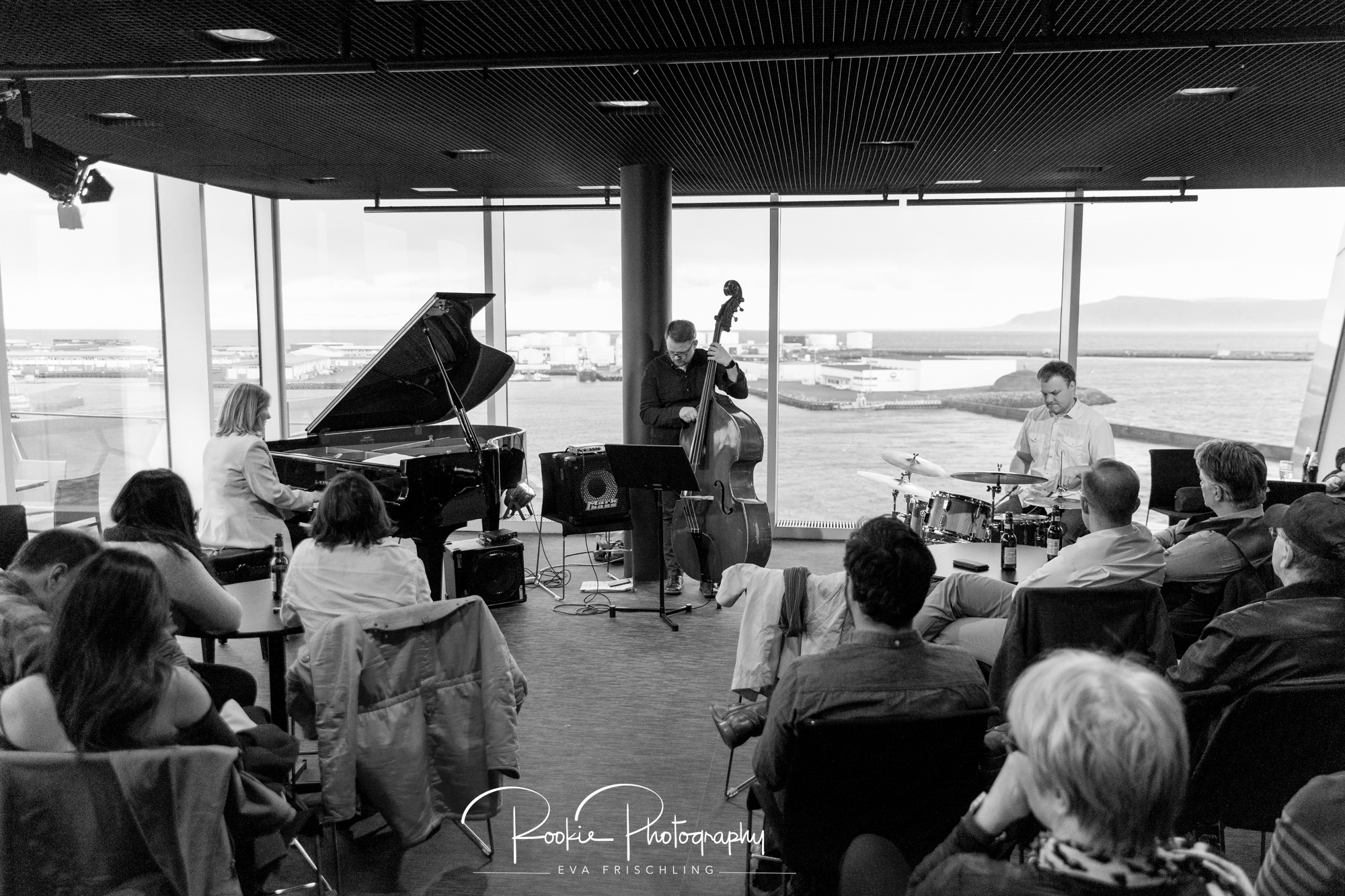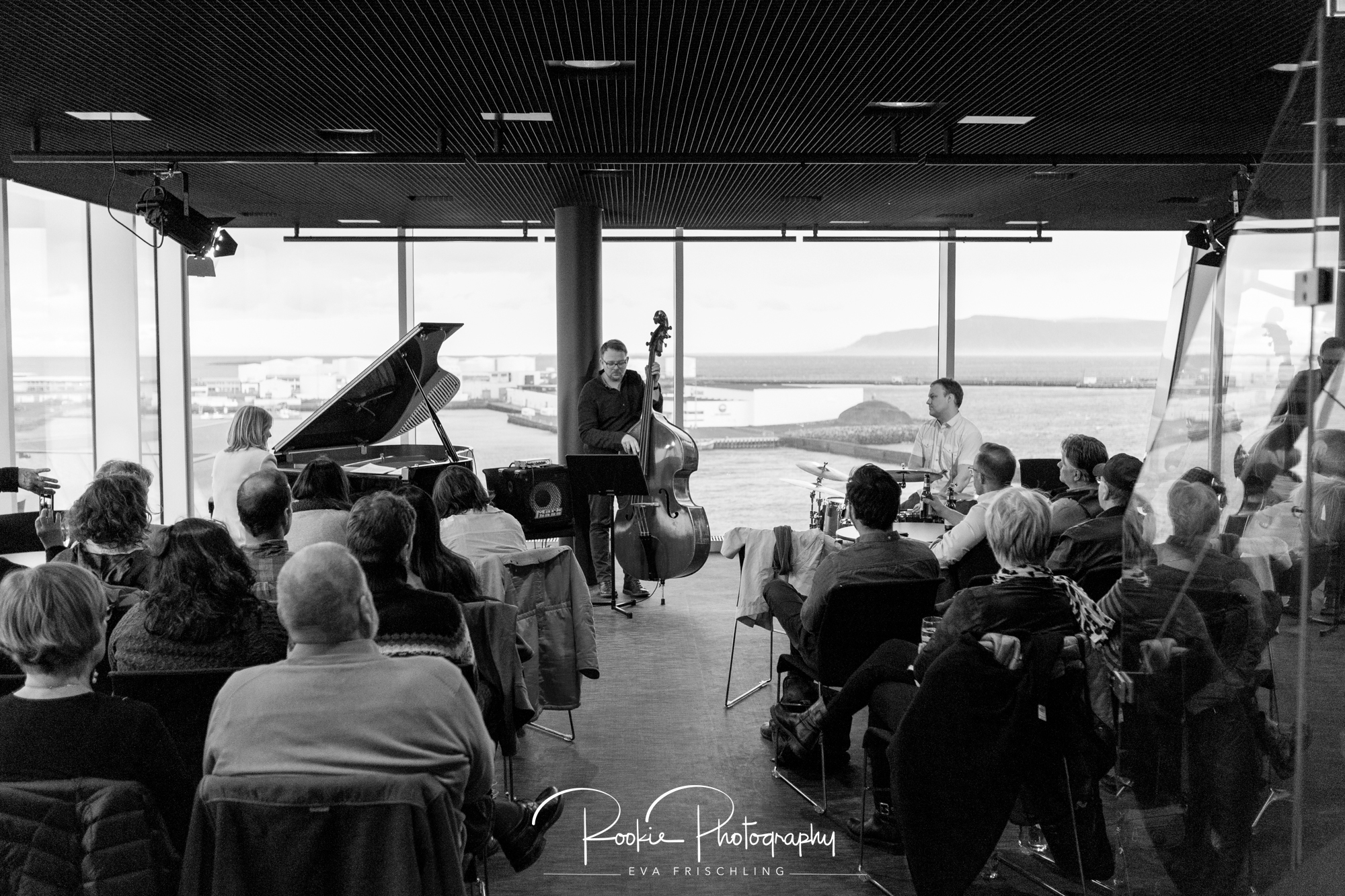 Bevor ich die Beiden in isländischer Natur fotografiert habe, durfte ich eine tolle Jazz-Band, Sunna Gunnlaugs, in der Harpa (Oper) fotografieren. Es war ein tolles Erlebnis diese Musik in einem unglaublichen Panorama von isländischer Landschaft zu sehen und zu hören.