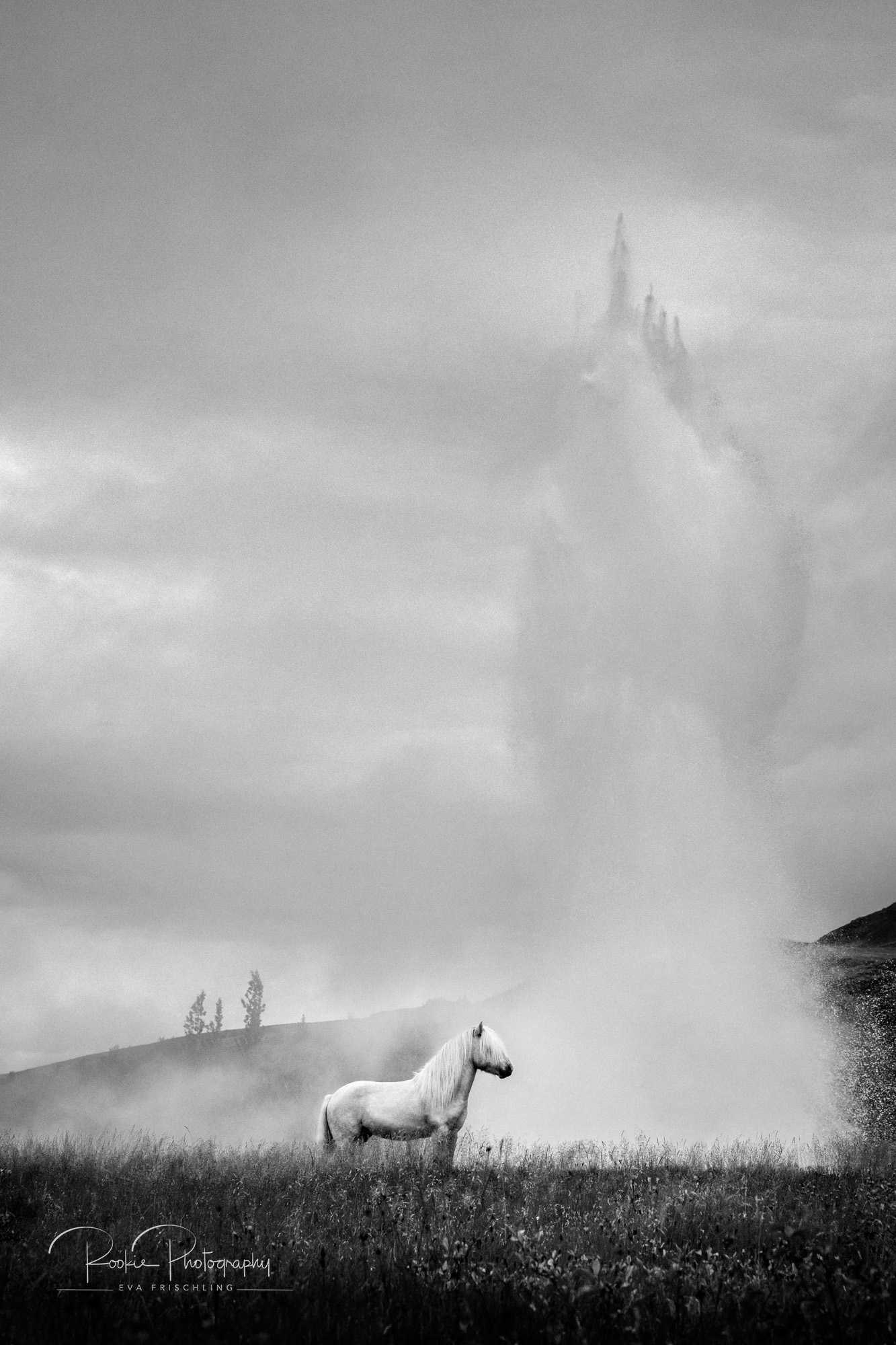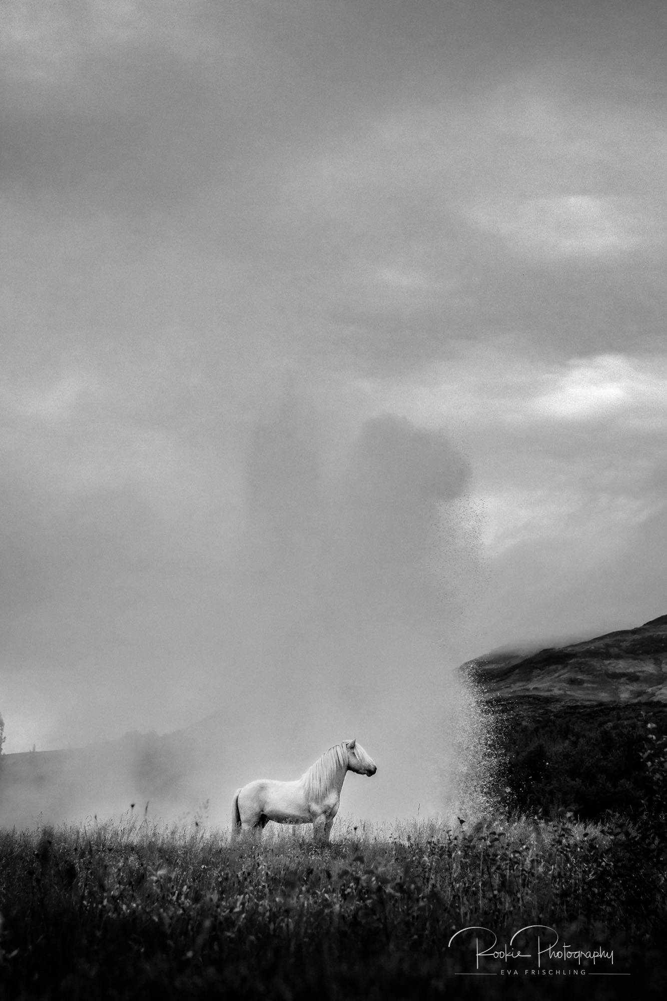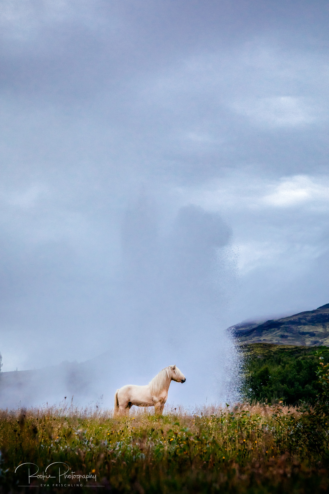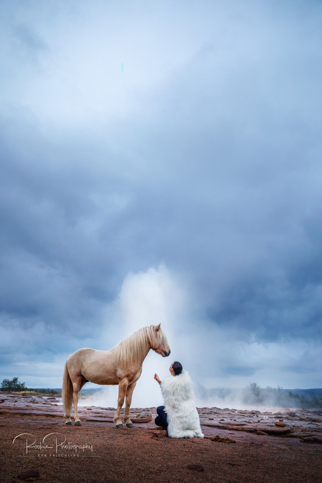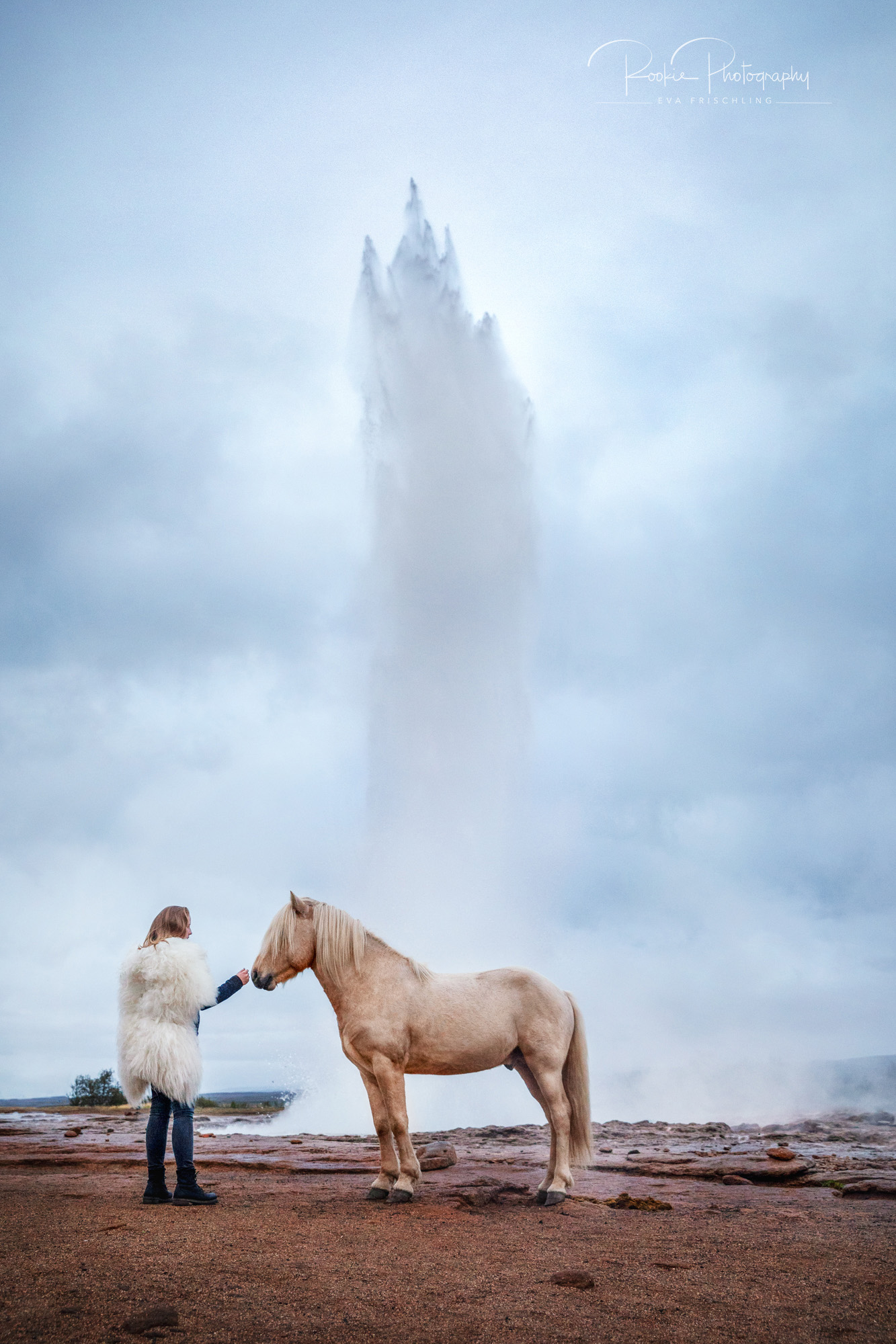 Sie hat ein Pferd namens Geysir und sagte mir, dass es doch cool wäre, wenn ich mal ein Pferd vor dem Geysir fotografieren würde.