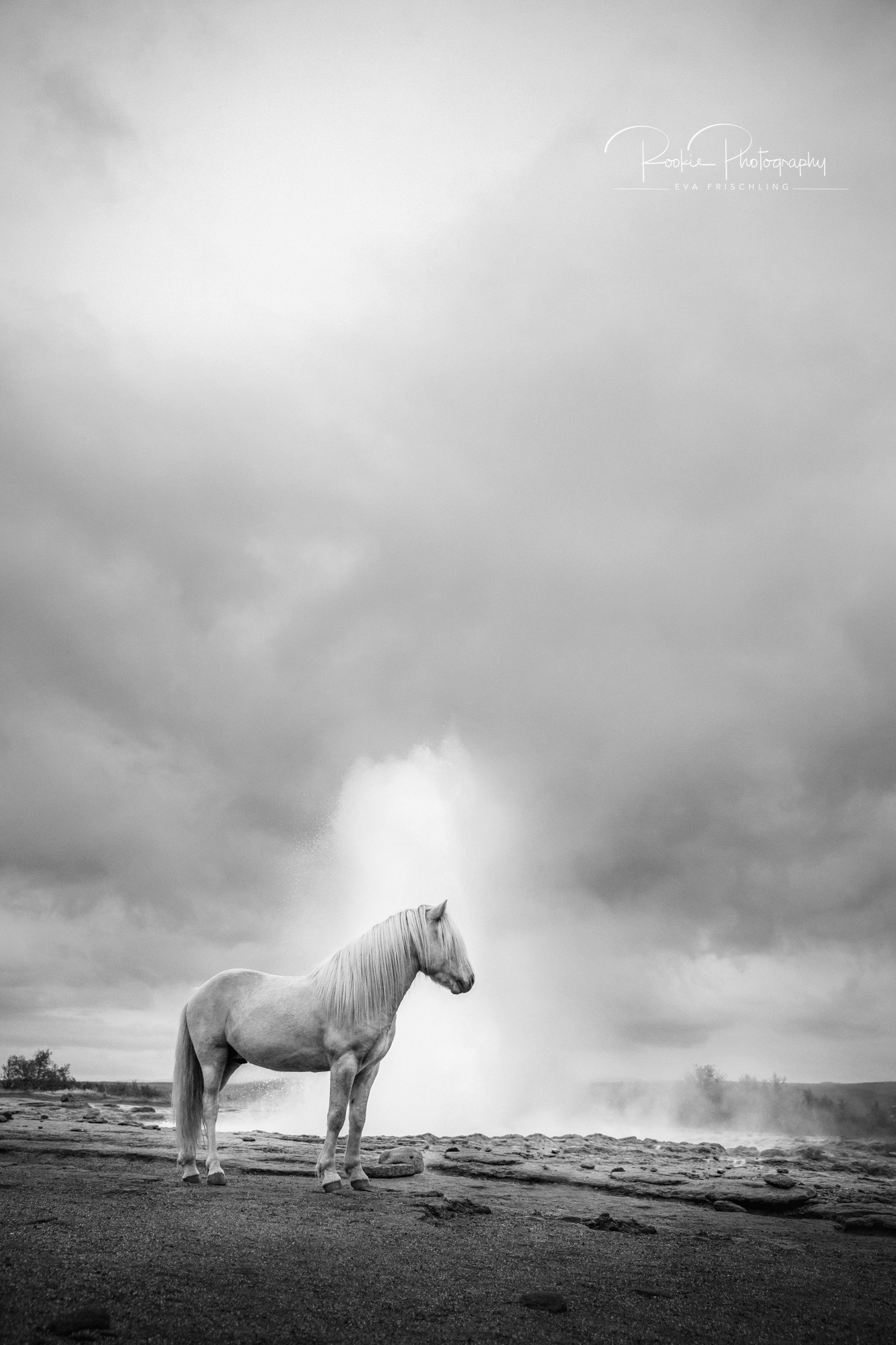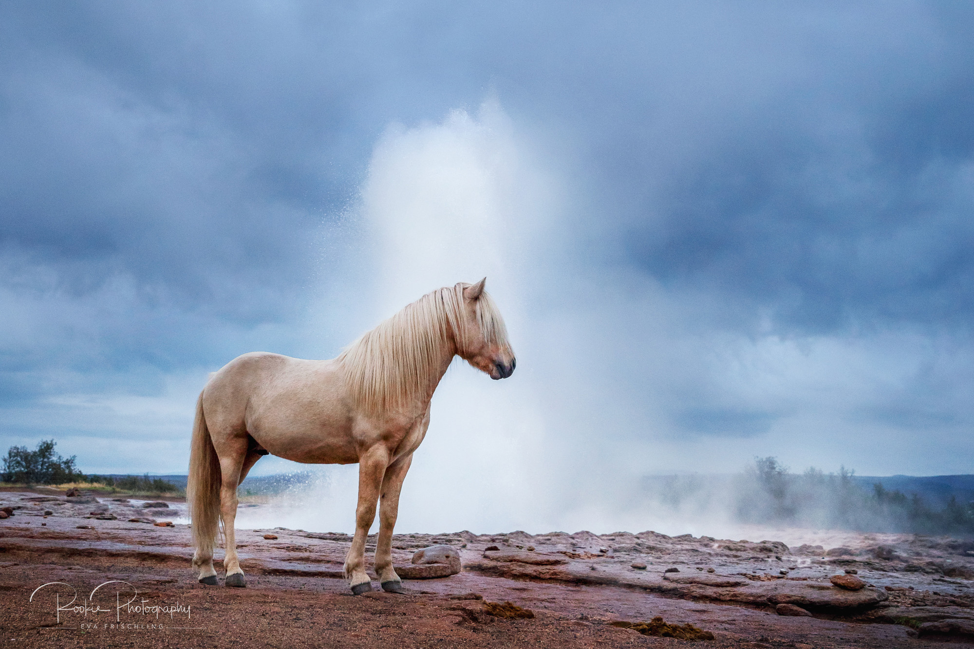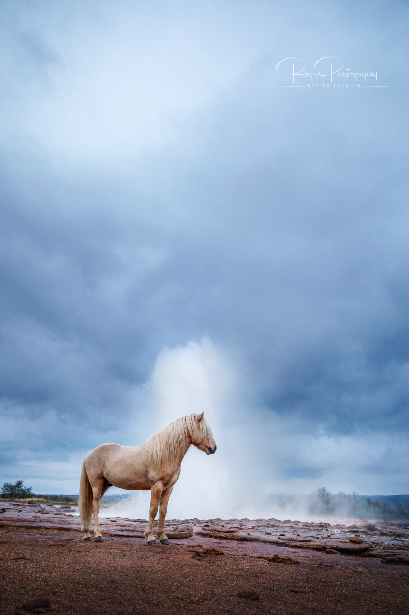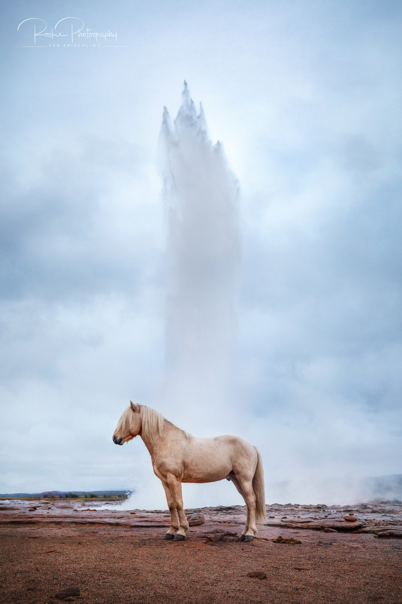 Die Idee schwirrte mir einige Zeit im Kopf rum. Ich fand es immer schon cool Pferde in besonderen Locations in Szene zu setzen. Dabei wollte ich aber nichts machen, das es schon gab. Pferde vor berühmten Wasserfällen wie den Skógafoss, am Strand bei Vík, am Diamond Beach am Gletschersee Jökulsarlón gibt es genügend. Aber ein Pferd vor dem Geysir: ich fand keine Bilder davon im Netz.