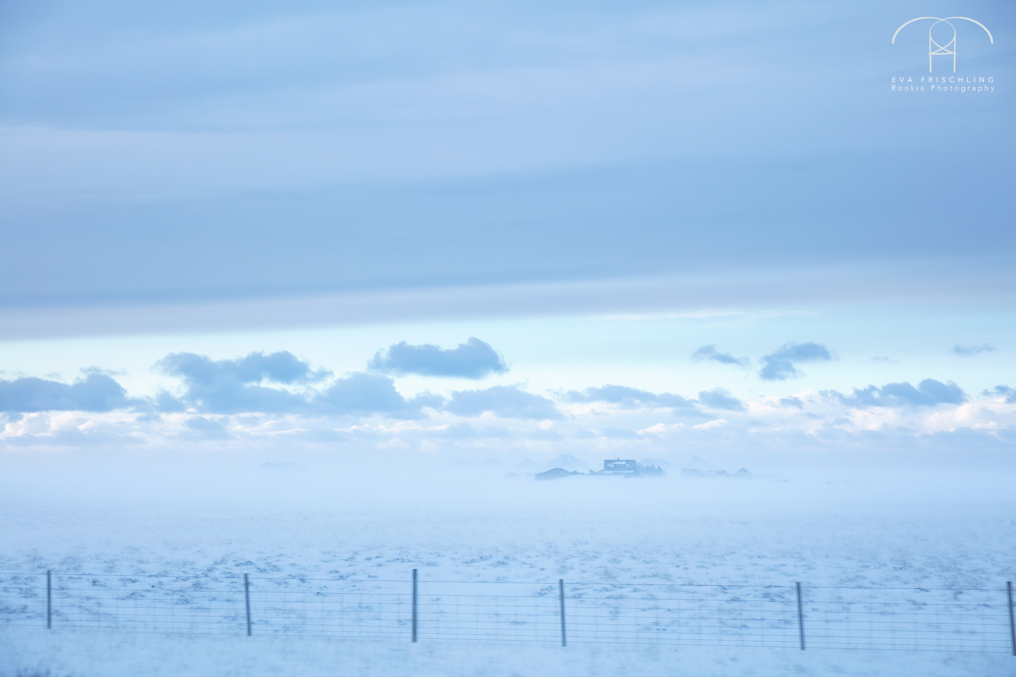 Wir kämpften uns den Weg bis zum Auto und mussten verdutzt feststellen, dass die Straße nicht geräumt war. Wir waren zwar im Ort Fluðir, aber dennoch etwa 15 Kilometer weit entfernt davon. Die ersten 7 Kilometer Straße von Fluðir aus gibt es einige Häuser, und die restlichen etwa 8 Kilometer kann man sich wie eine Art Zufahrtsstraße vorstellen, an dessen Ende wir nun standen. Ich bekam noch einen Anruf von einer befreundeten, in Island lebenden, Touristenführerin und wir besprachen die Lage. Sie sagte, dass wir schnell los fahren sollten, und wenn wir flott sind, dann müssten wir die halbe Strecke bis nach Vík schaffen, bis Höfn könnte aber spannend werden.