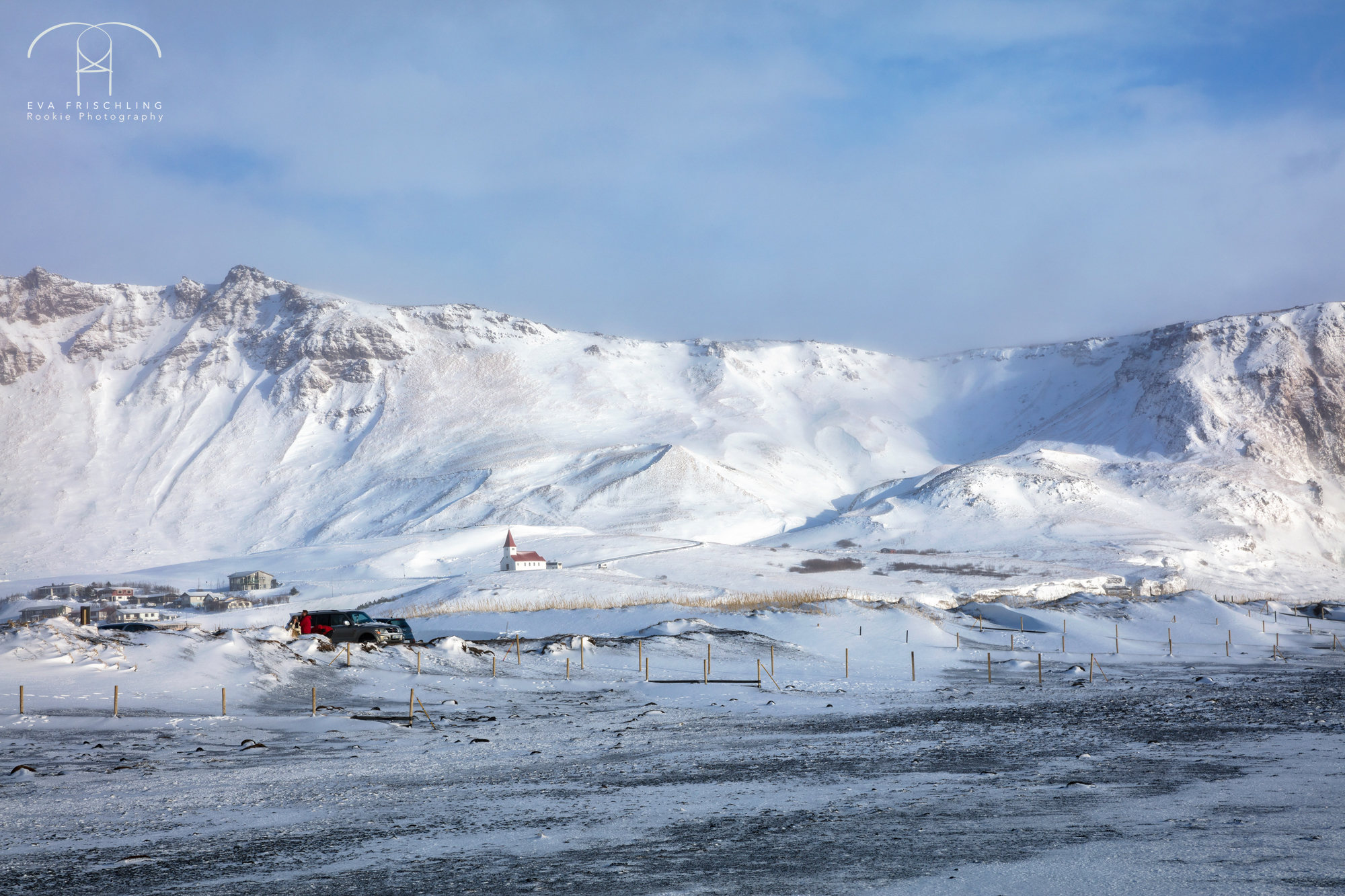 Der Weg bis nach Vík war etwas spannend zu fahren. Teilweise ging es ganz gut, teilweise war die Sicht aber auch durch Schneewehen sehr schlecht. Im Großen und Ganzen kamen wir aber gut voran.