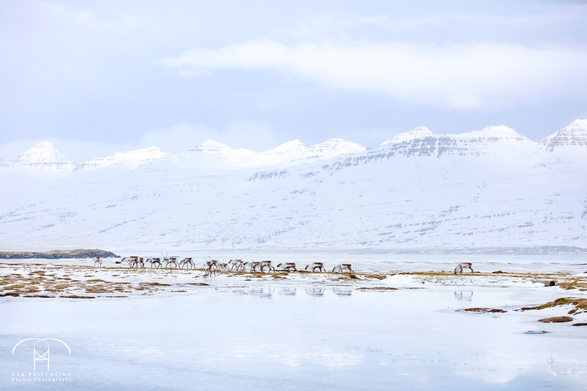 Der Osten ist dafür bekannt, dass hier die Rentiere Islands beheimatet sind. Im Sommer sind sie meist auf den Bergen, und im Winter wandern sie ins Tal. Es dauerte nicht lange, bis wir die erste kleine Rentier Herde sahen.