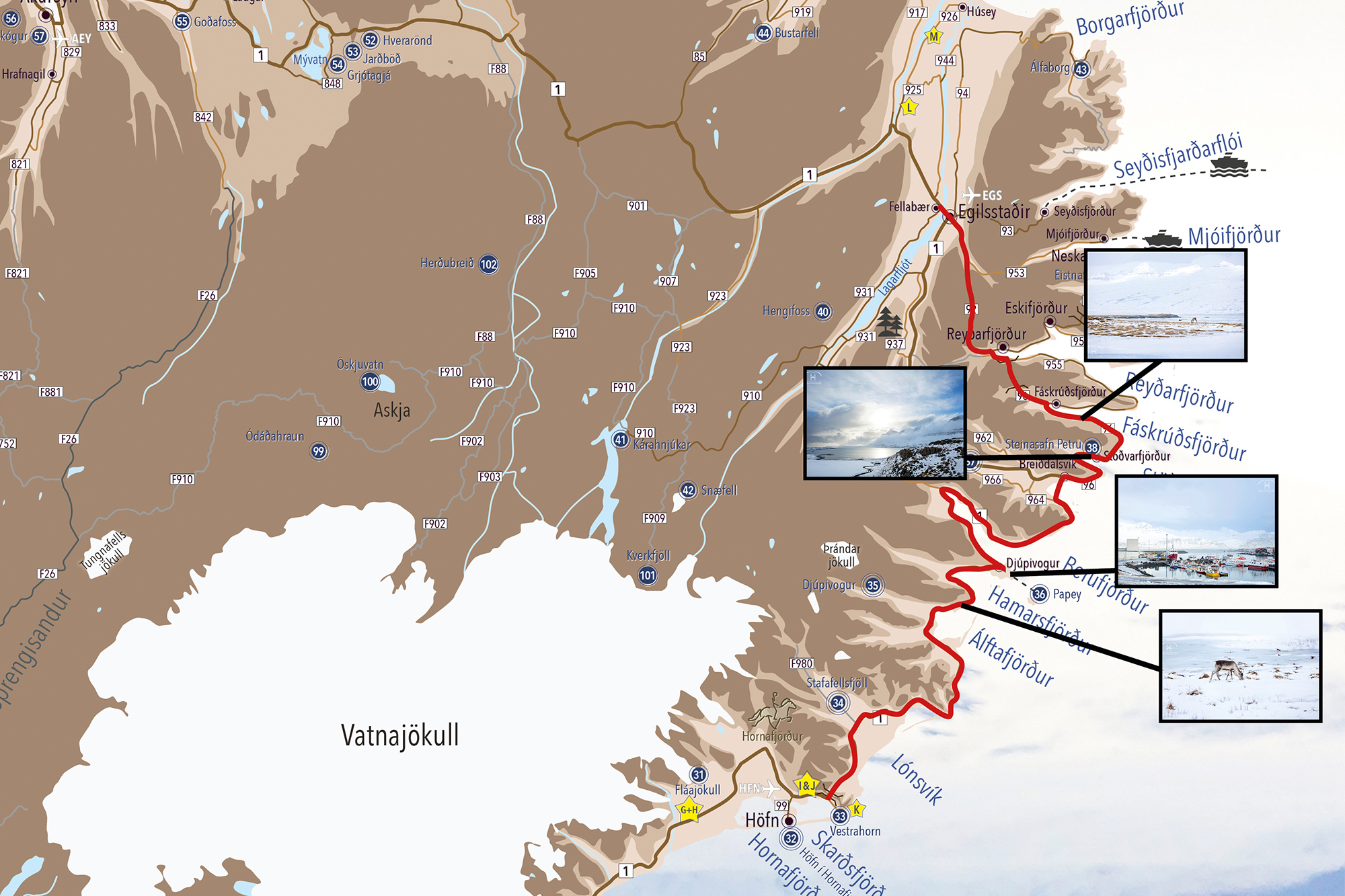 3. da man im Winter keine Abkürzung über den Pass Öxi machen kann, sondern die Fjorde ausfahren muss, kamen wir auch direkt in Egilsstaðir an und nicht wie über den Pass, etwas südlich davon. Dadurch muss man zum Hengifoss relativ weit wieder in Richtung Süden fahren, und darauf hatten wir keine große Lust.