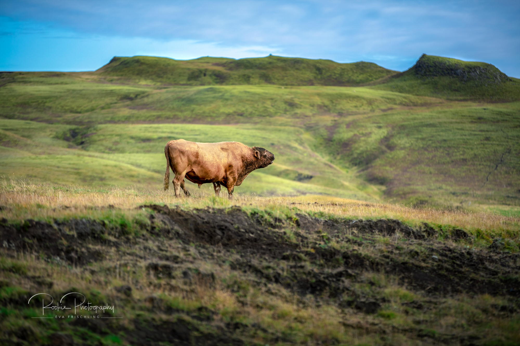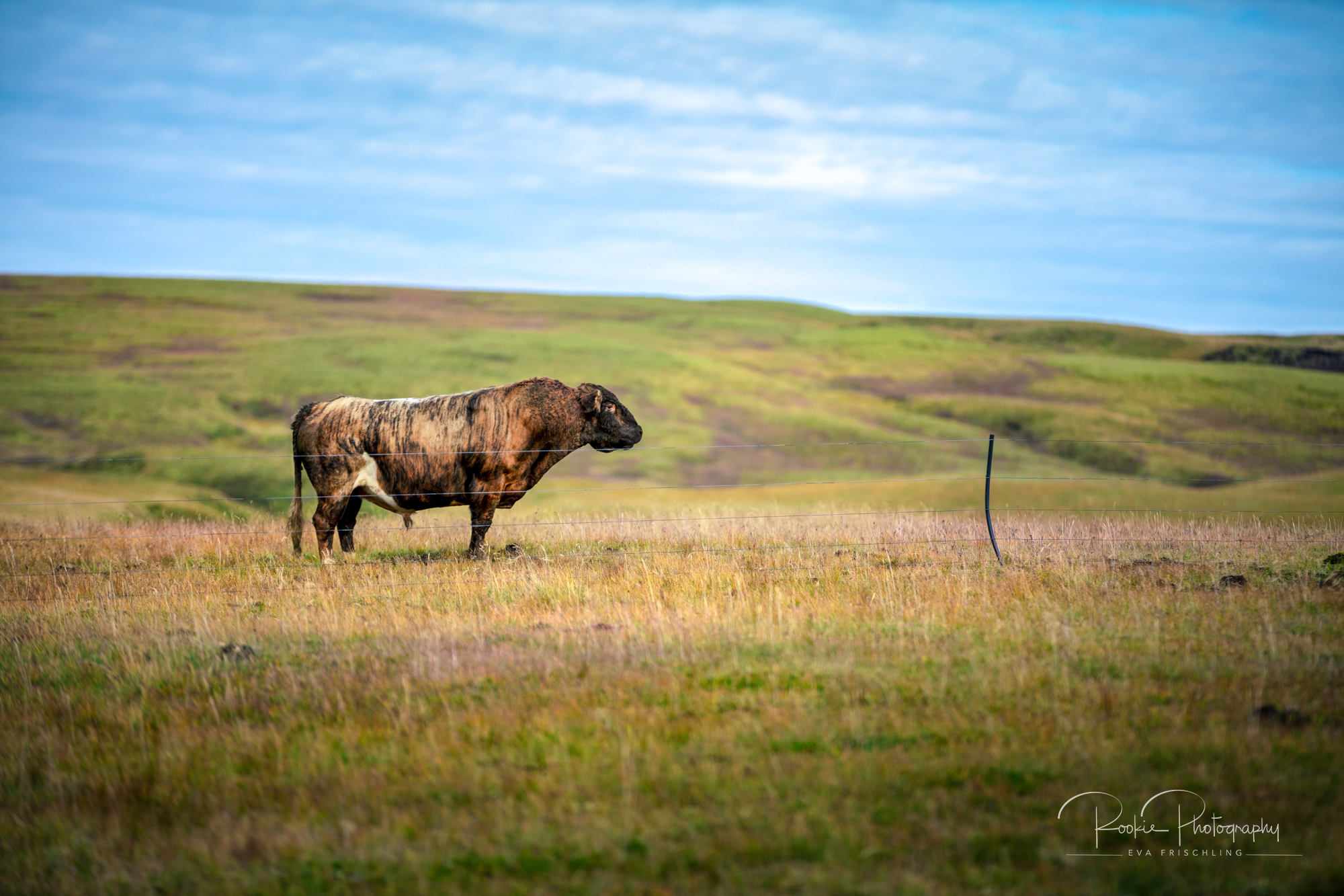 Als nächstes passierten wir dann zwei Island-Bullen. Einer hinter dem Zaun, der andere davor. Da hatte ich auch mega Respekt, aber Sandra versicherte mir, dass ich es überleben würde. 😉