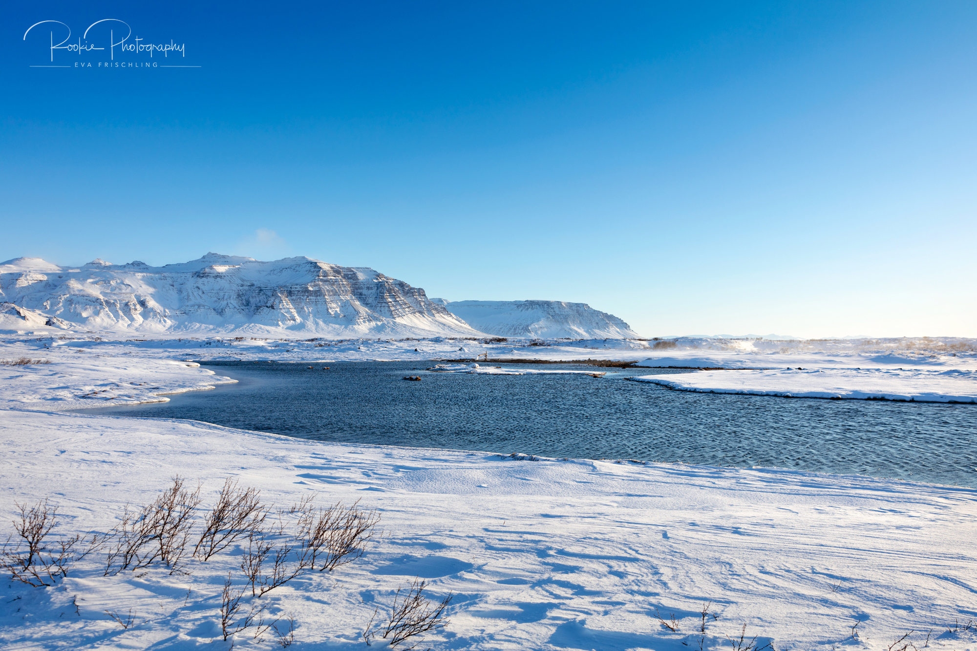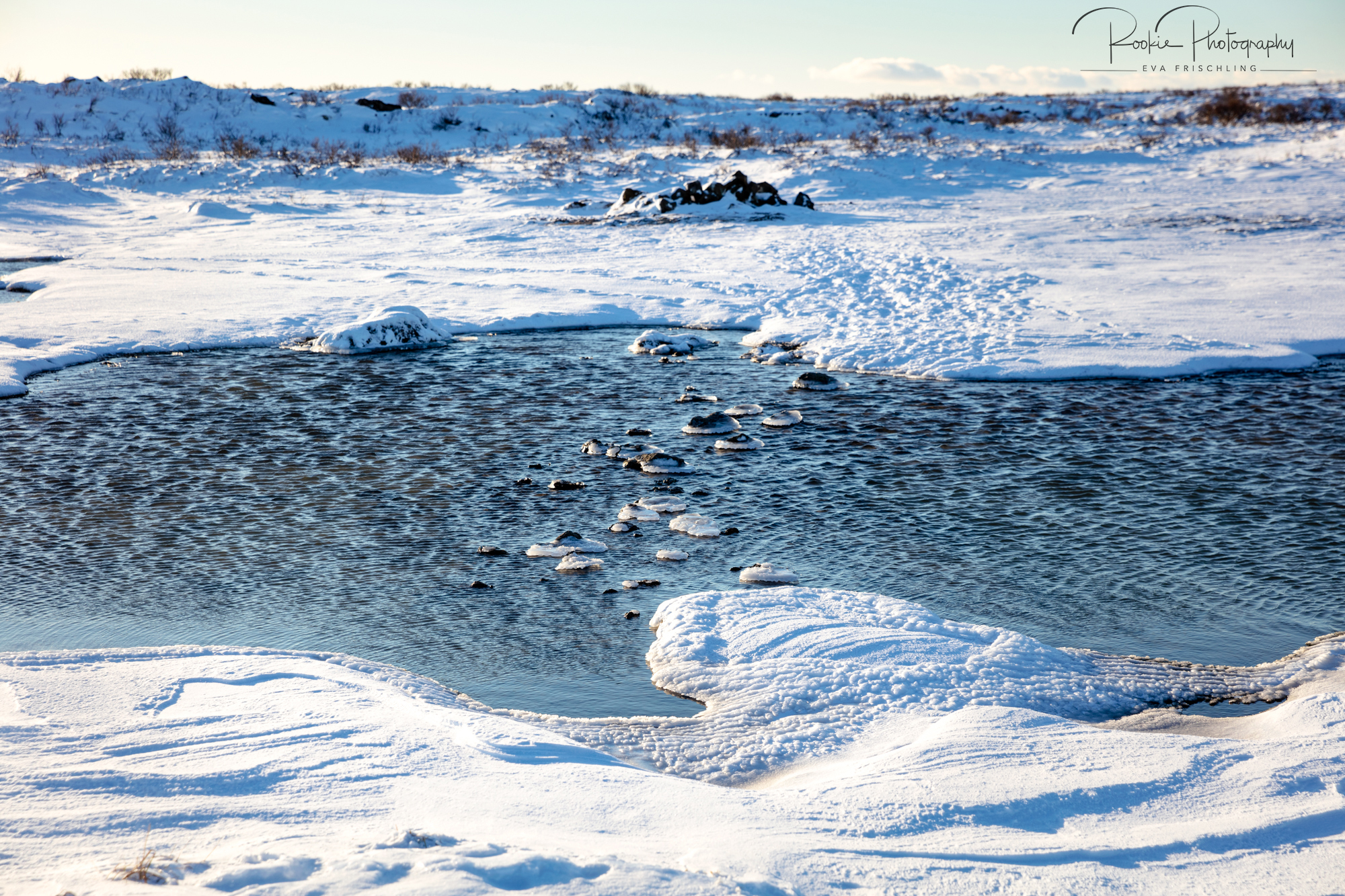 Einziges Problem: die waren eisig, das Wasser eiskalt, und ich hatte ehrlich gesagt wenig Lust darauf, mit meinen Schuhen in das Wasser zu fallen. Also wurden die Schuhe ausgezogen, von einem Stein zum nächsten gehüpft, über den Schnee gesprintet und die nahezu erfrorenen Füße in die warme Quelle gehalten.