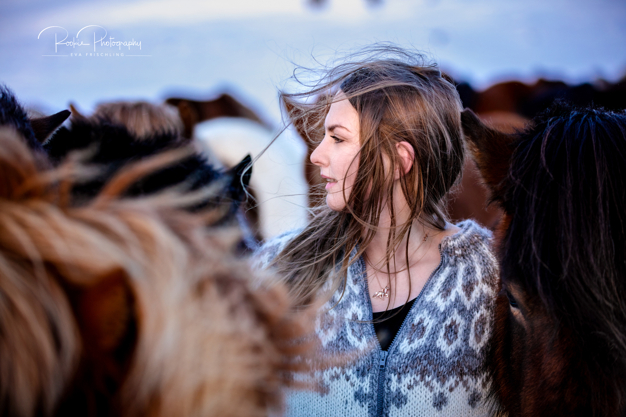 Bei dem Shooting in Island ging ich mit Elisabeth in die große Pferdeherde. Es war eisig kalt, windig, aber Elisabeth zog es einfach durch. Vielen Dank für dein Durchhaltevermögen!