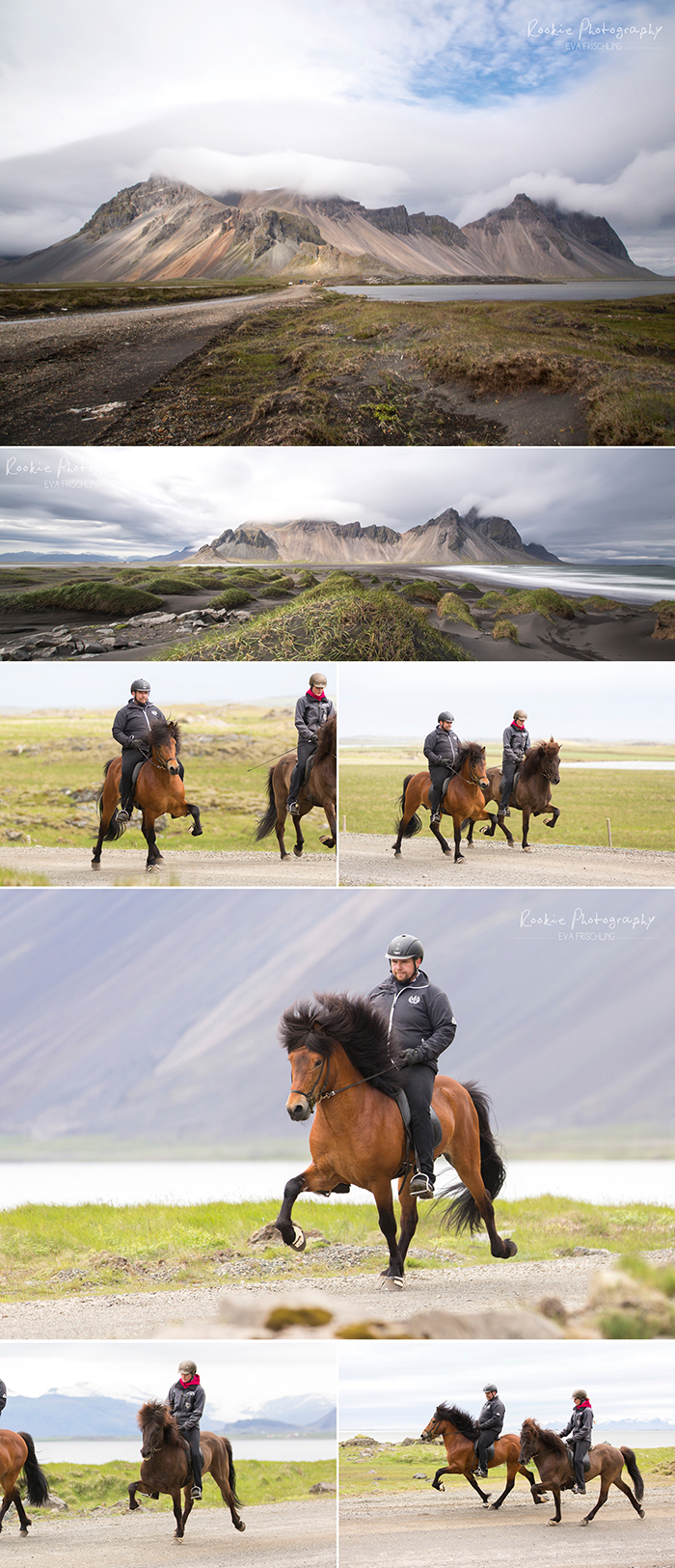 Danach bin ich noch mit dem Auto Richtung Stokksnes gefahren um die Berge von Horn zu fotografieren. War ein bisschen windig aber dafür mal kein Regen. 😉 und dann sind noch Jasmina mit Steinþór und Ómar mit Dalvar (auch beide Verkaufspferde) vorbeigeritten.