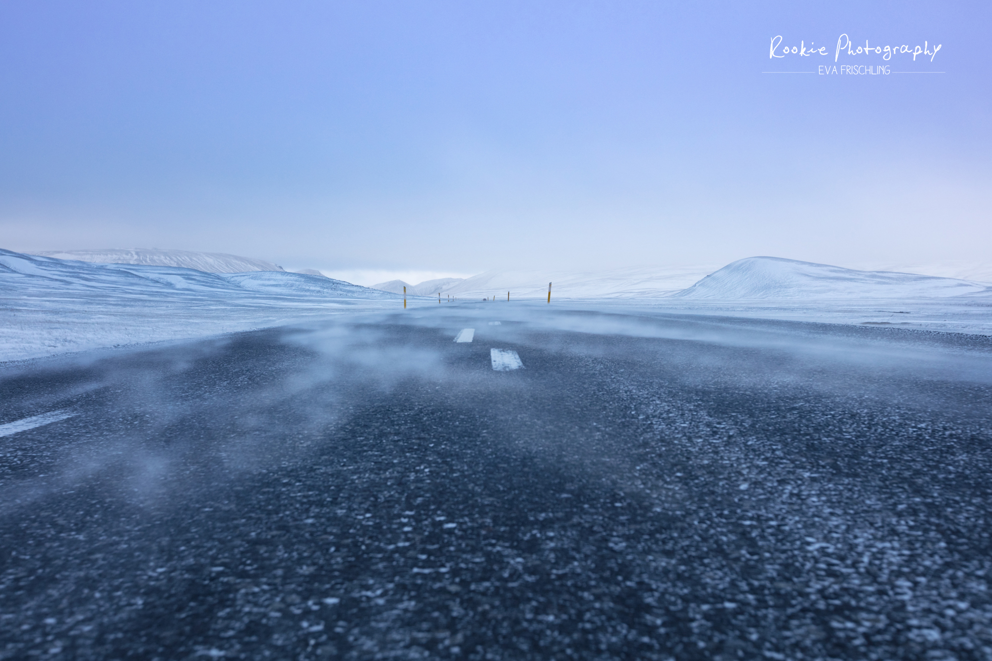 Als erstes fuhren wir über eine höher gelegenere Straße im Nirgendwo. Durch den ganzen Wind war diese verdammt eisig und der Wind pfiff nur so über die Straße. Zum Glück hatte unsere gute alte Karre Spikes auf den Reifen drauf.