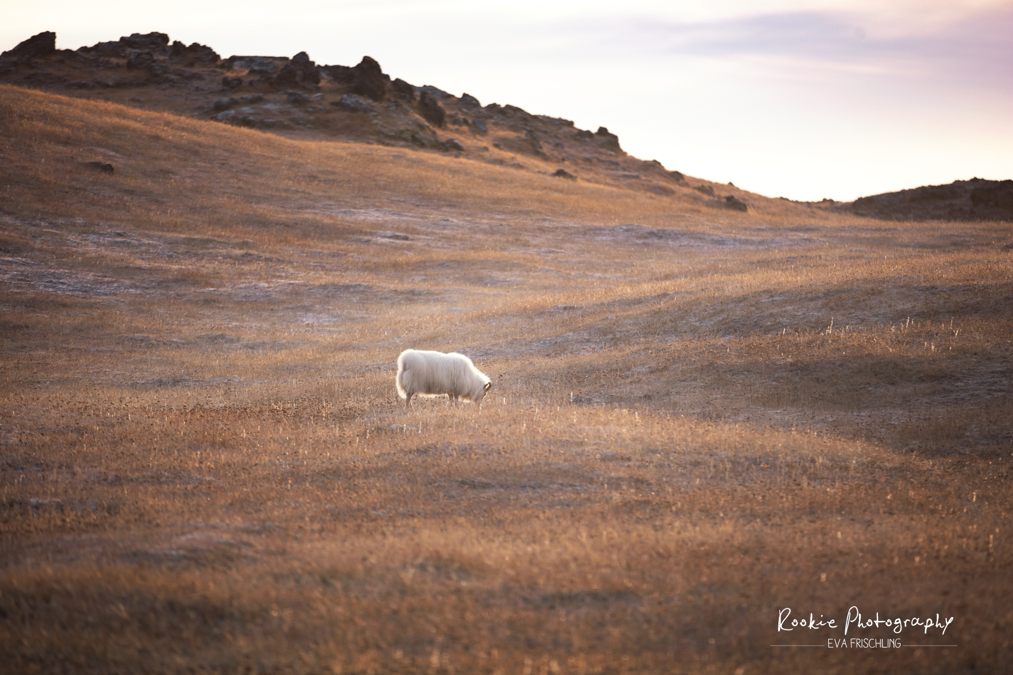 Wir nahmen die südliche Strecke um den Mývatn und kamen vor Sonnenuntergang an einer kleinen niedlichen Schafherde vorbei. Da das Licht gerade so schön war, musste ich kurz anhalten und diese superflauschigen Tierchen fotografieren: