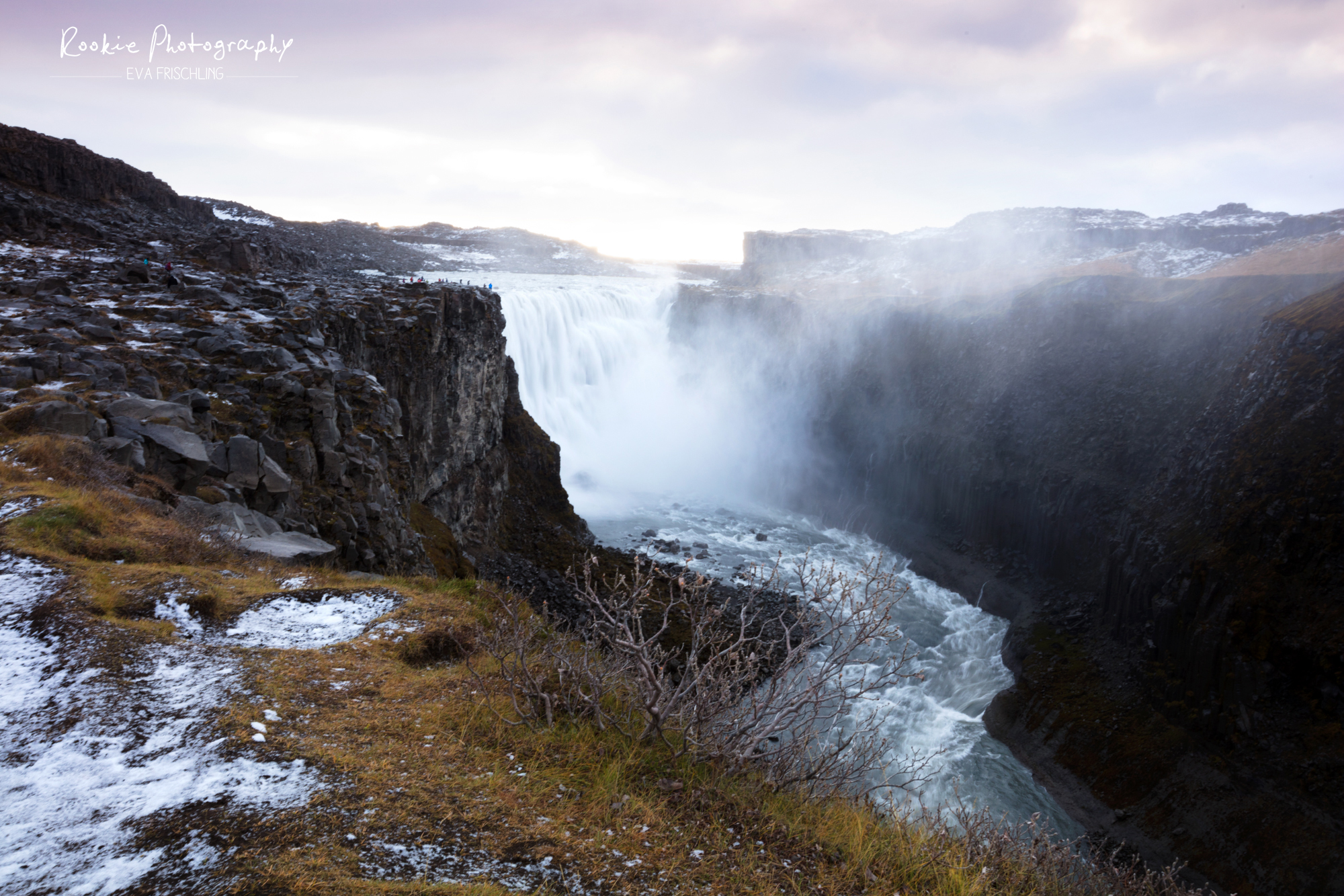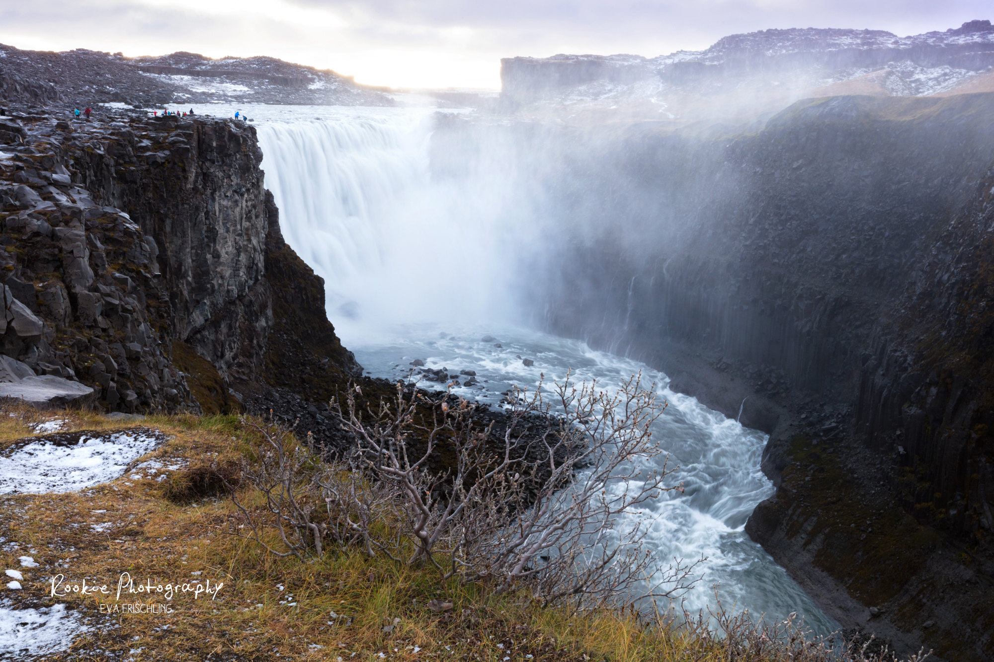 Für alle die mal im Norden sind: der Umweg zum Dettifoss zahlt sich aus! Er ist so groß! Schaut euch die Menschen links oben auf dem Felsen oben an, wie mickrig diese aussehen.