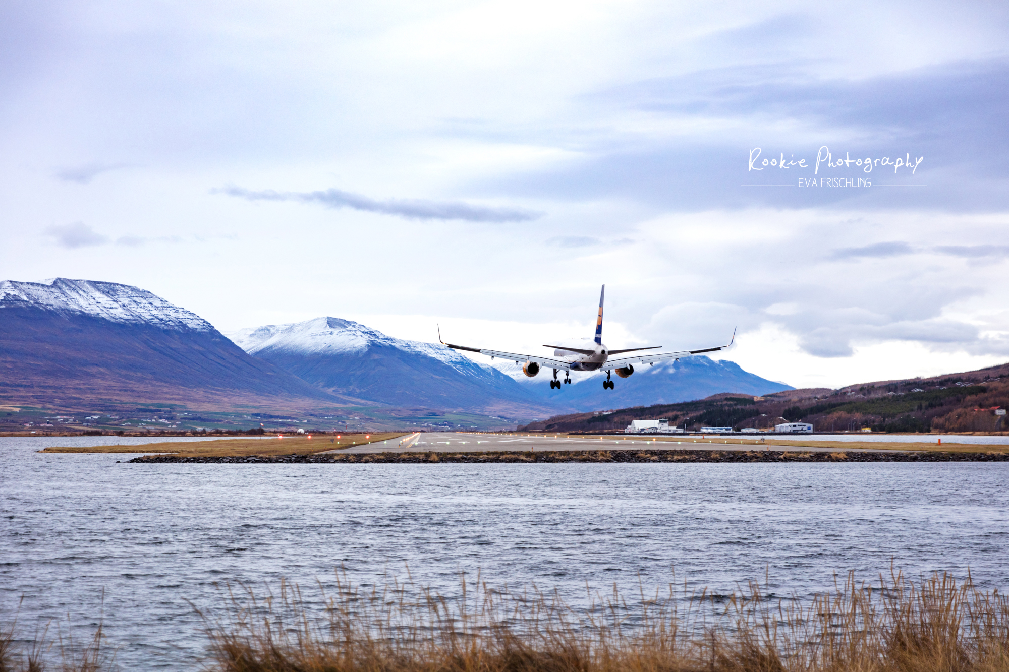Nach dem Góðafoss fuhren wir weiter nach Akurgerði. Schon von weitem beobachteten wir einen Linienflieger, welcher immer wieder auf der Flugbahn landete, um danach wieder abzuheben, einen großen Bogen zu machen um danach wieder zu landen. Wir fragten uns, was das soll, ob hier wohl jemand eine Flugstunde hätte, erfuhren jedoch danach, dass der Flughafen von Akurgerði getestet wird, ob er auch für große Flugzeuge tauglich ist.