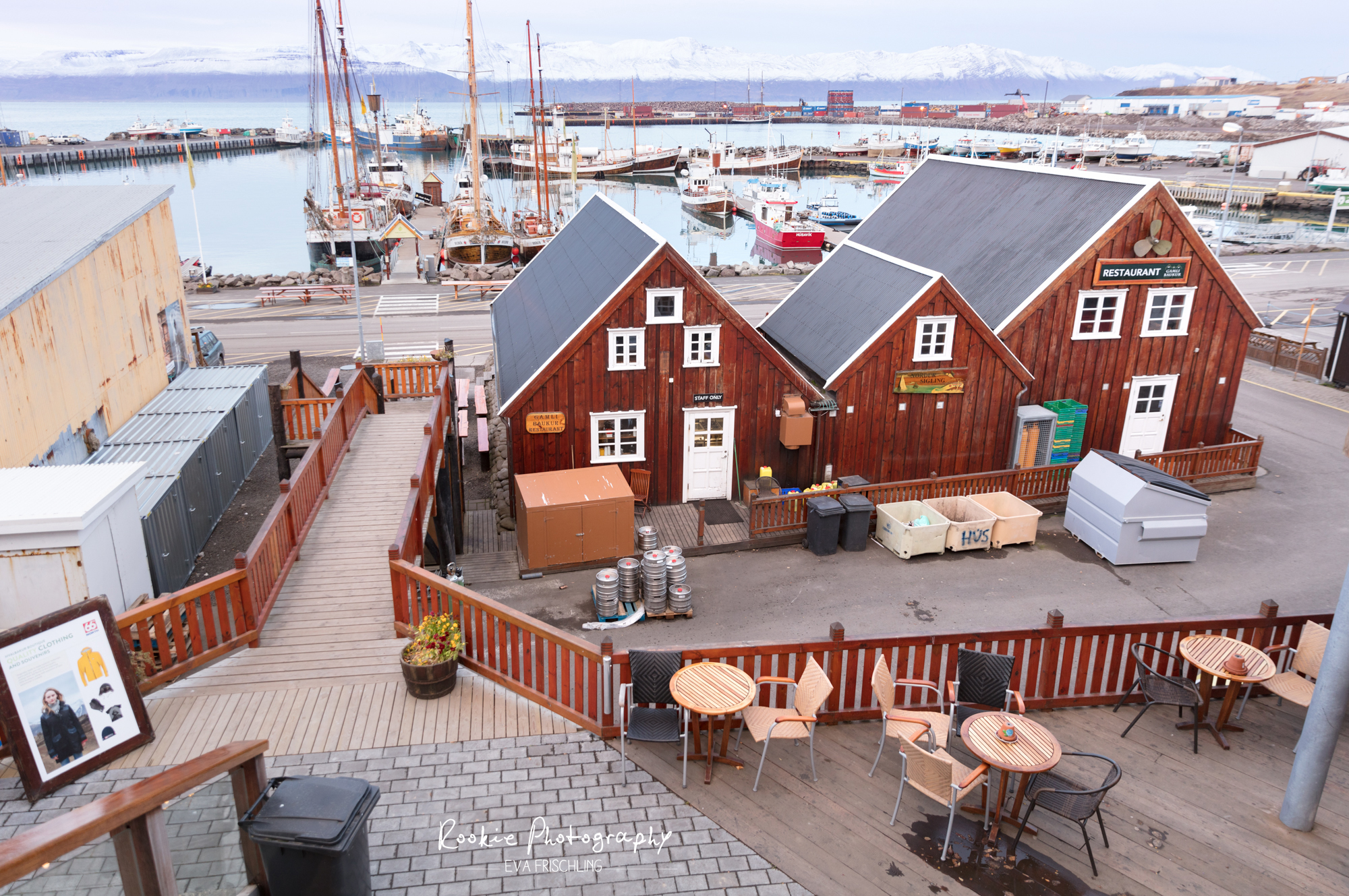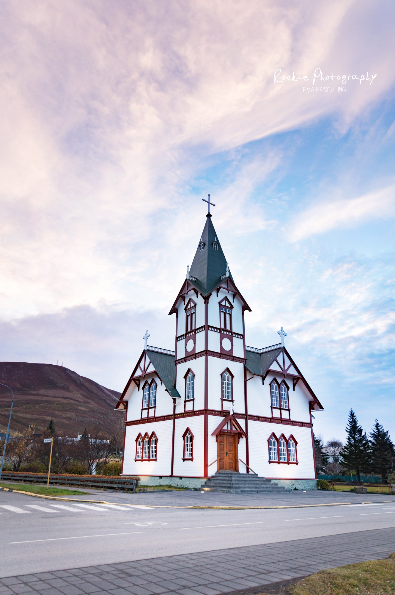 Hier noch 2 Bilder von Húsavík. Das Erste ist ein Lokal direkt am Hafen, das Zweite die Kirche.