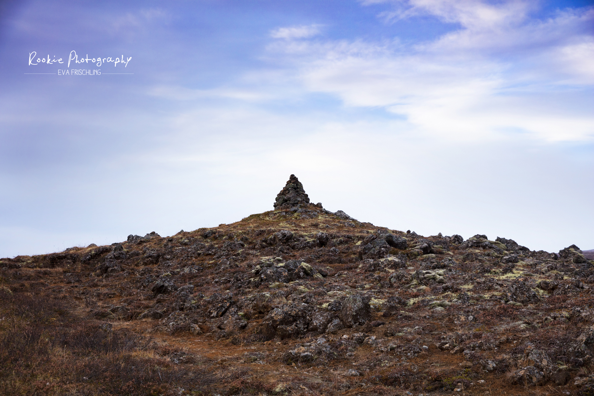 Auf dem Weg zum Góðafoss kam mir für Island ein typischer Steinhaufen unter. Diese aufgestapelten Steine sind von jeher noch die Wegweiser. Entlang von vielen alten Wegen stehen diese Gebilde. Früher gab es keine Straßen, nur unglaublich weitläufiges Land. Damit man sich nicht verlief, wurden diese Wegweiser aufgebaut. Leider wissen viele Touristen nicht, was das für Steinhaufen sind, hauen sie um und bauen manchmal auch neue auf. Zum Entsetzen der Isländer. Also liebe Leser, wenn ihr solche Steine seht, begutachtet sie, aber verändert sie bitte nicht.