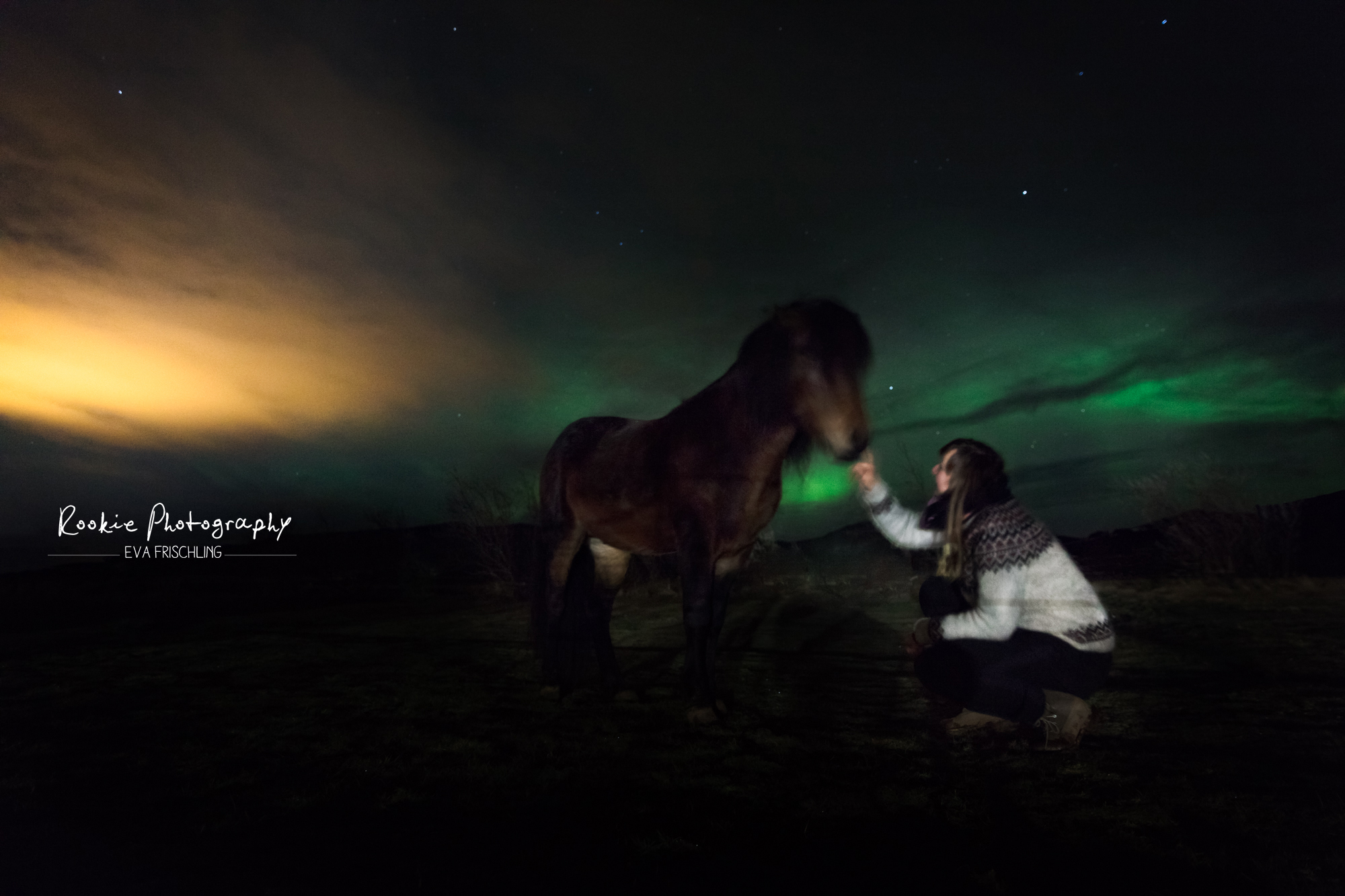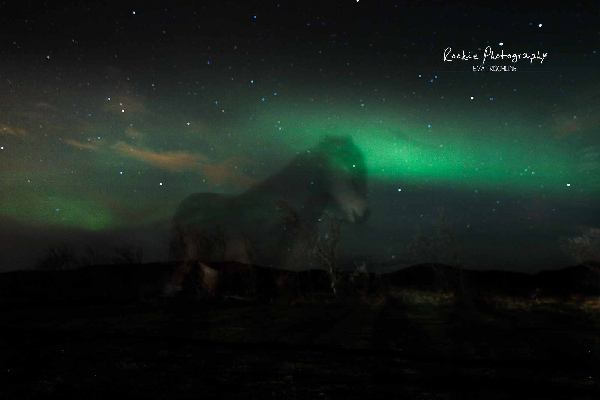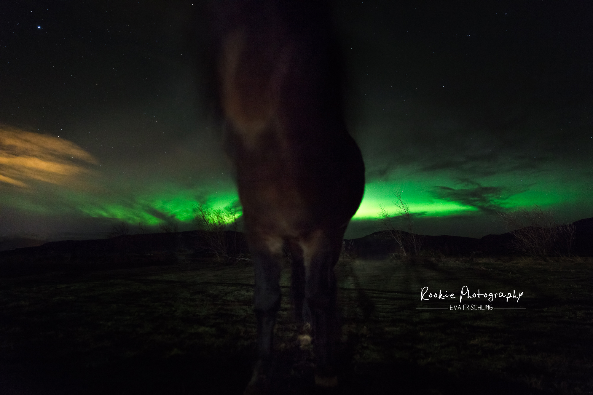 Nachdem ich Domenique bescheid gegeben hatte das sie auch raus kommt um dieses Spektakel zu sehen (Domenique hat mich auf meiner Reise begleitet) und ich Sabine angerufen habe damit sie mir ein Pferd auf eine Koppel raus stellt kam dann der schwierige Teil: den absolut braven Hengst Jökull so hin zu stellen damit er auf dem Bild gut aussieht.