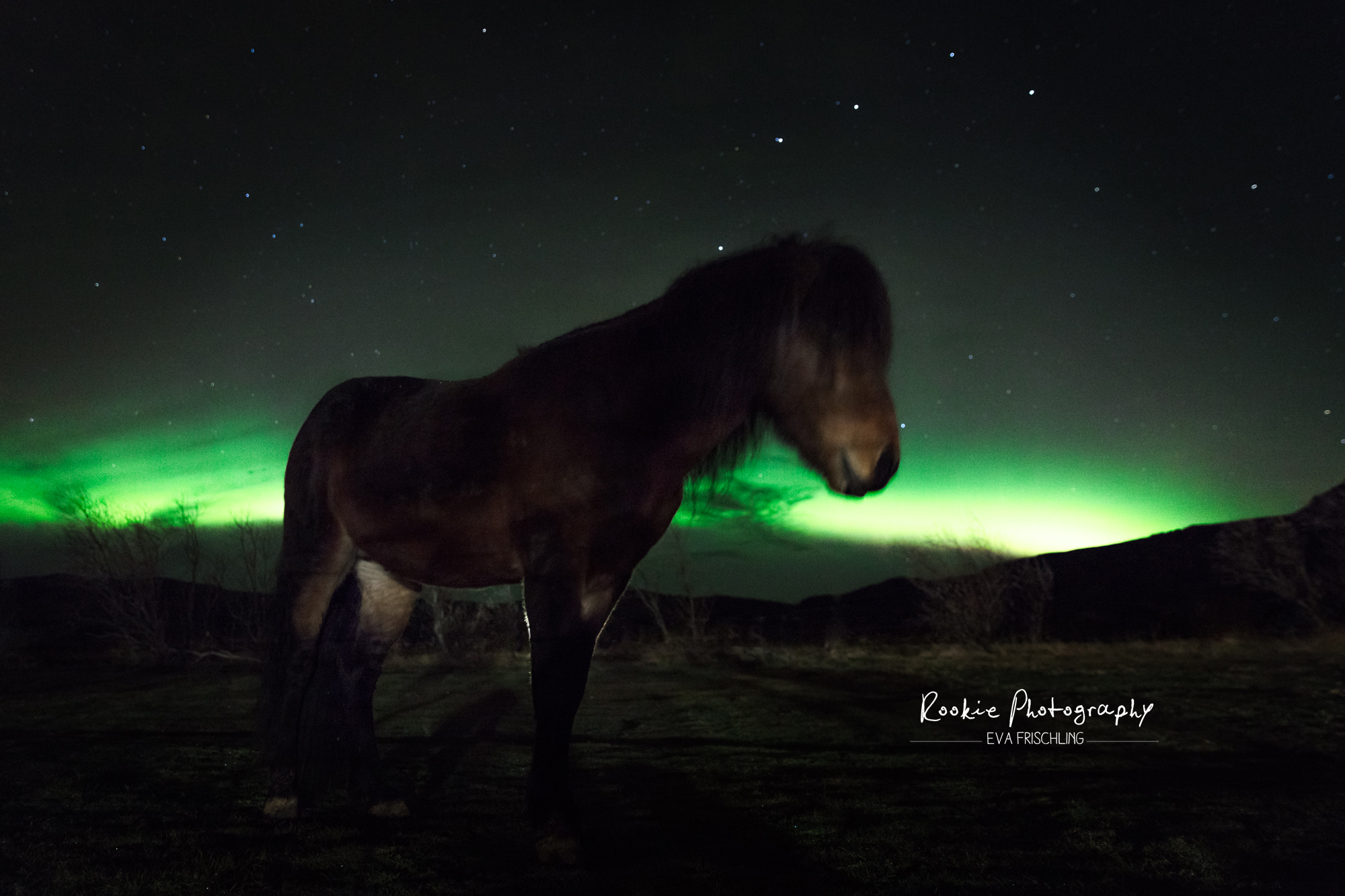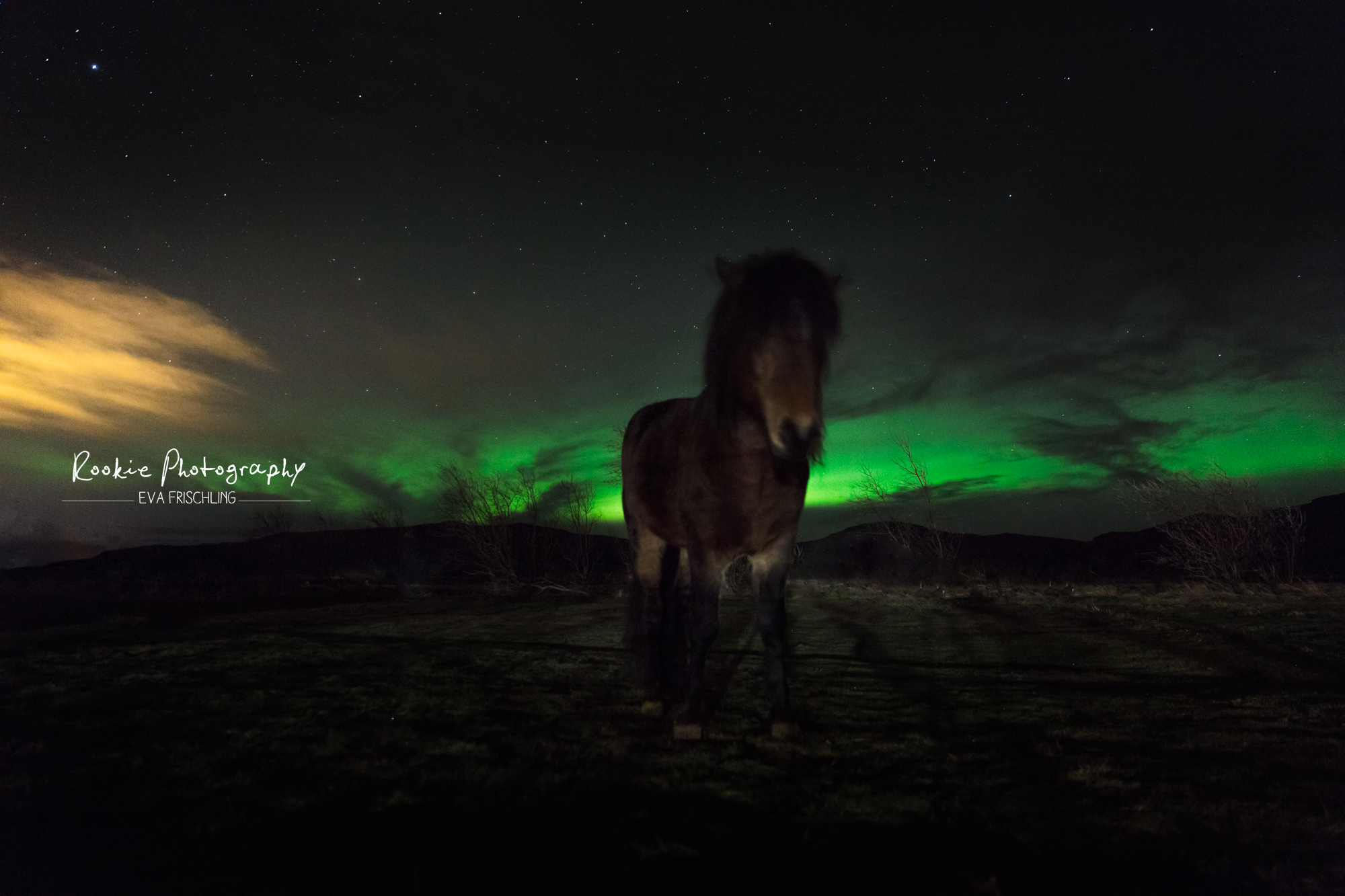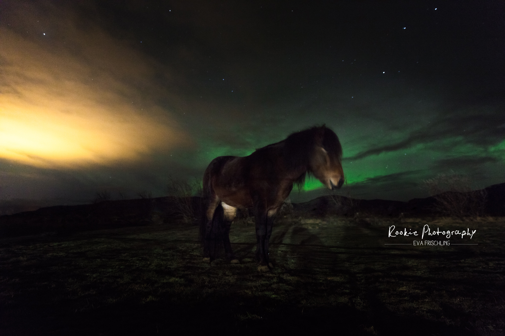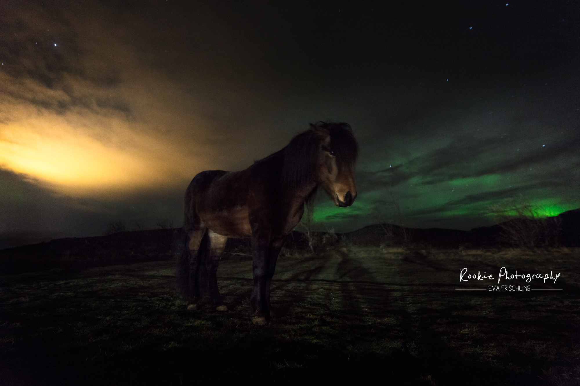 Nachdem ich Domenique bescheid gegeben hatte das sie auch raus kommt um dieses Spektakel zu sehen (Domenique hat mich auf meiner Reise begleitet) und ich Sabine angerufen habe damit sie mir ein Pferd auf eine Koppel raus stellt kam dann der schwierige Teil: den absolut braven Hengst Jökull so hin zu stellen damit er auf dem Bild gut aussieht.