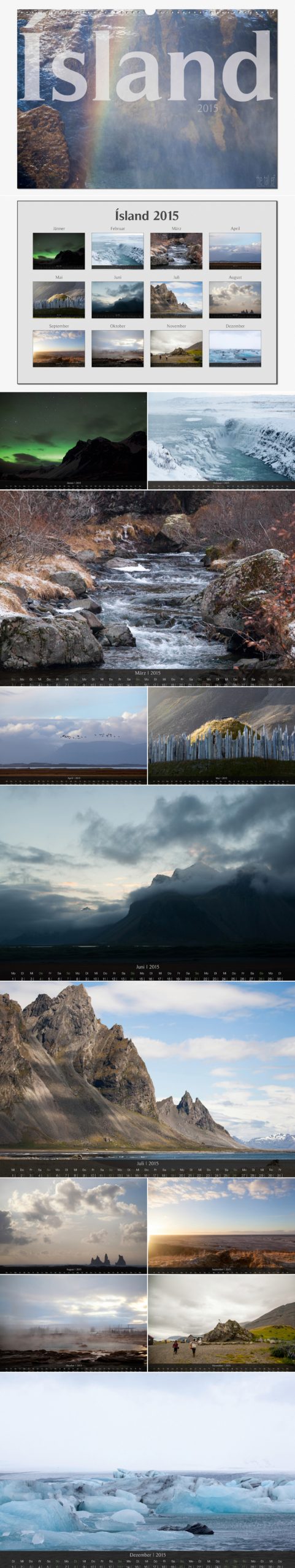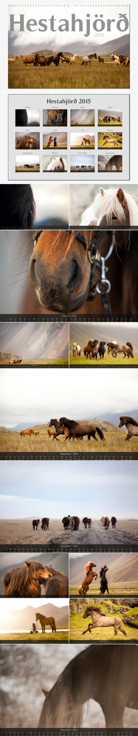 Für 2015 wird es das Erste mal zwei verschiedene Kalender geben. Einen unter den Namen Hestahjörð für die Islandpferde-Fans, und einen unter dem Namen Ísland für alle Natur-Freaks.
