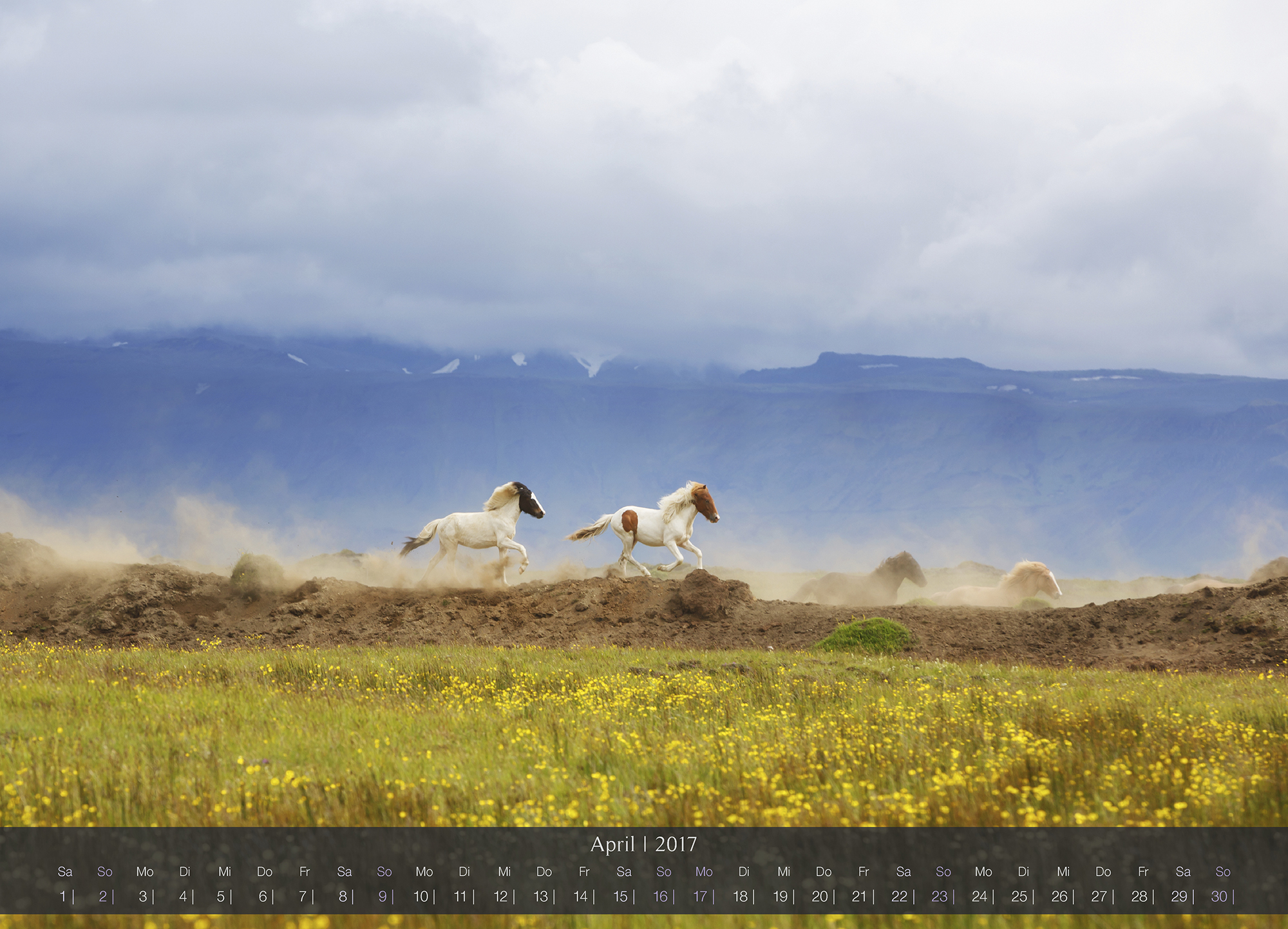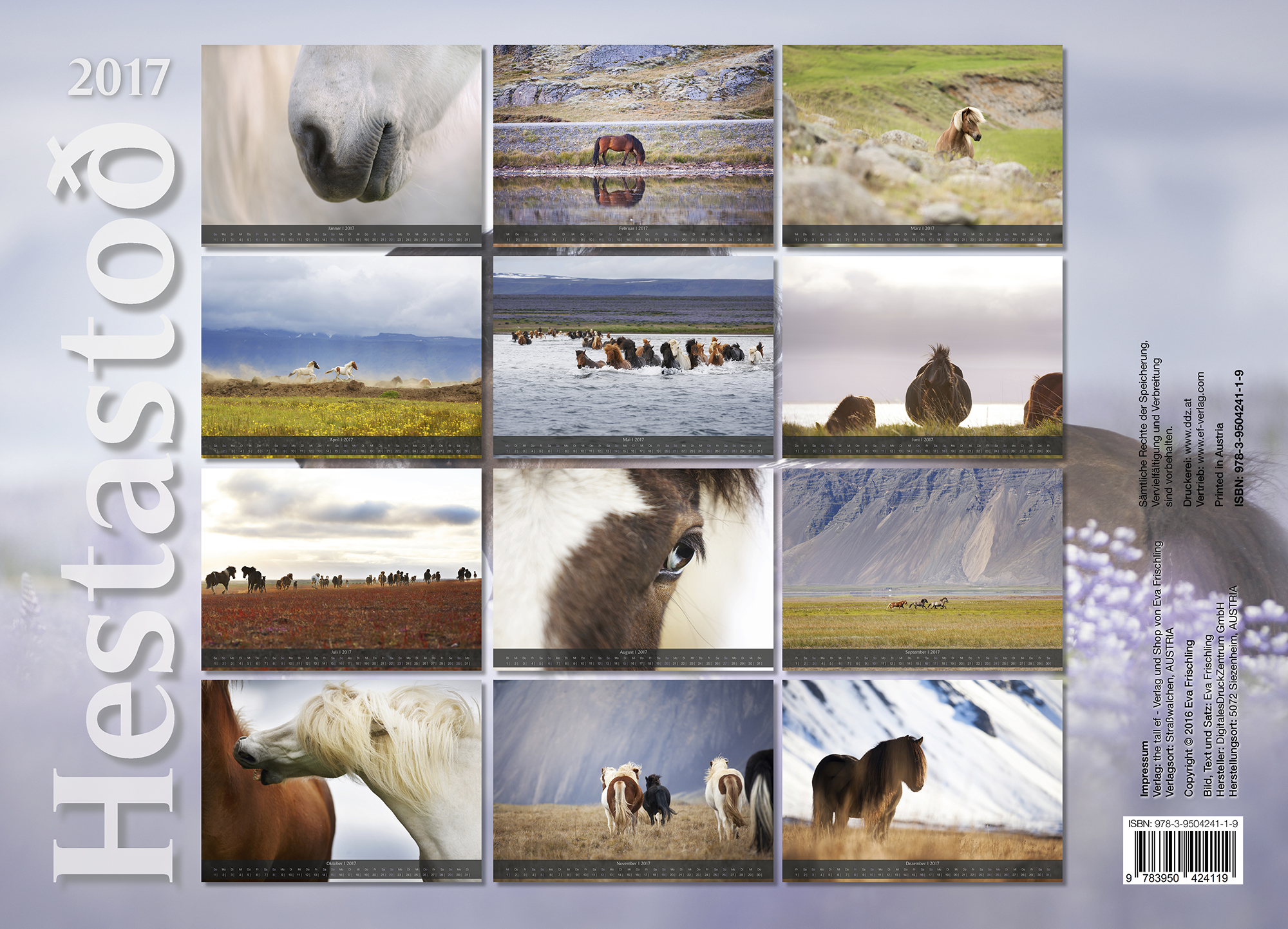 Der Hestastoð Kalender ist ein Monatskalender mit Islandpferdemotiven frisch aus Island für das Jahr 2017.