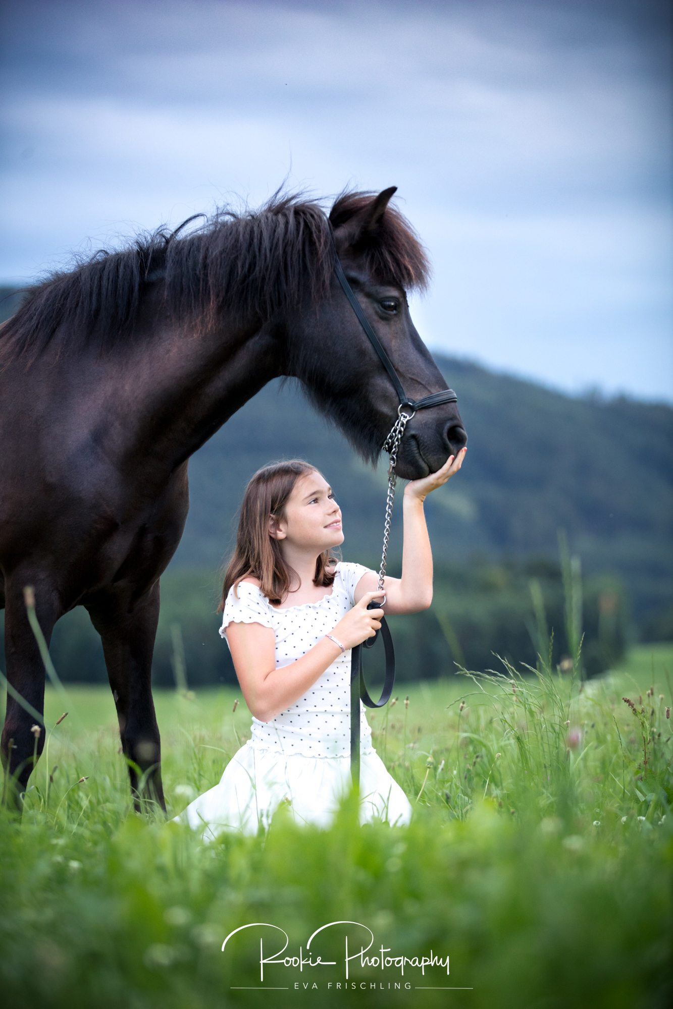 Wer mir von euch auf Facebook folgt, der hat ein wunderschönes Bild von Lorraine mit ihrer zuckersüßen Snerpa schon zu sehen bekommen. Die beiden und Lorraines Mutter Valerie standen vor kurzem vor meiner Kamera am Islandpferde Reithof Burghauser.